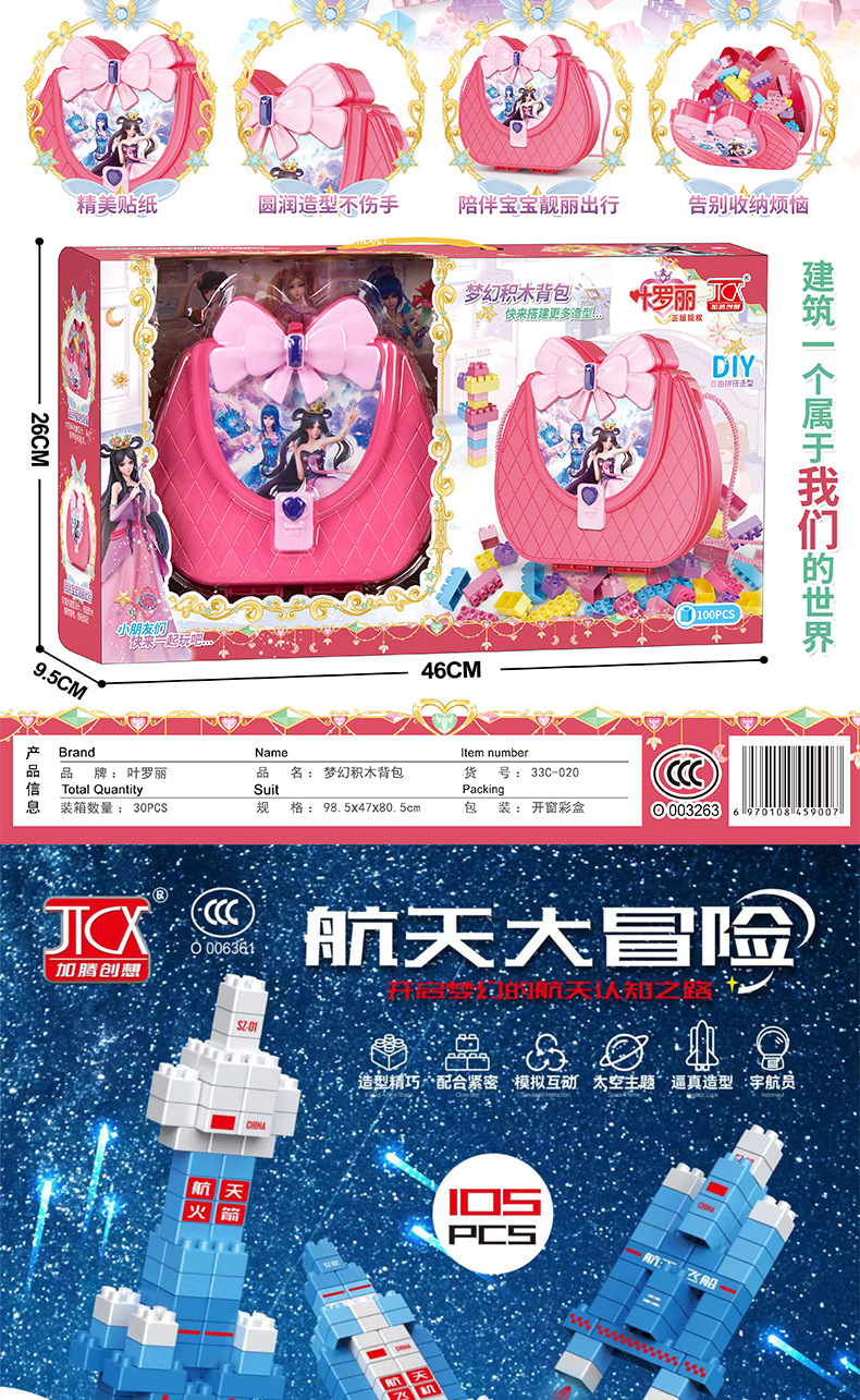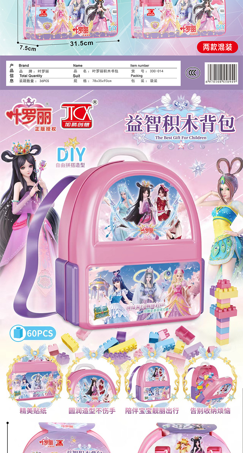 • 33C-014 가방 공인 빌딩 블록 책가방 (2 혼합)