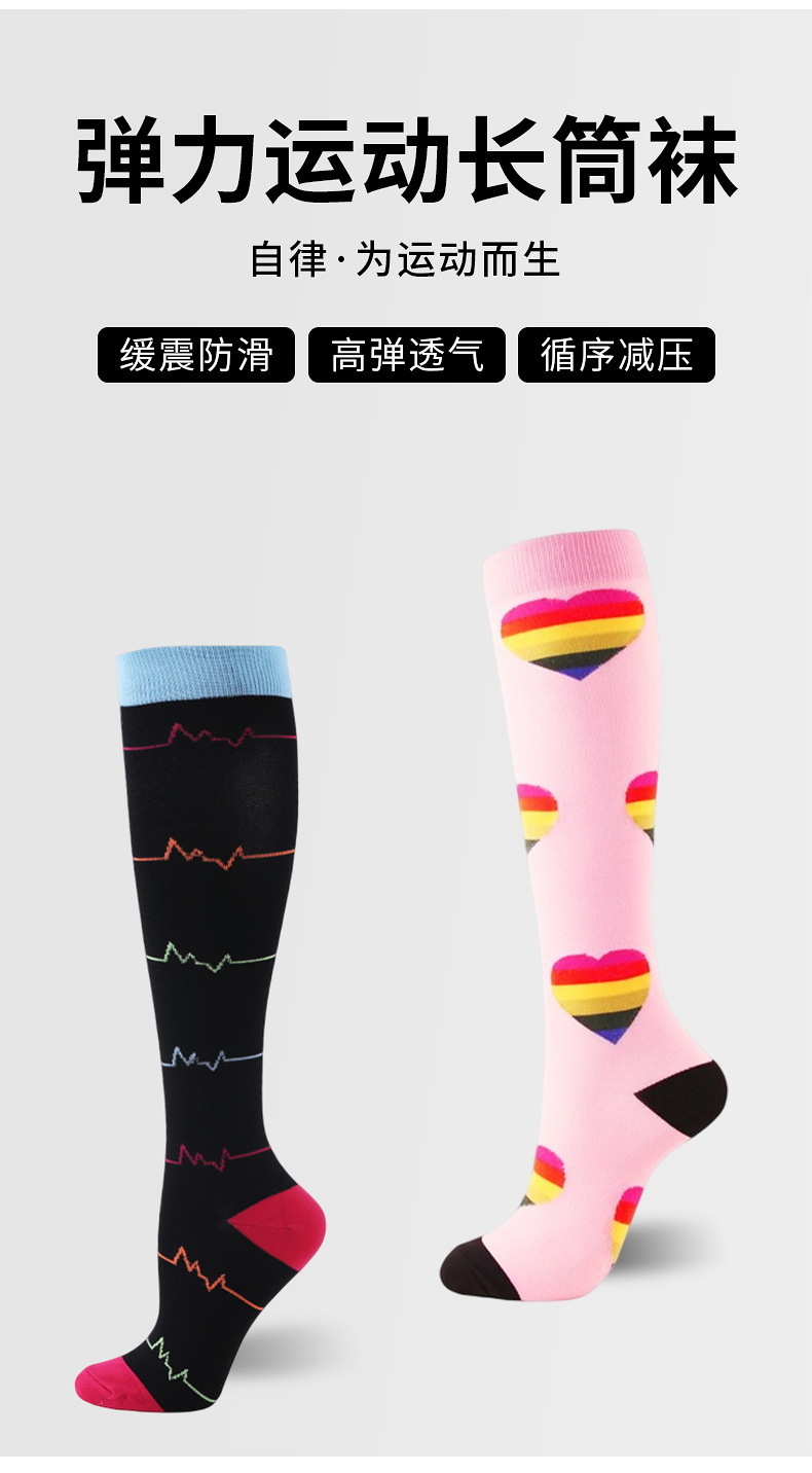 재고 유럽과 미국 스포츠 탄성 압축 양말 긴 튜브 송아지 양말 압축 양말 점프 로프 탄성 승마 양말 도매