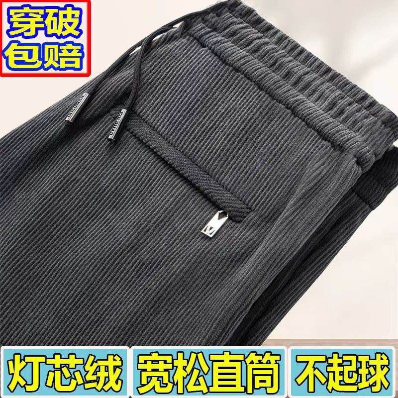가을, 겨울 코듀로이 스트레이트 루즈 캐주얼 바지 남성용 대형 다목적 겉옷 플러스 벨벳 스웨트 팬츠스토어 가기