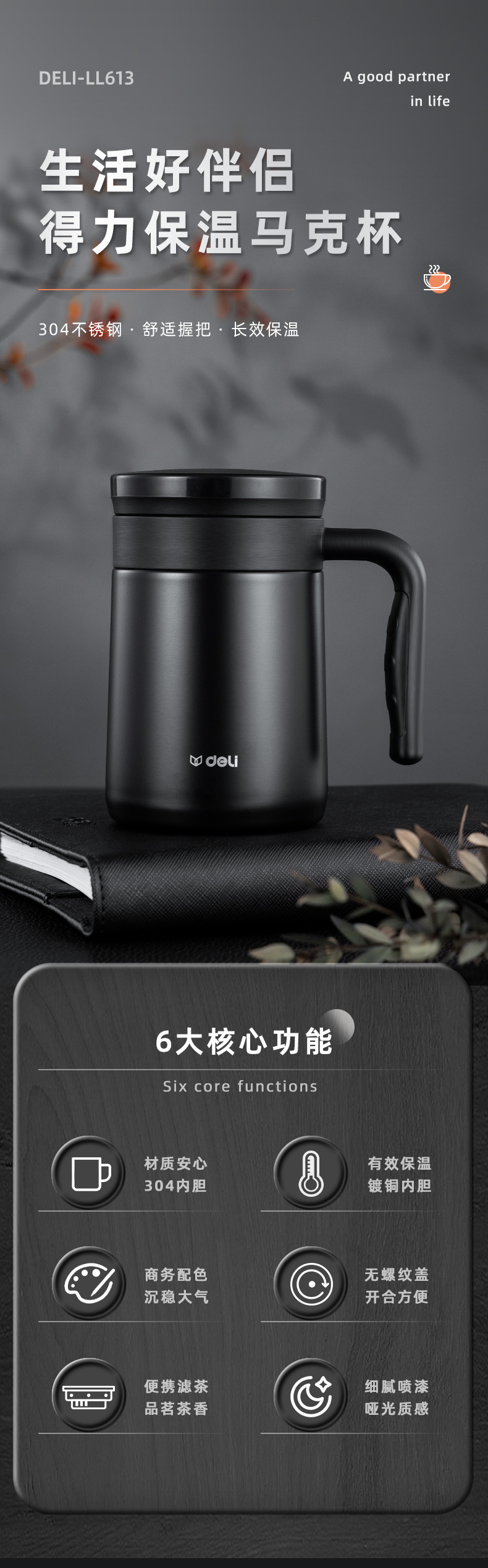 델리 LL613 핸들 304 라이너 매트 텍스처 비즈니스 찻잔 커피 컵 도매