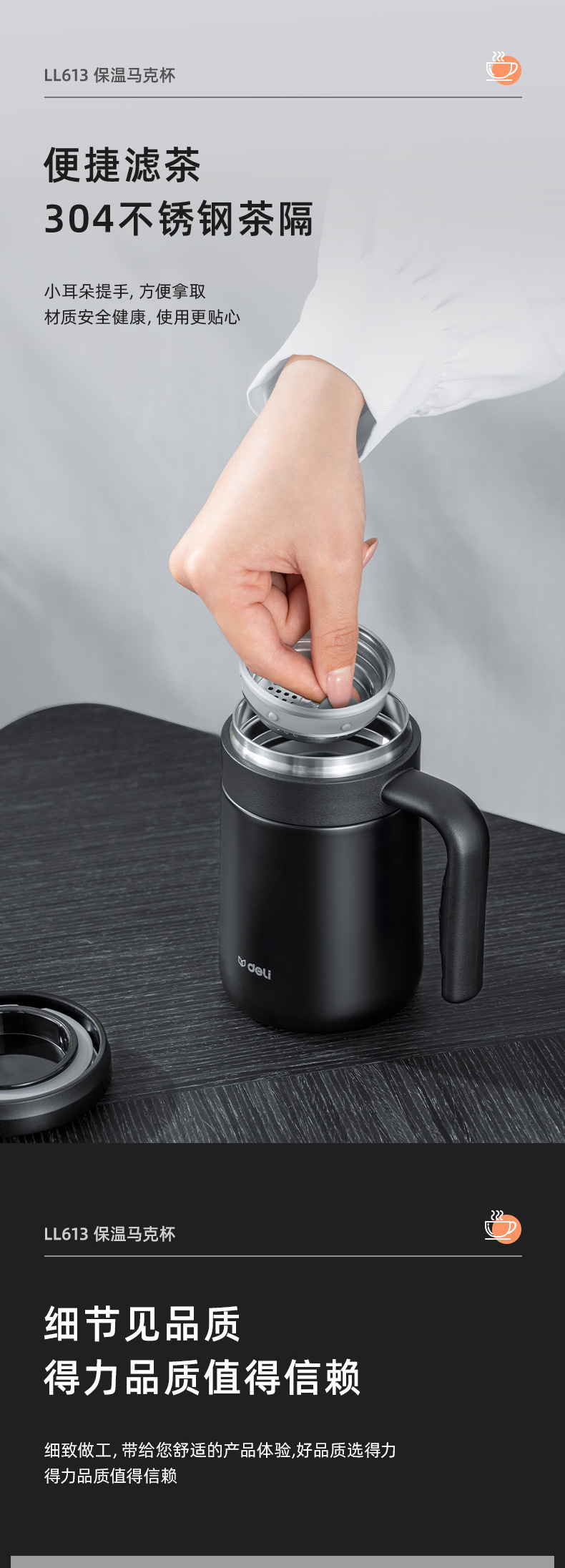 델리 LL613 핸들 304 라이너 매트 텍스처 비즈니스 찻잔 커피 컵 도매스토어 가기