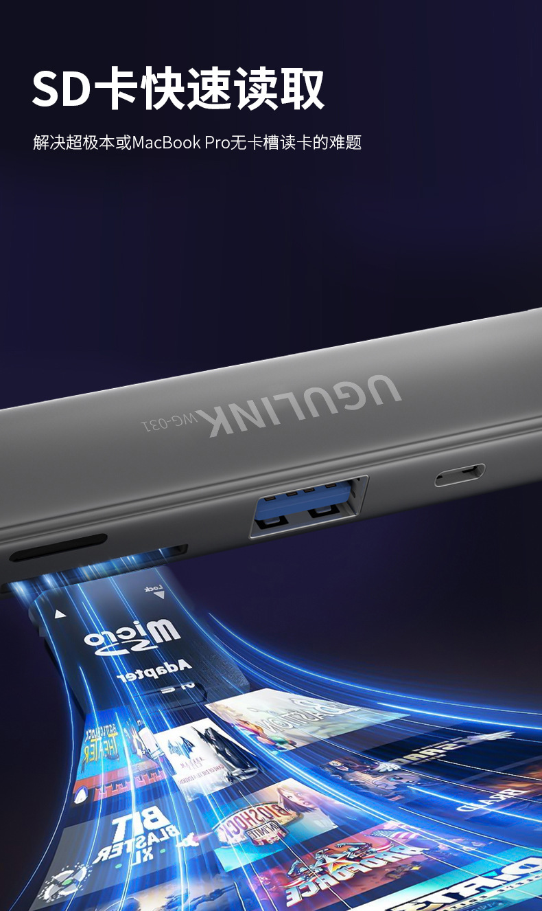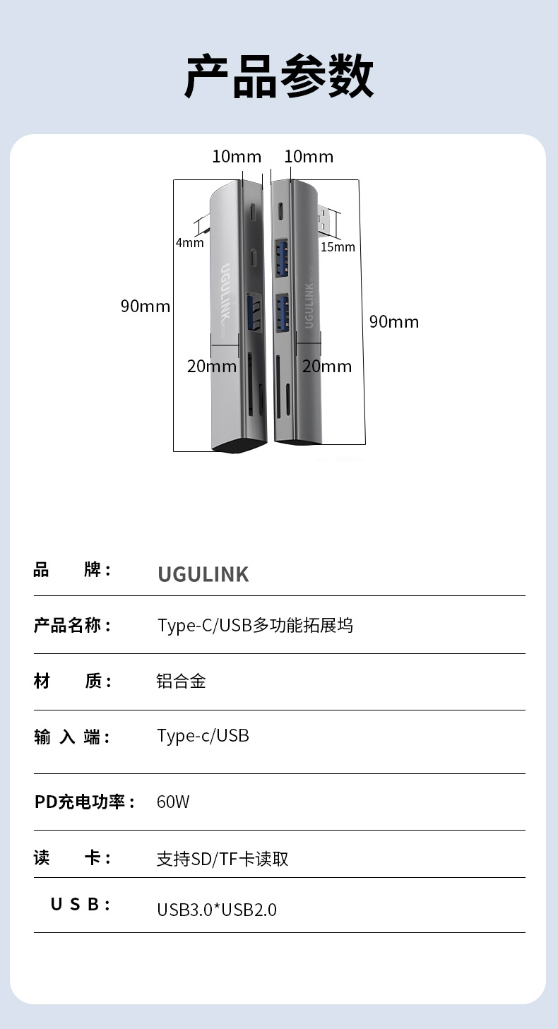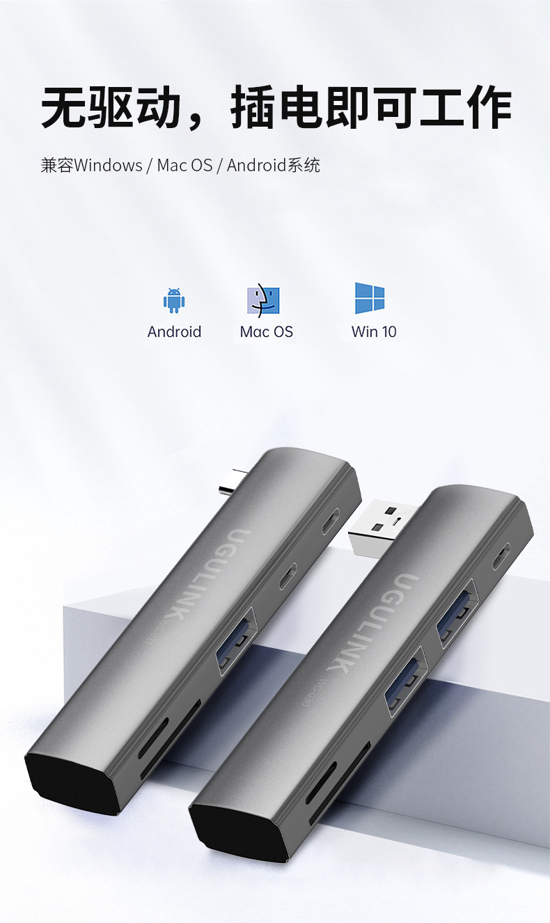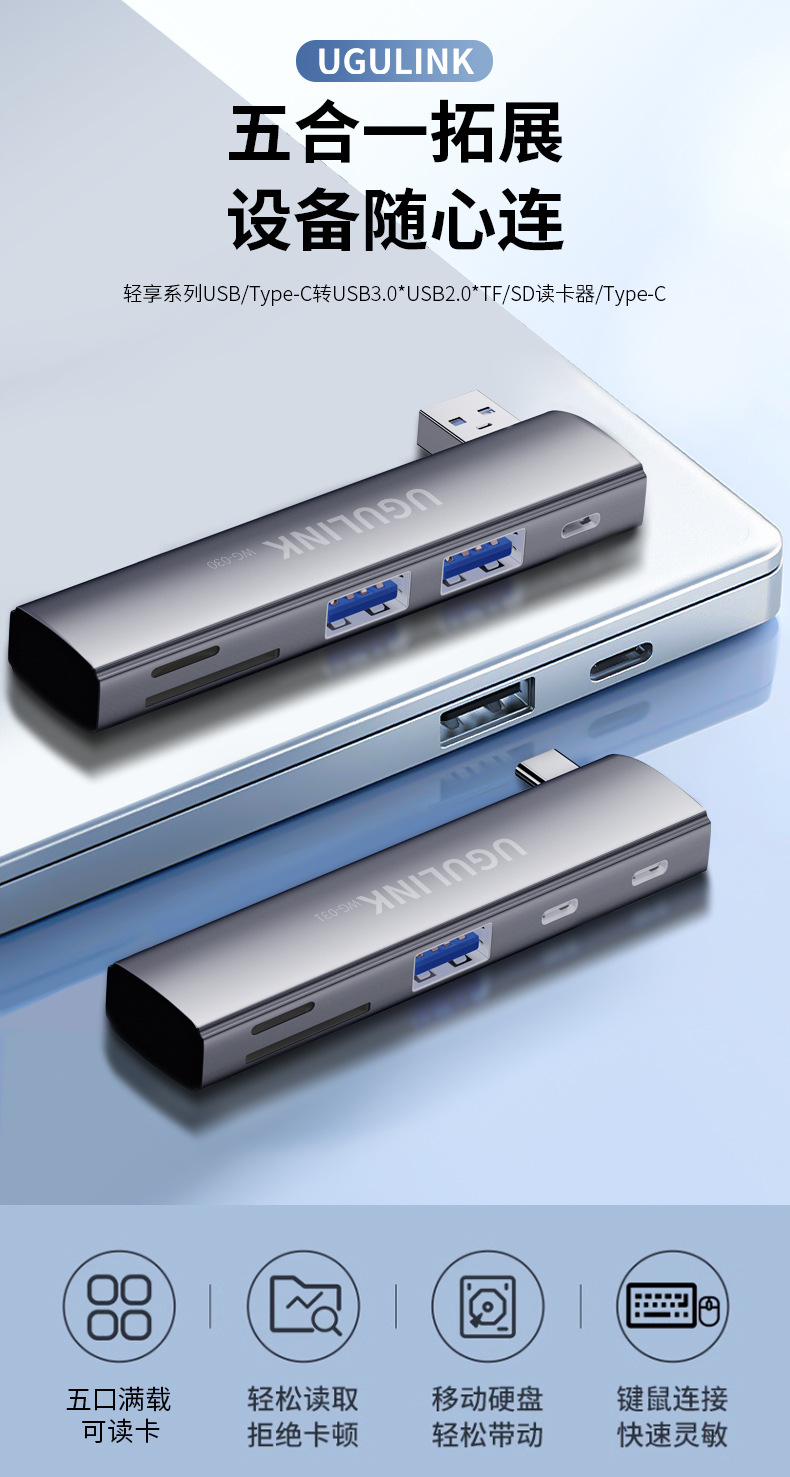 도킹 스테이션 5 대 1 USB3.0 허브 노트북 PD 고속 충전 60W 컴퓨터 TFSD 카드 U 디스크 데이터 전송스토어 가기