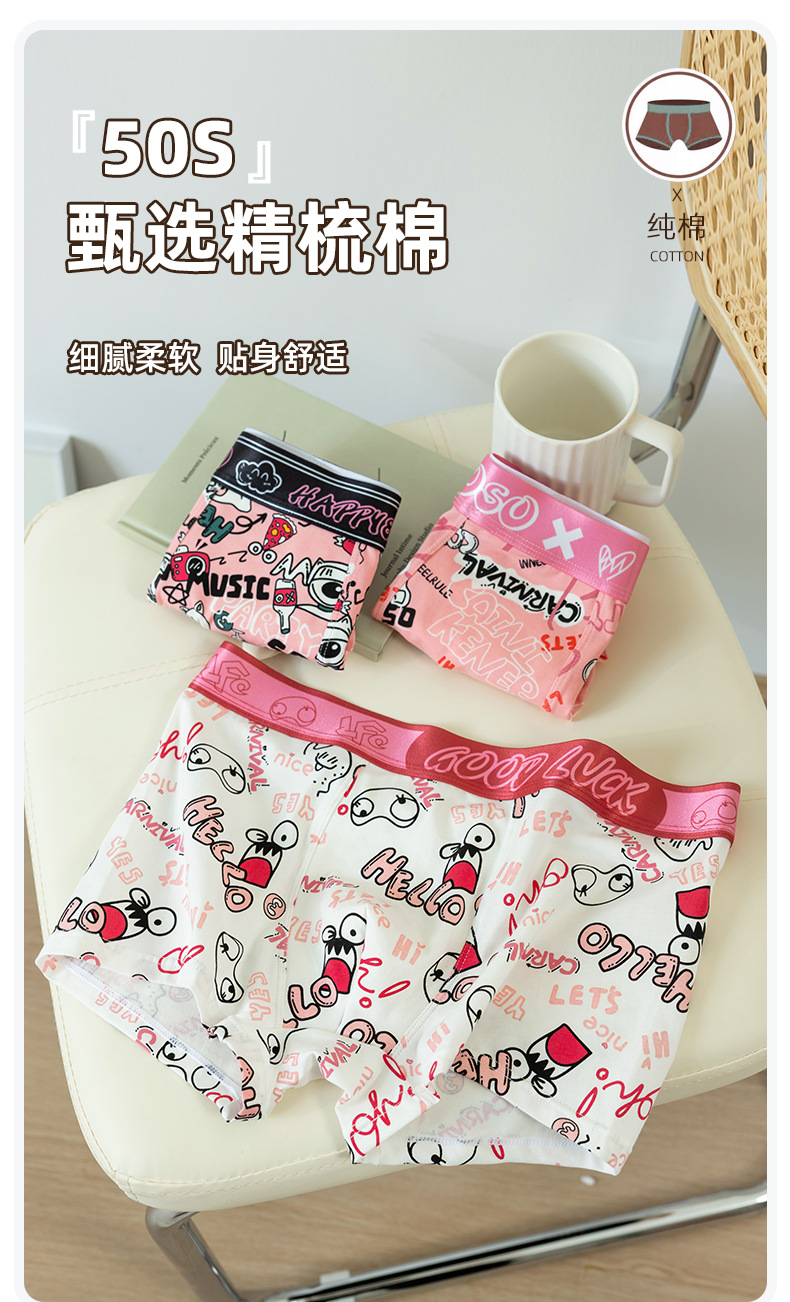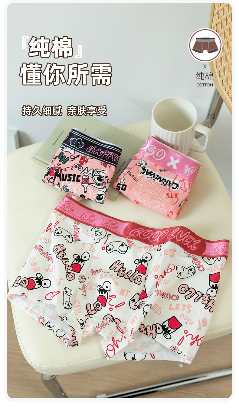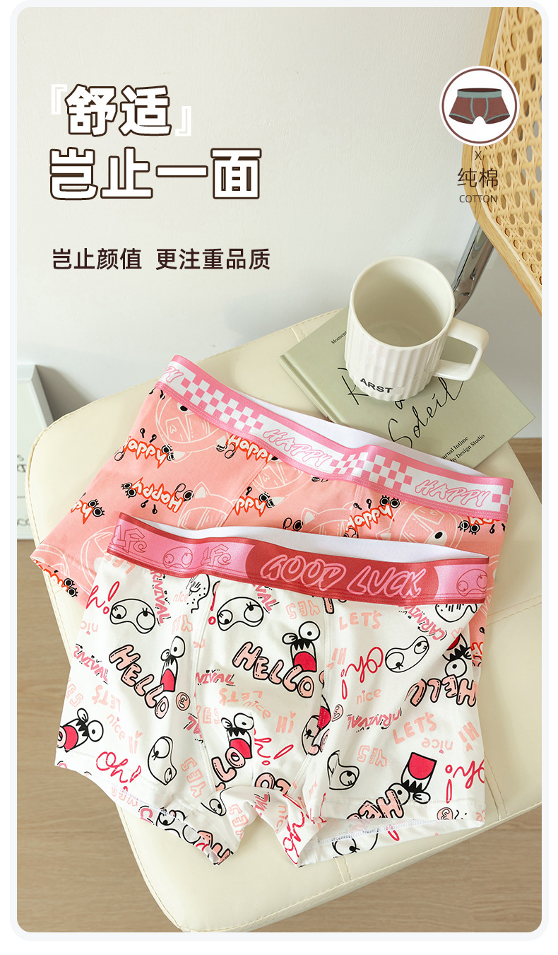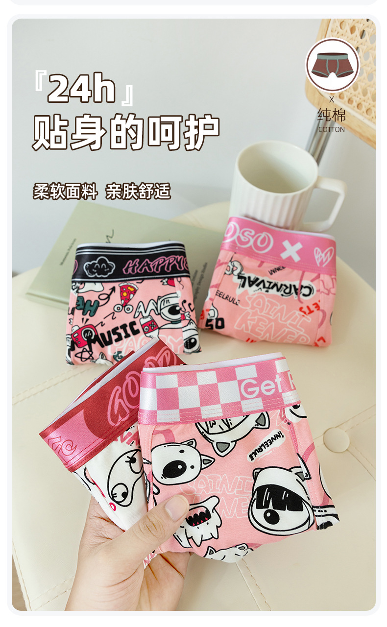 트렌디 한 핑크 남성 속옷 순수 코튼 사각형 소년 만화 귀여운 보이프렌드 핑크 남자 친구 반바지 인쇄 된 남성 속옷
