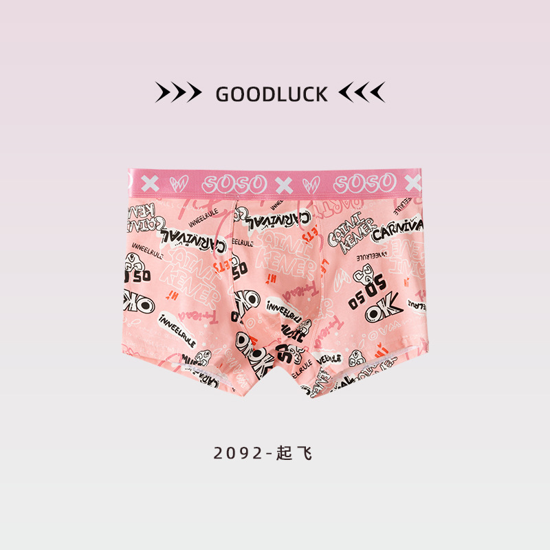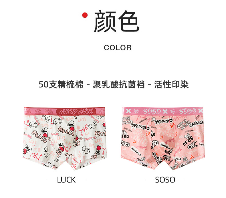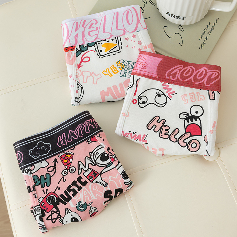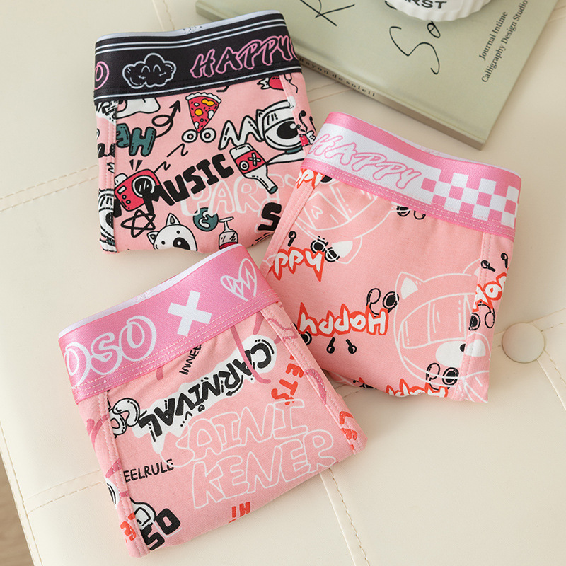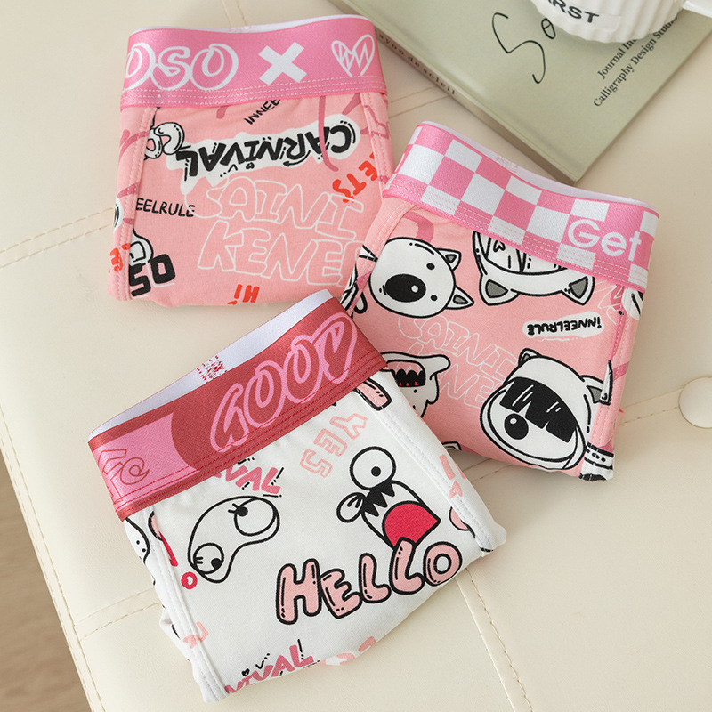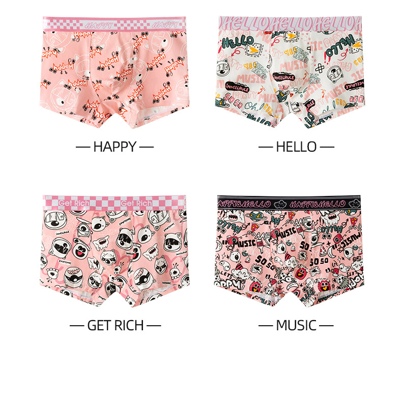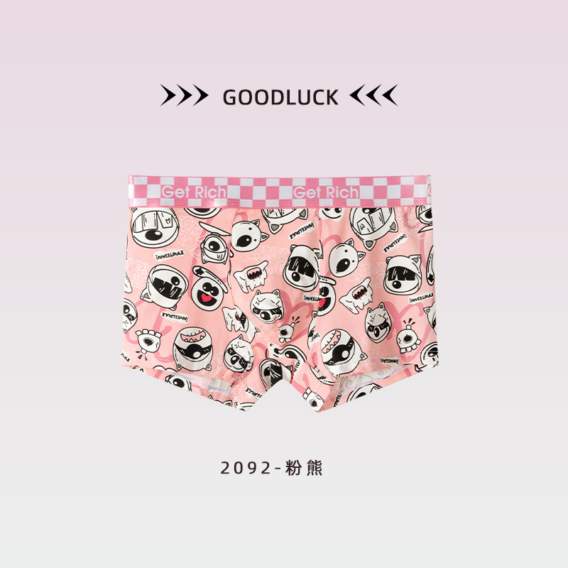 트렌디 한 핑크 남성 속옷 순수 코튼 사각형 소년 만화 귀여운 보이프렌드 핑크 남자 친구 반바지 인쇄 된 남성 속옷