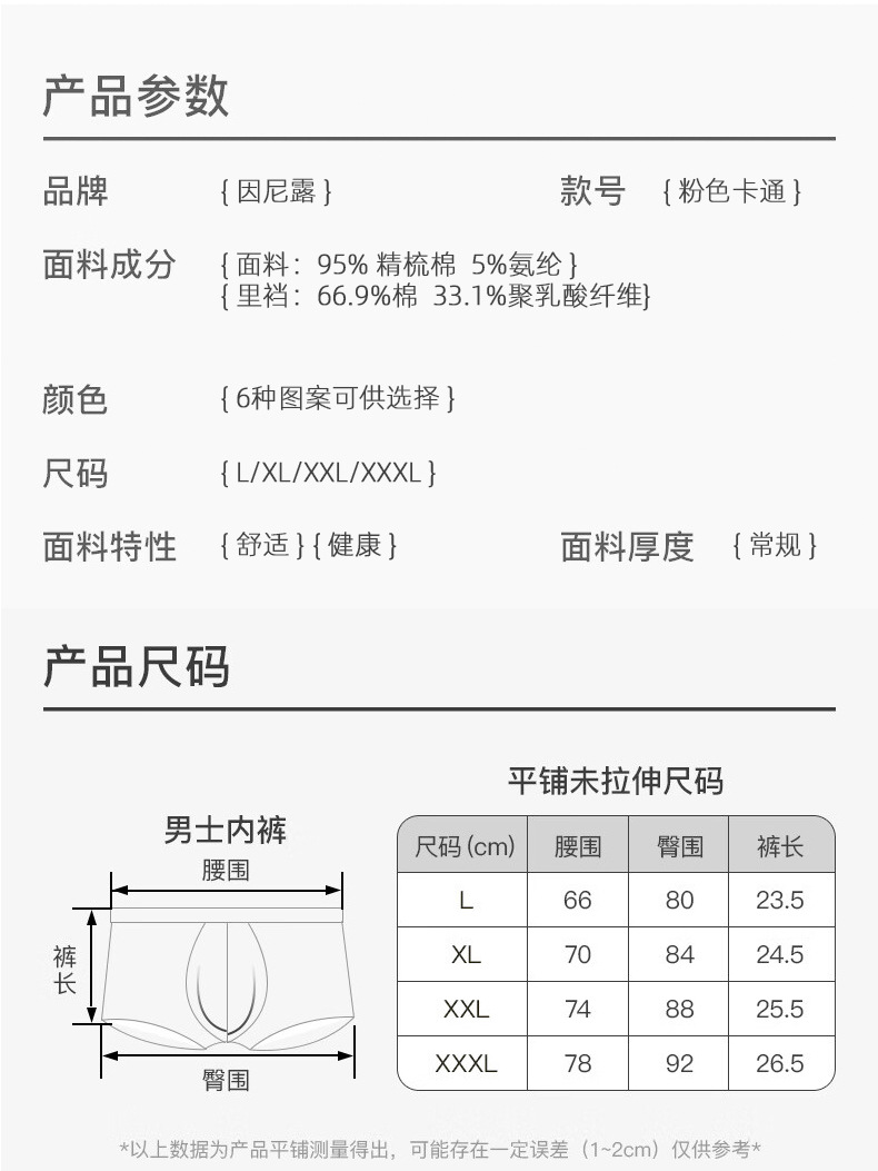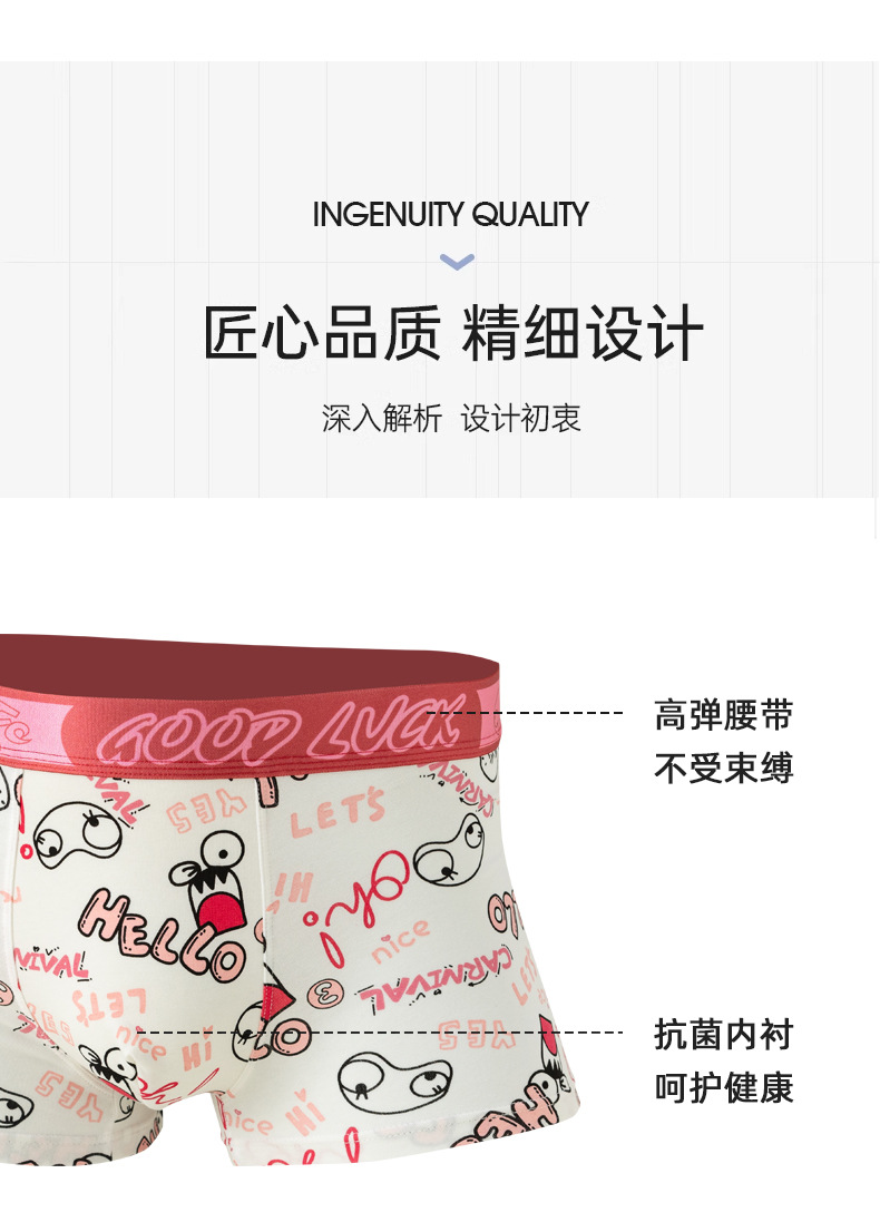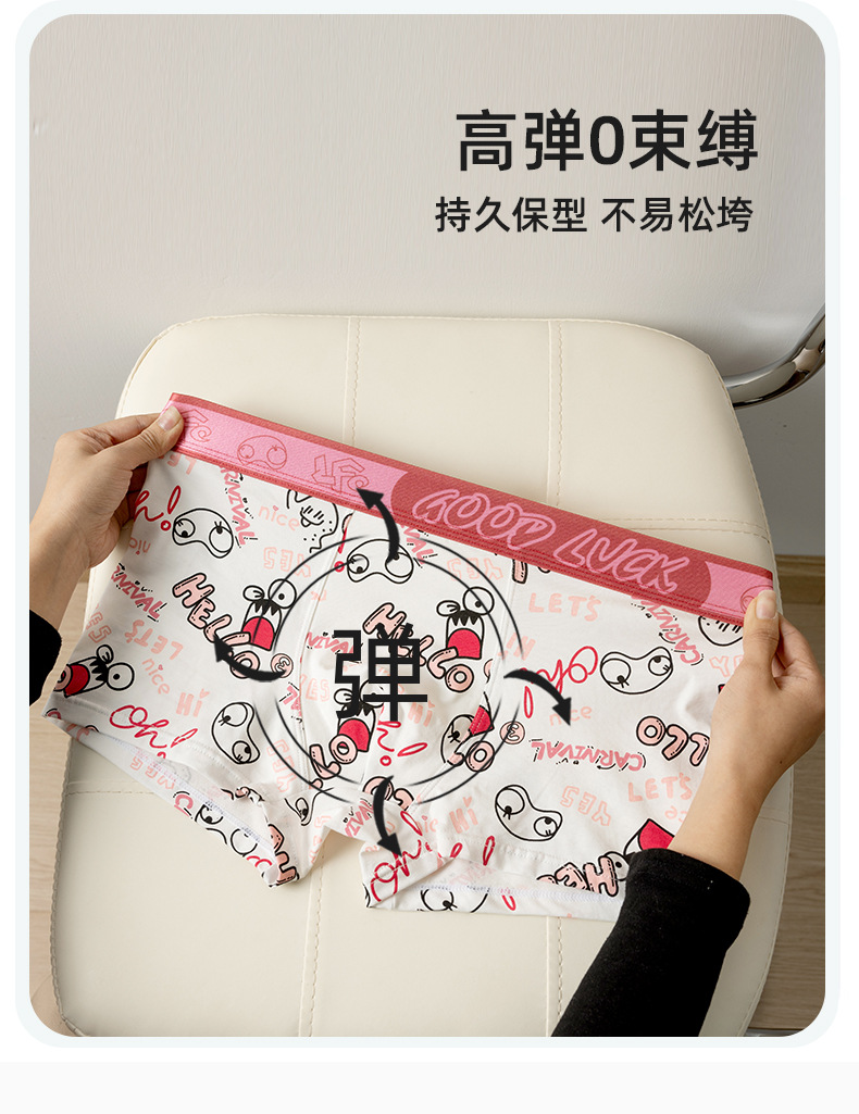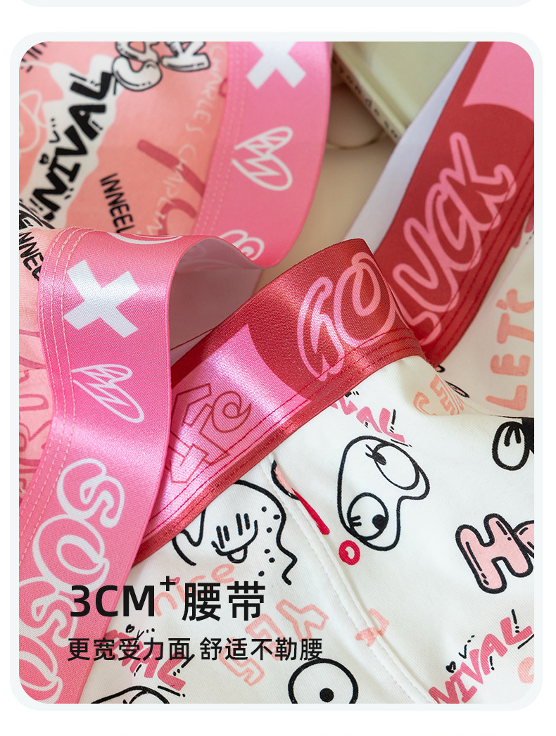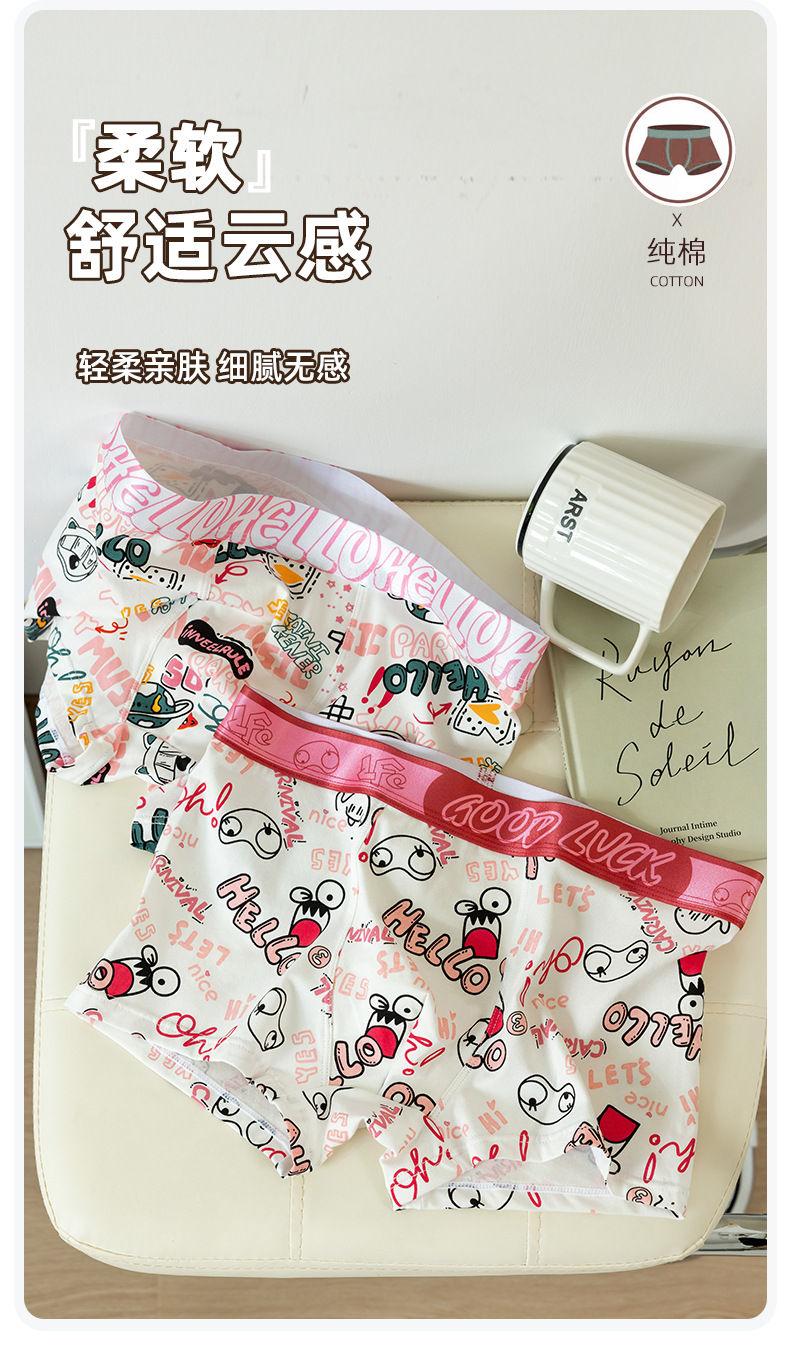 트렌디 한 핑크 남성 속옷 순수 코튼 사각형 소년 만화 귀여운 보이프렌드 핑크 남자 친구 반바지 인쇄 된 남성 속옷