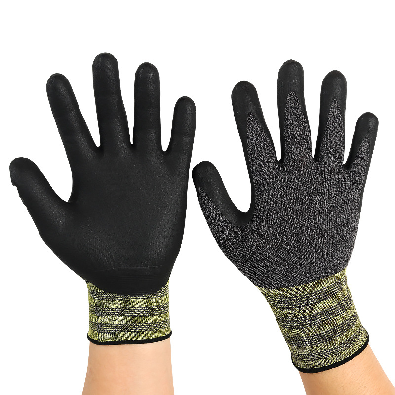 블랙 다크 브라운 나일론 스판덱스 코팅 블랙 니트릴 발포 내마모성 미끄럼 방지 디핑 고무 교수형 사이트 작업 보호 장갑