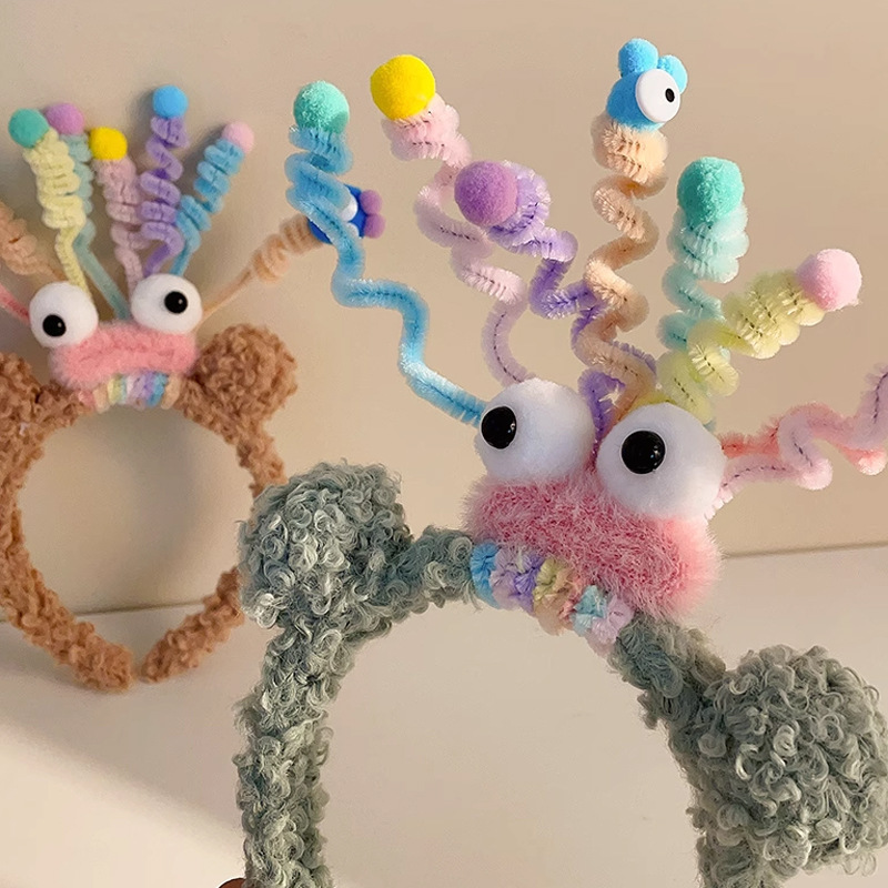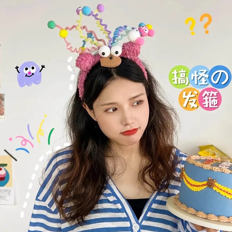 트위스터 재미있는 재미있는 헤어 밴드 귀여운 색상 머리띠 여성 워시 페이스 헤어 카드 모자 사진 파티 생일 헤어 액세서리