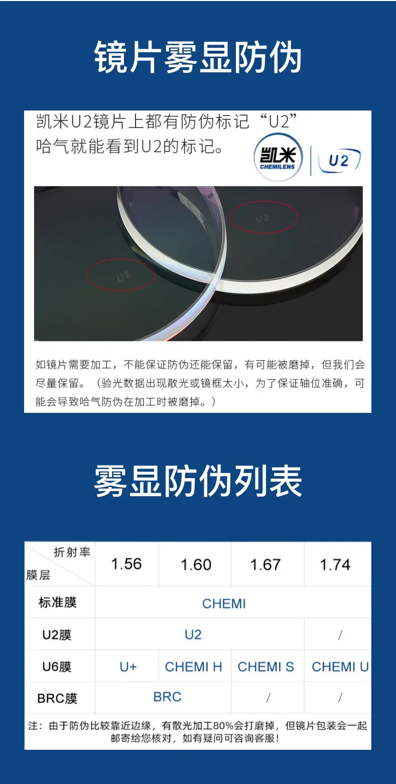 정품 케미 렌즈 u2 비구면 고화질 수지 u6 안티 블루 라이트 렌즈 1.74 렌즈 단양 렌즈 가공
