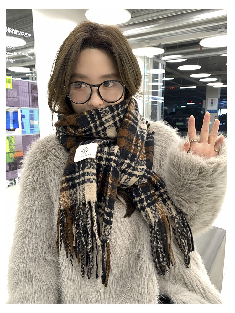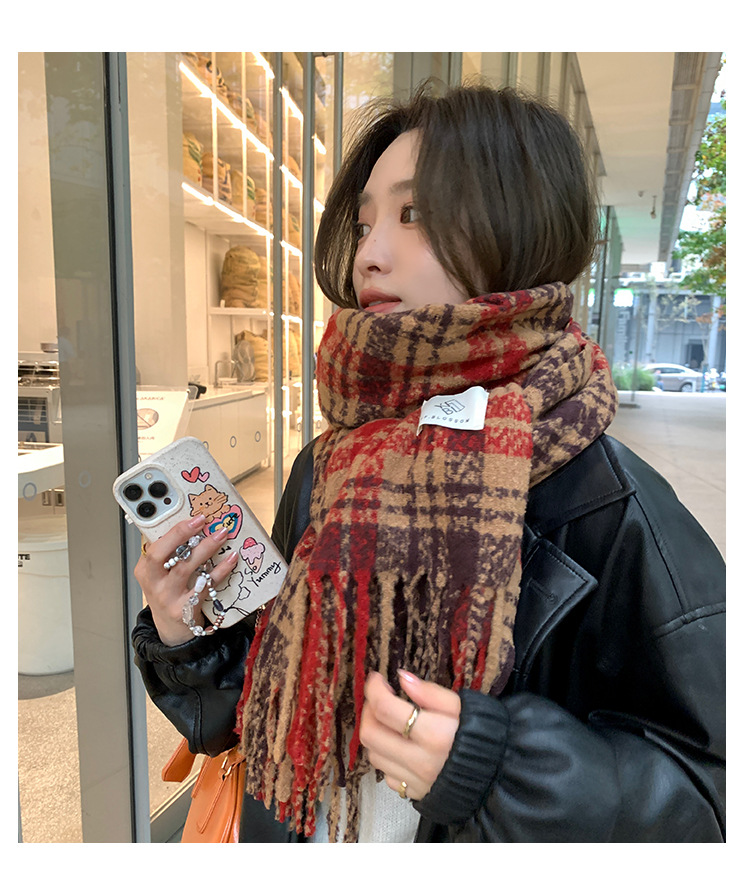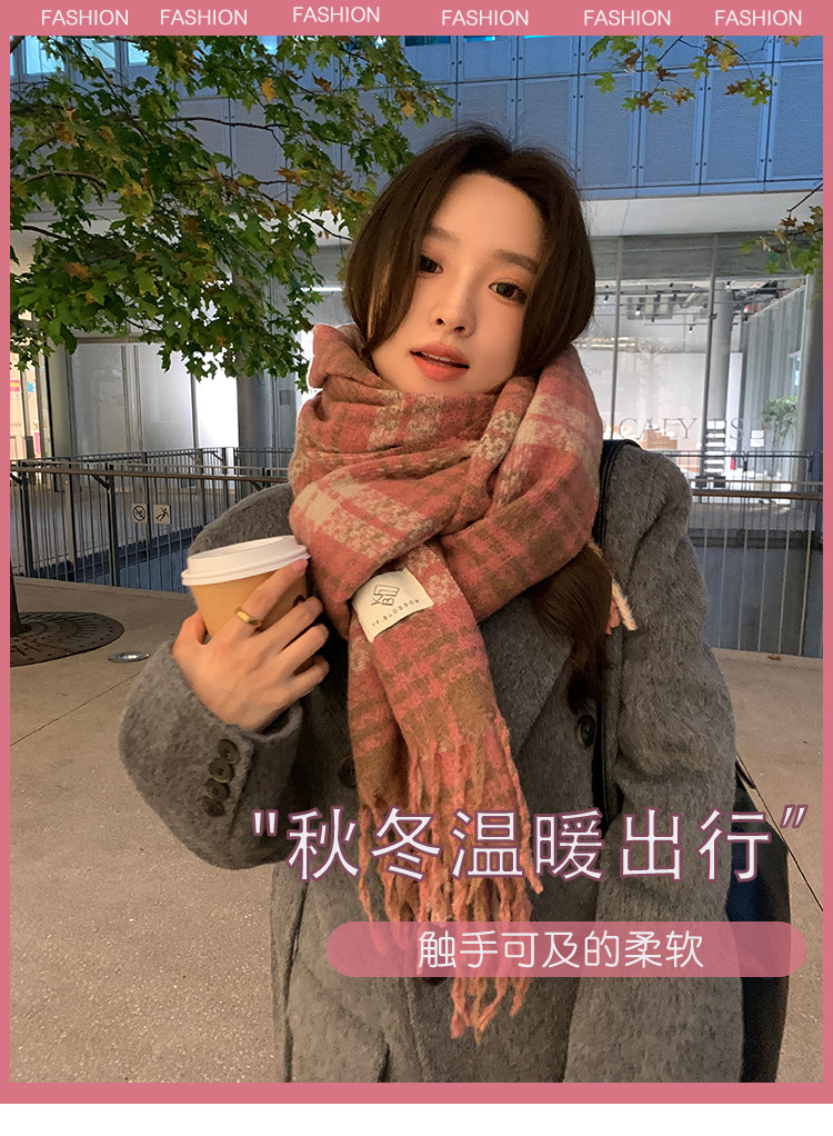 드라이 로즈 체크 무늬 스카프 여성용 겨울 고급 한국 스타일 따뜻한 새로운 스타일 달콤한 모든 일치 술 숄 스카프스토어 가기