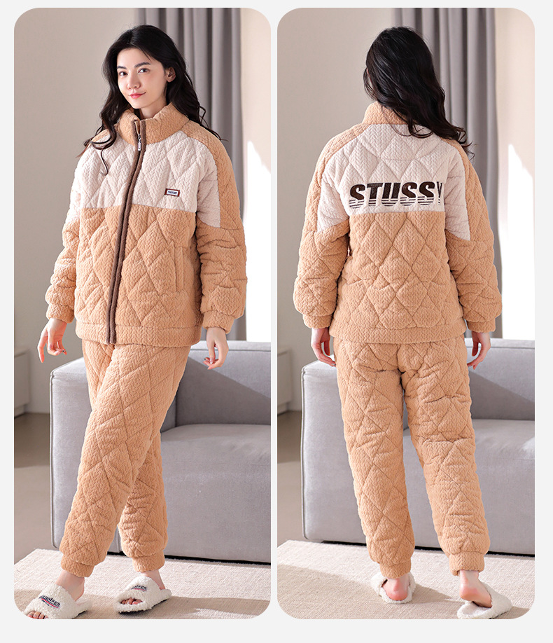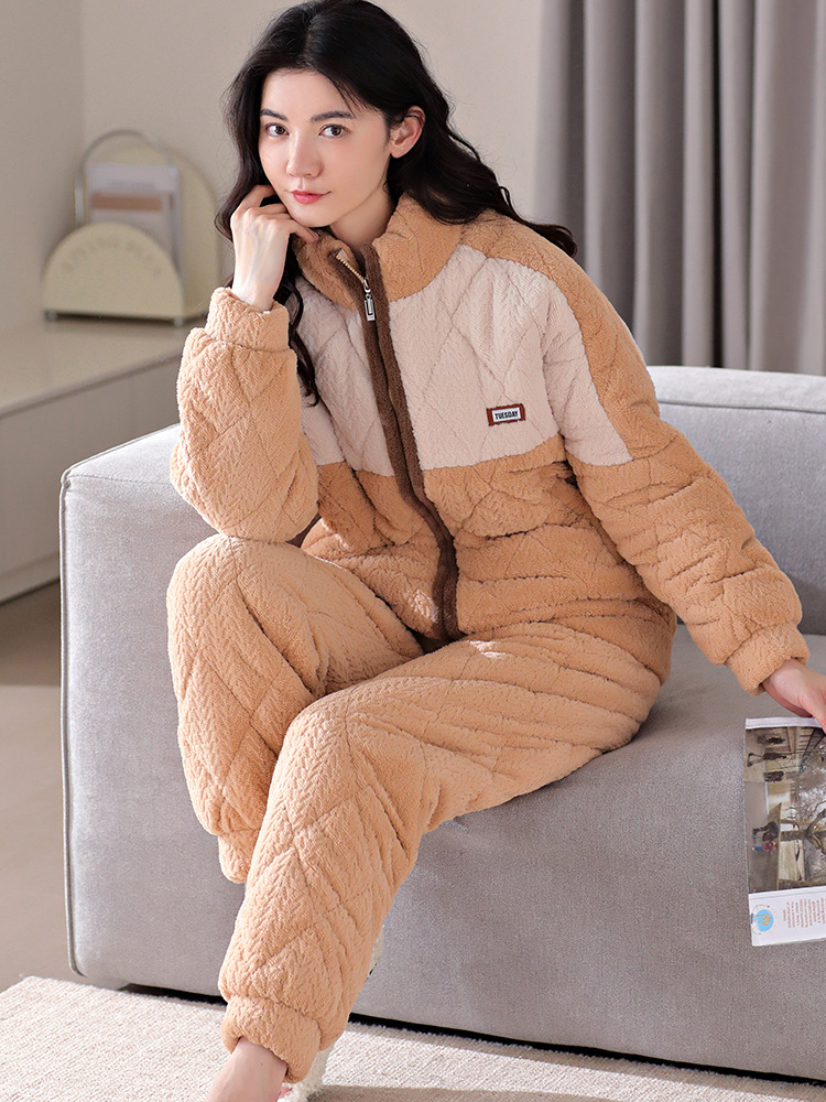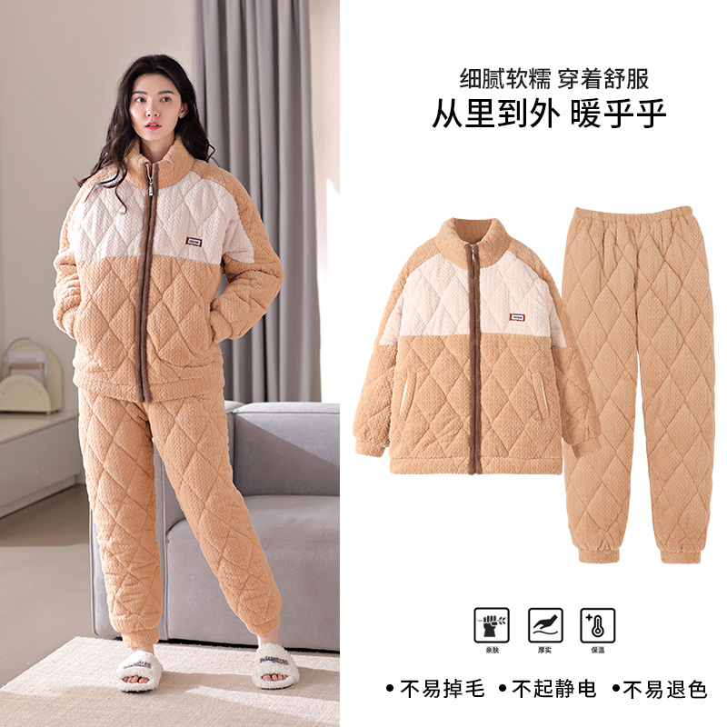 겨울 새로운 잠옷 여자의 플란넬 3 층 면 두꺼운 따뜻한 간단한 겉옷 캐주얼 홈 세트