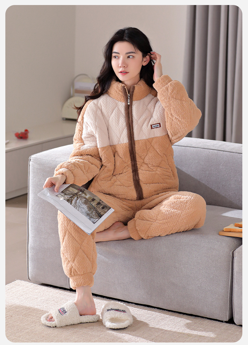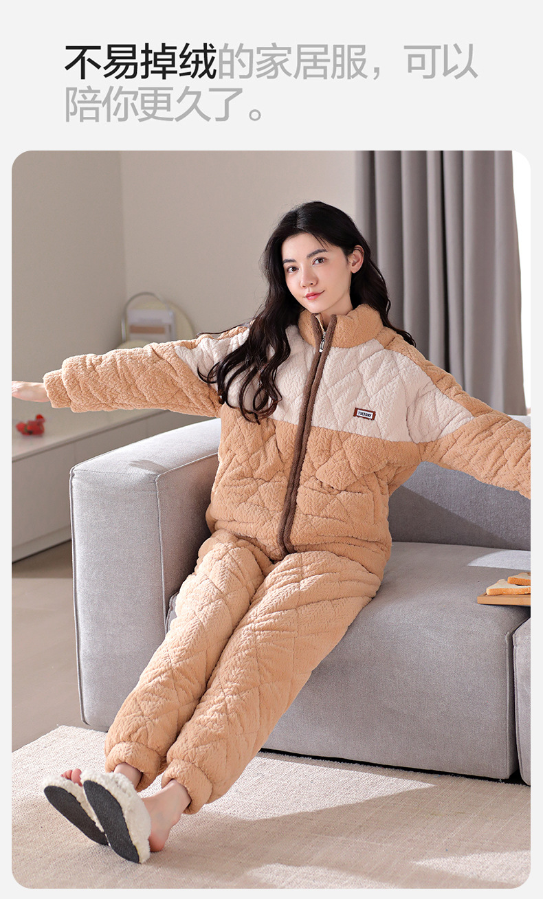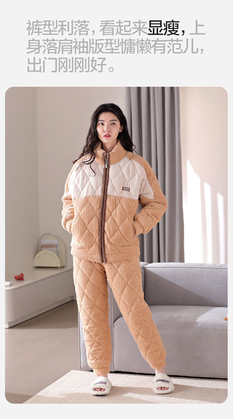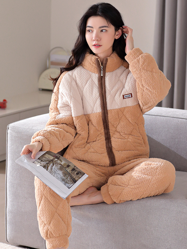 겨울 새로운 잠옷 여자의 플란넬 3 층 면 두꺼운 따뜻한 간단한 겉옷 캐주얼 홈 세트스토어 가기