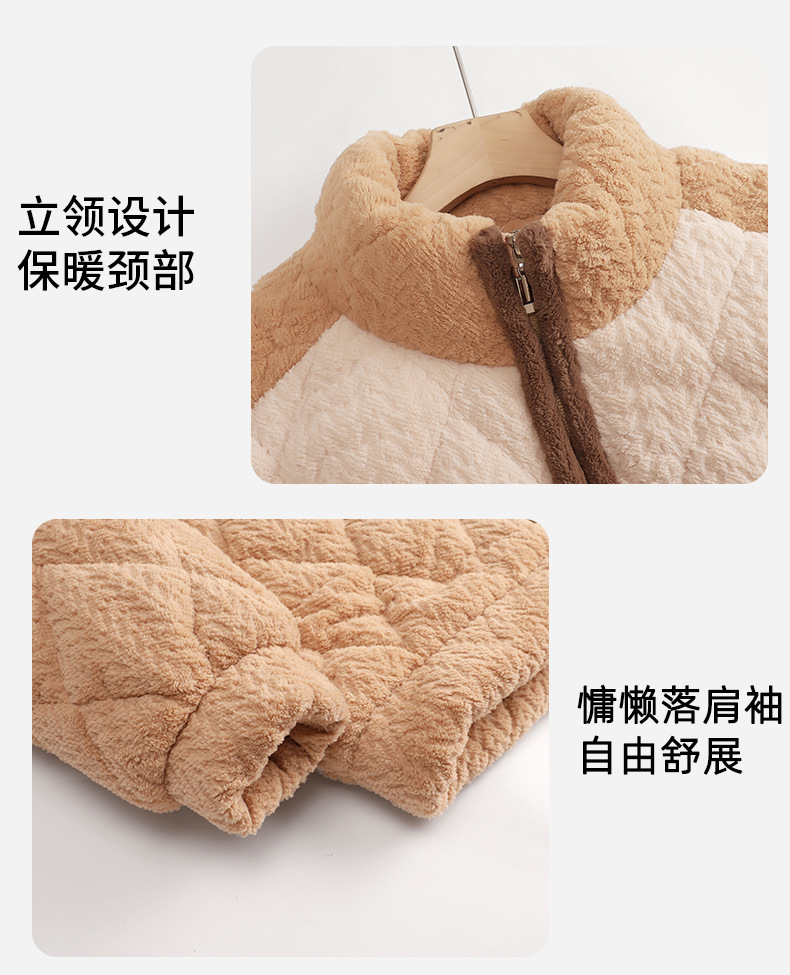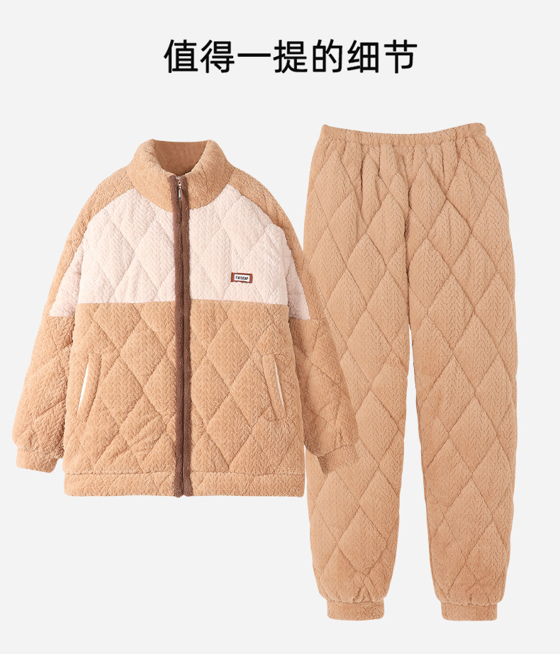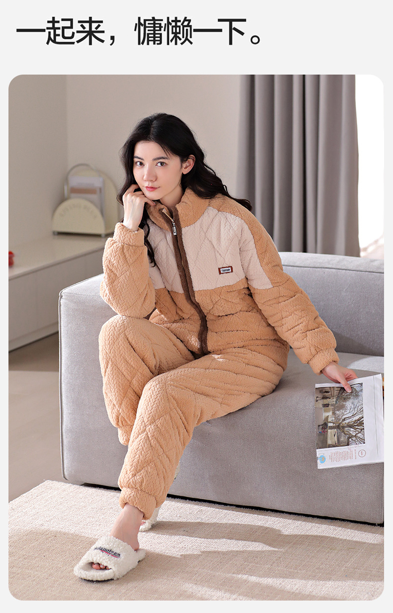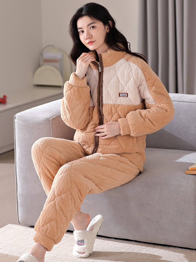 겨울 새로운 잠옷 여자의 플란넬 3 층 면 두꺼운 따뜻한 간단한 겉옷 캐주얼 홈 세트스토어 가기