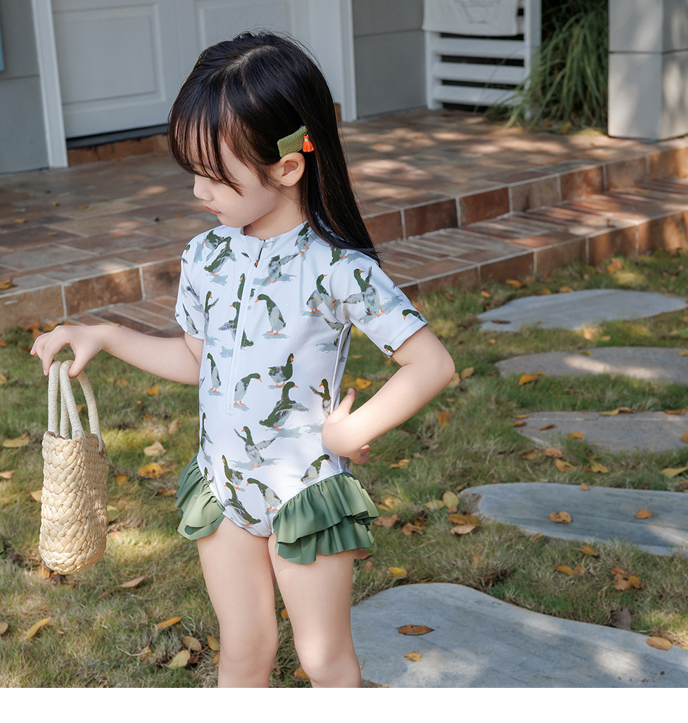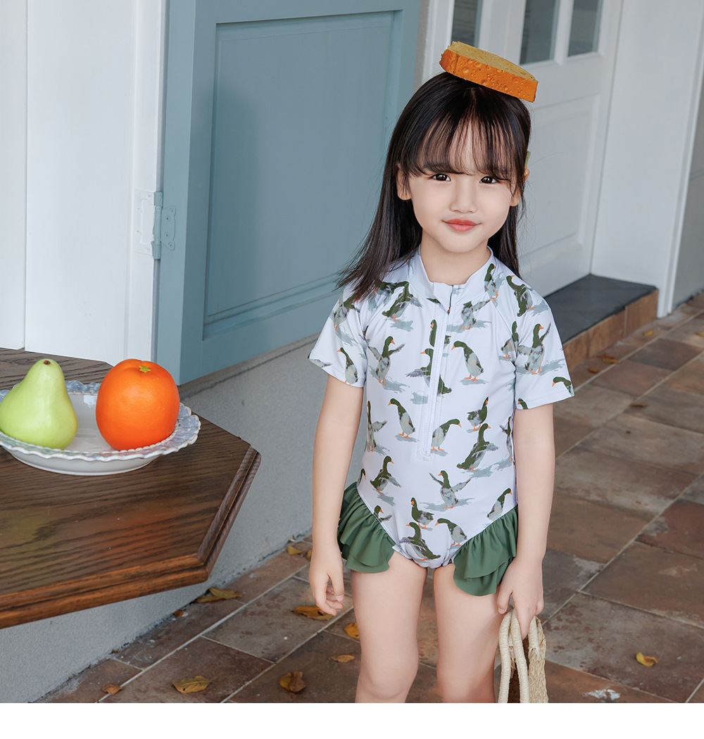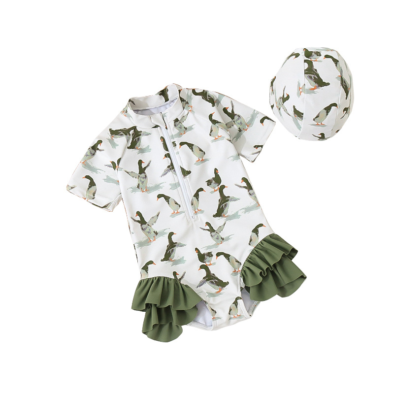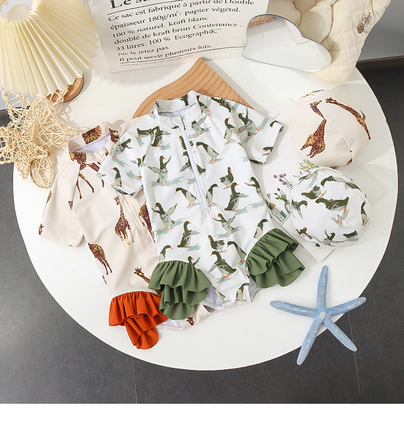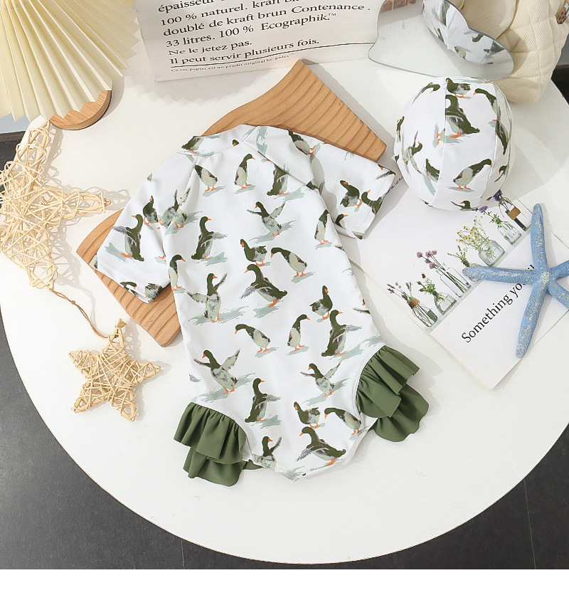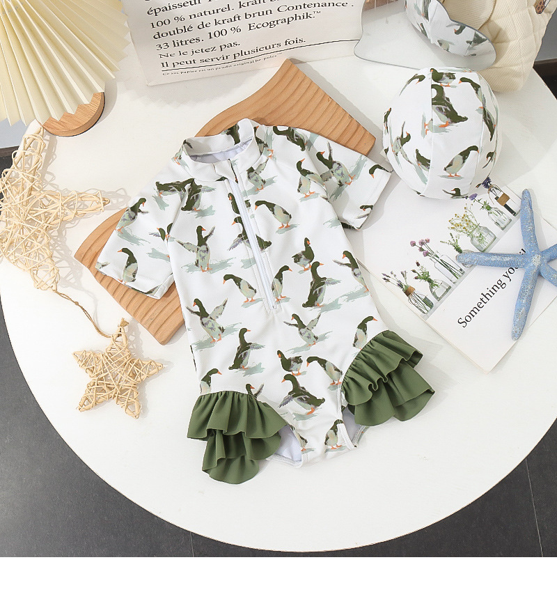 국제적인 소녀용 만화 수영복, 편안하고 부드러운 프린트 원피스 수영복, 어린이용 삼각형 속건 수영복 및 수영모스토어 가기