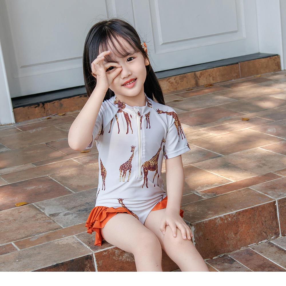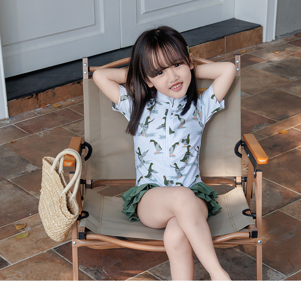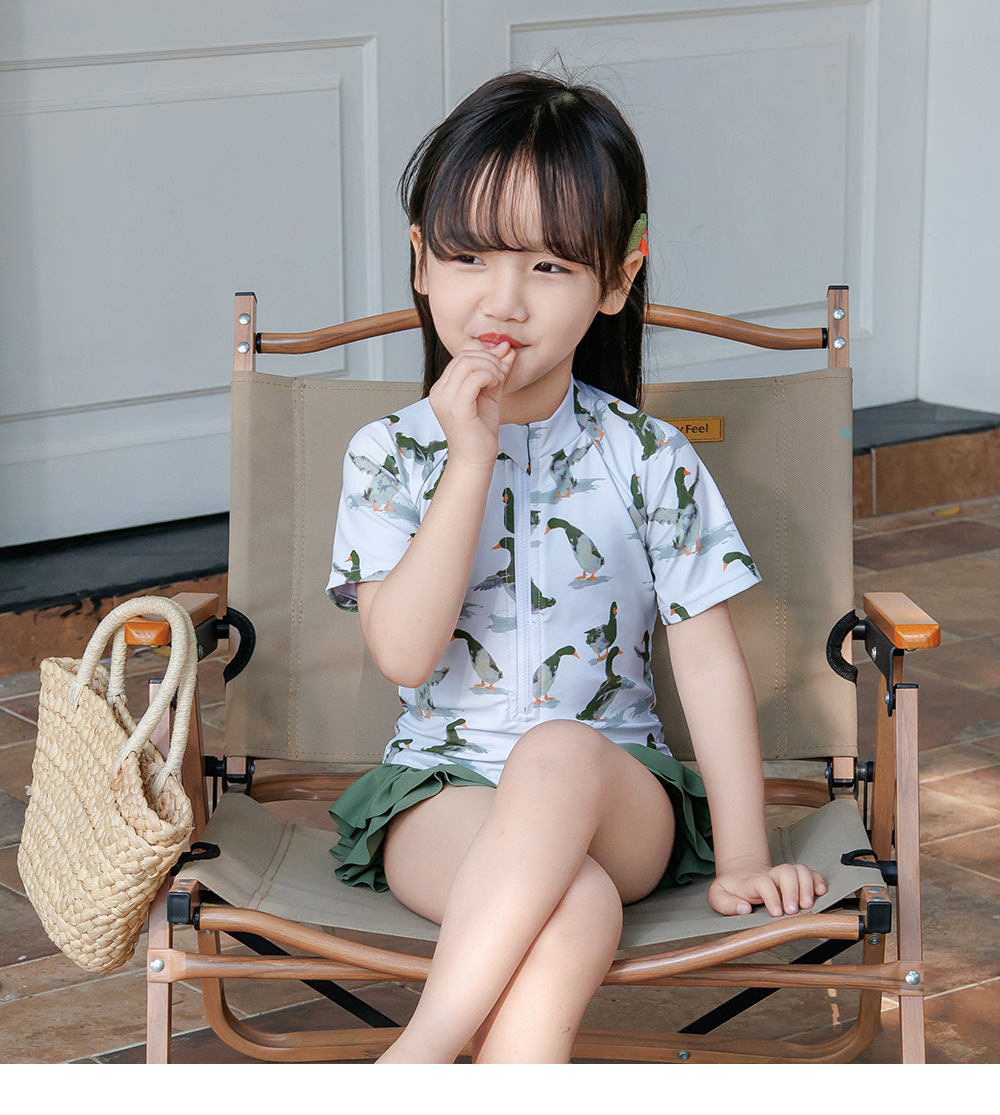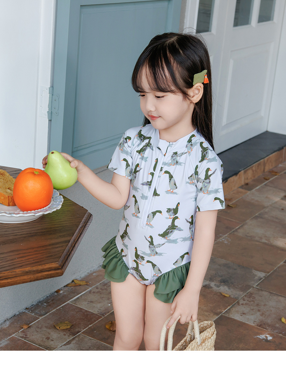 국제적인 소녀용 만화 수영복, 편안하고 부드러운 프린트 원피스 수영복, 어린이용 삼각형 속건 수영복 및 수영모스토어 가기