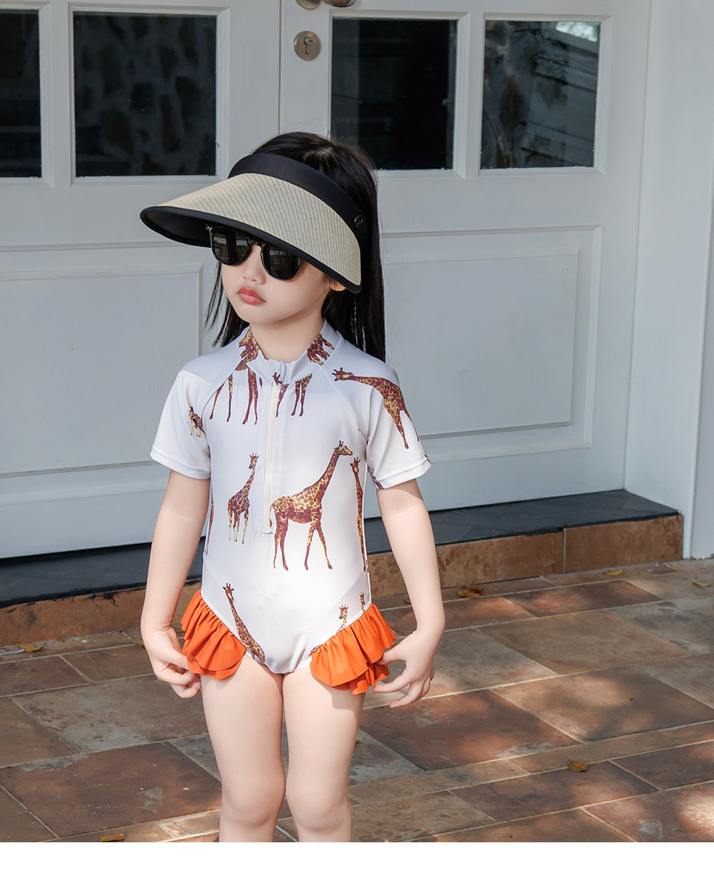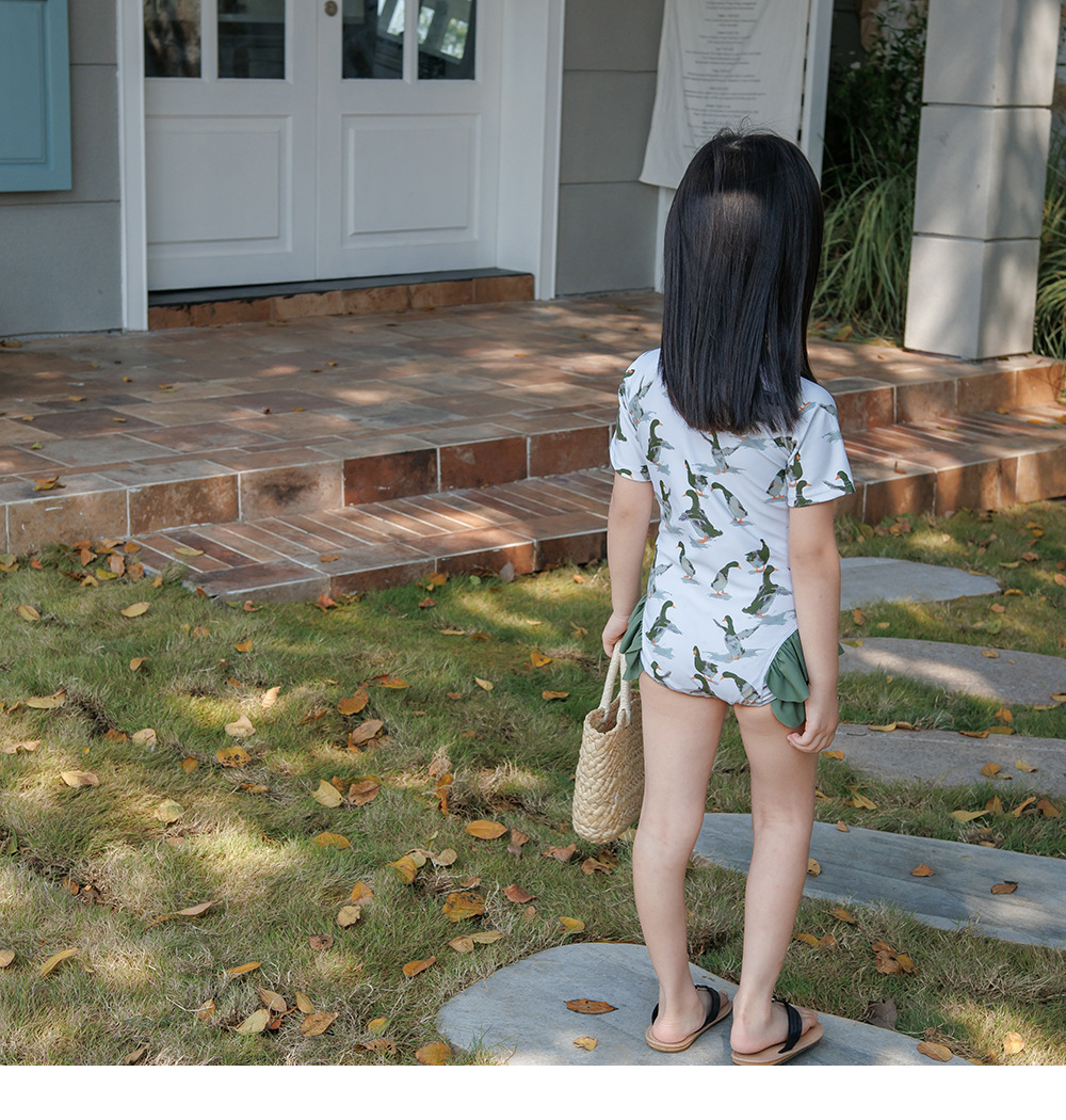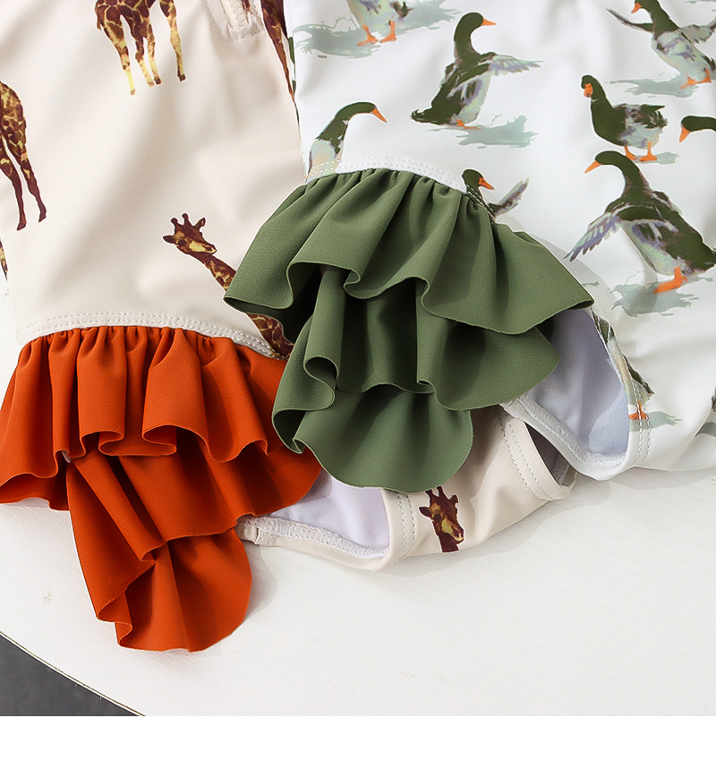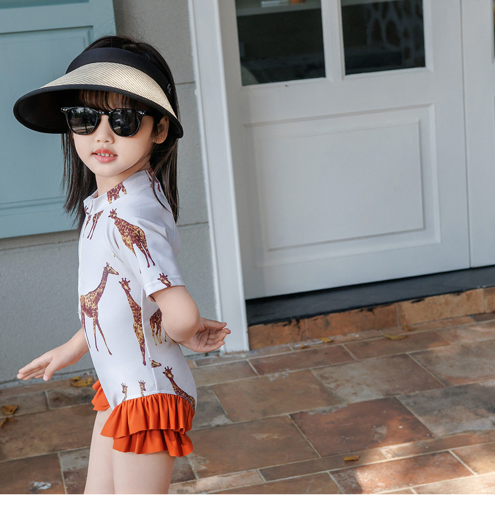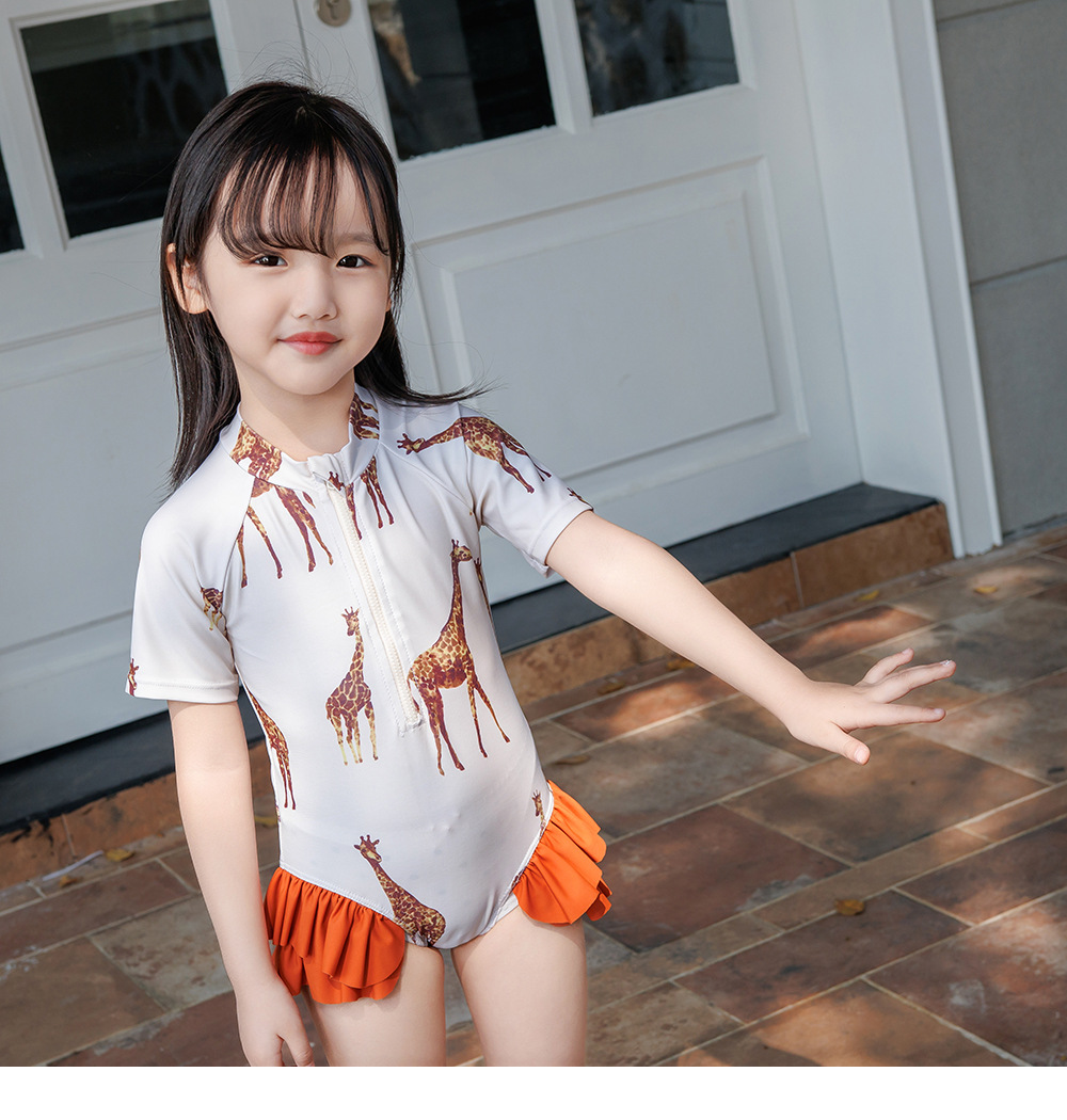 국제적인 소녀용 만화 수영복, 편안하고 부드러운 프린트 원피스 수영복, 어린이용 삼각형 속건 수영복 및 수영모스토어 가기