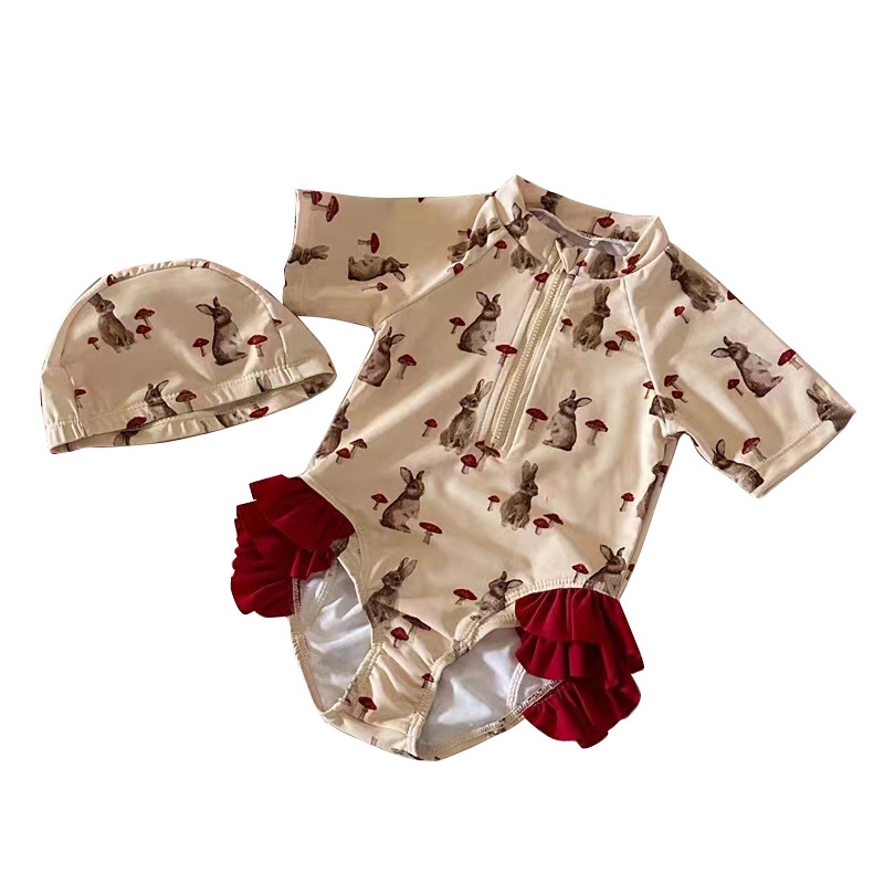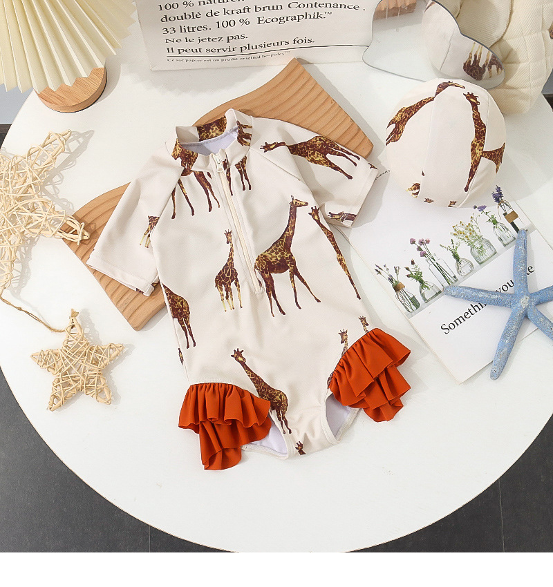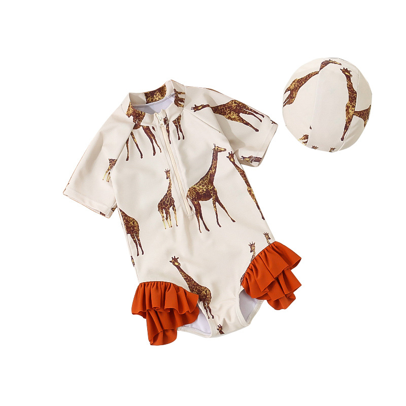 국제적인 소녀용 만화 수영복, 편안하고 부드러운 프린트 원피스 수영복, 어린이용 삼각형 속건 수영복 및 수영모
