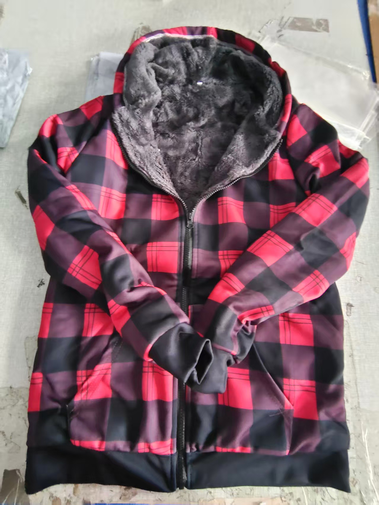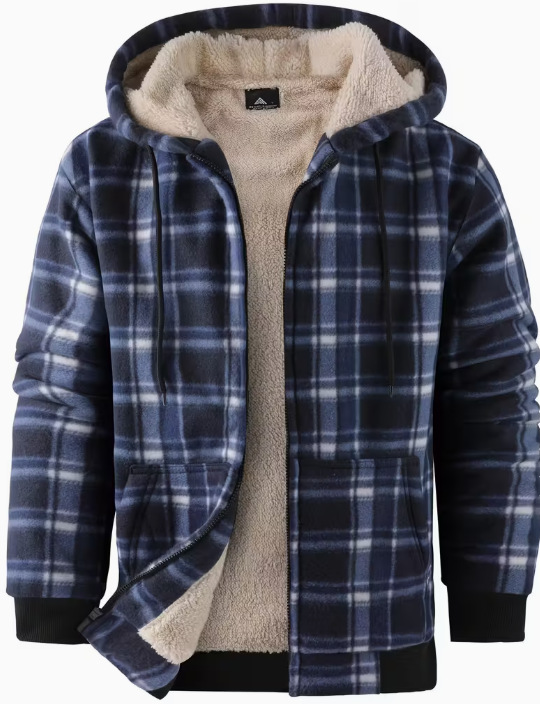 외국 무역 독립 웹사이트 남성복 유럽 및 미국 가을 겨울 두꺼운 면 코트 체크무늬 긴팔 루즈핏 후드 재킷 회색 모피스토어 가기