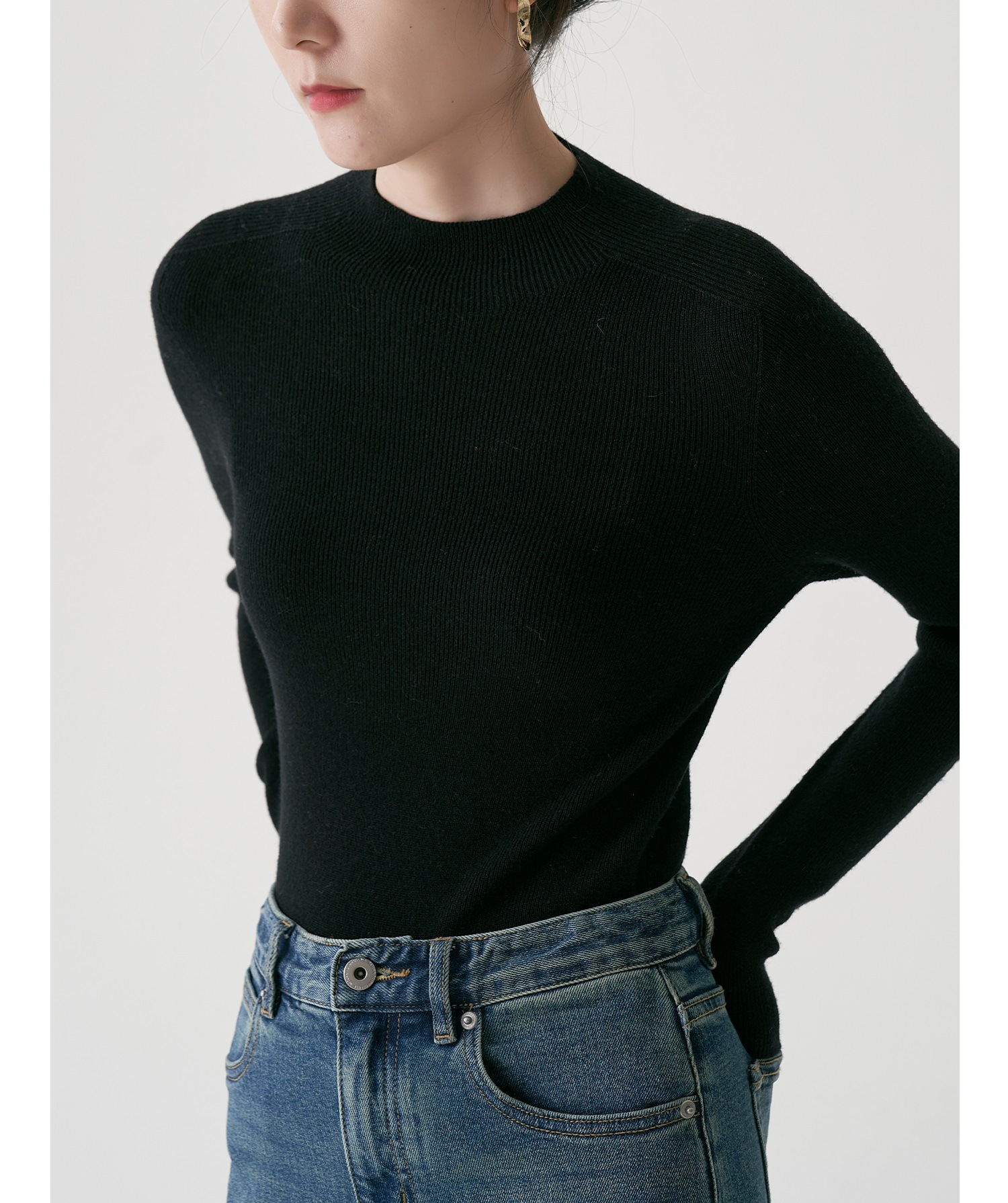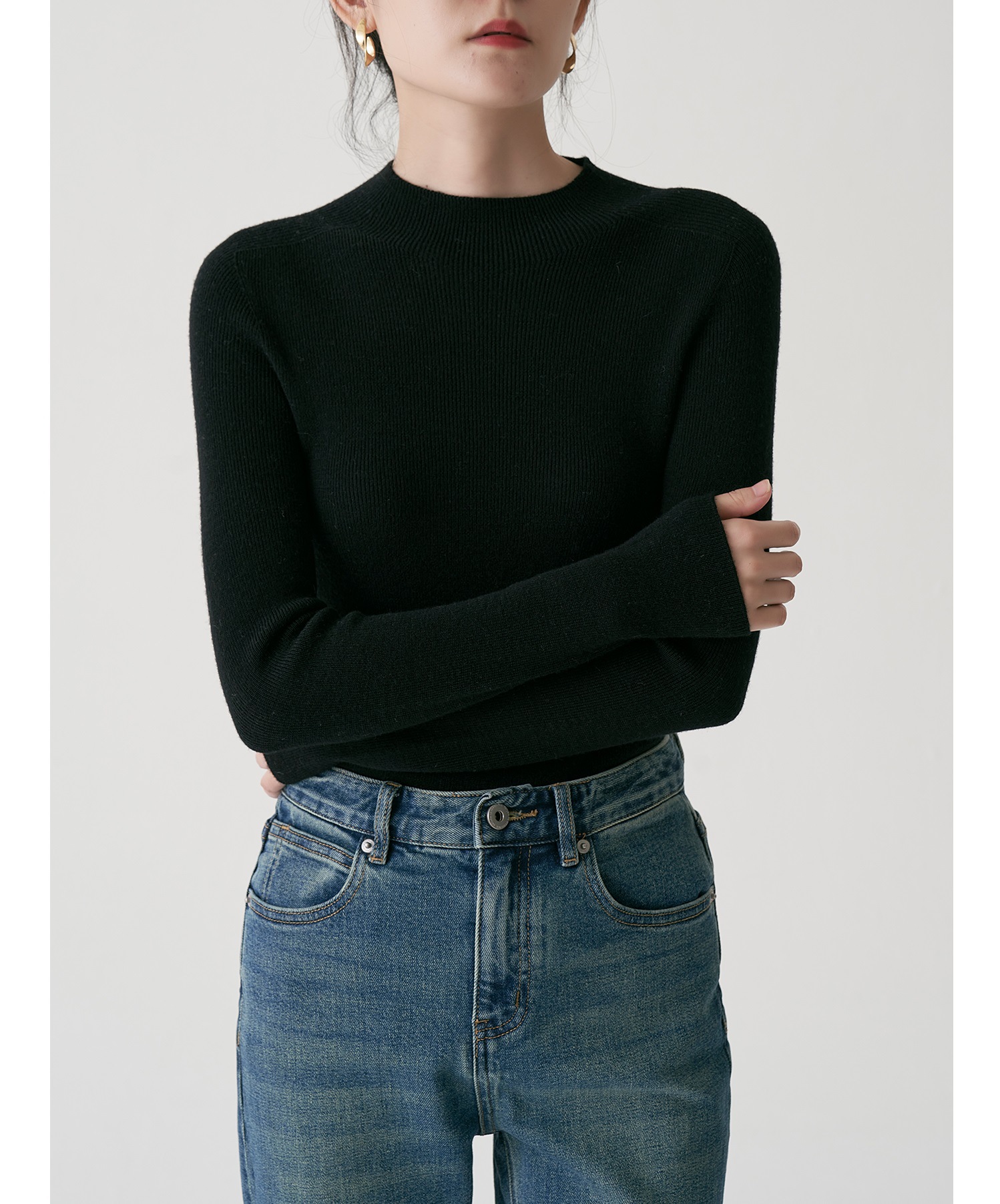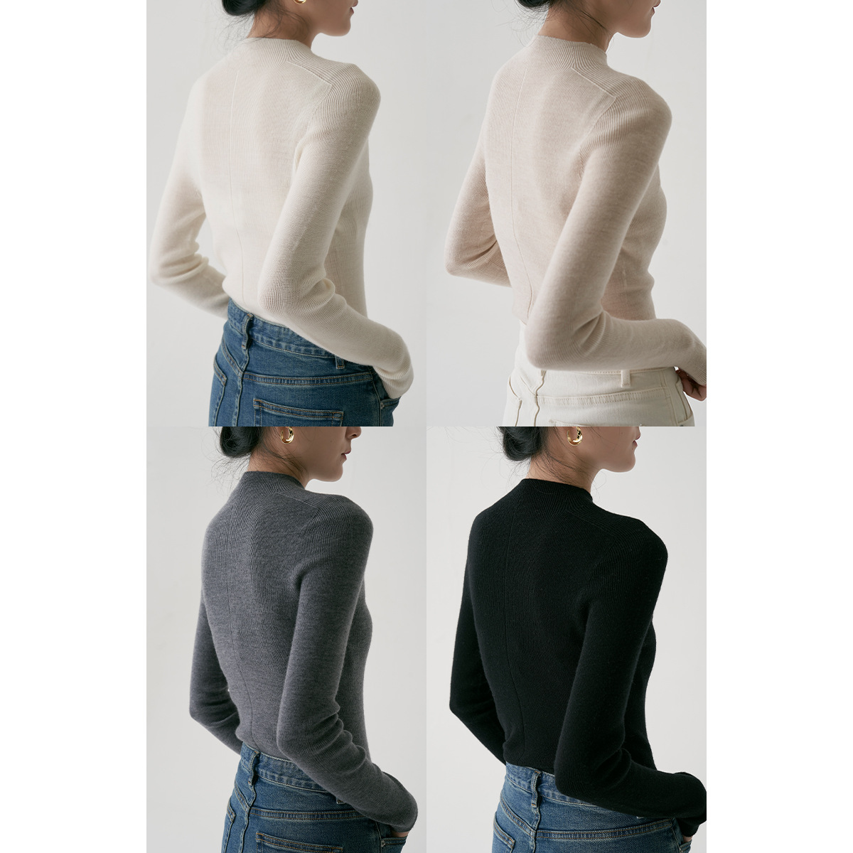 SS STUDIO 블록버스터 머신 워셔블 울 세미 하이 칼라 베이스 셔츠 여성 가을과 겨울 베이스 셔츠 탑