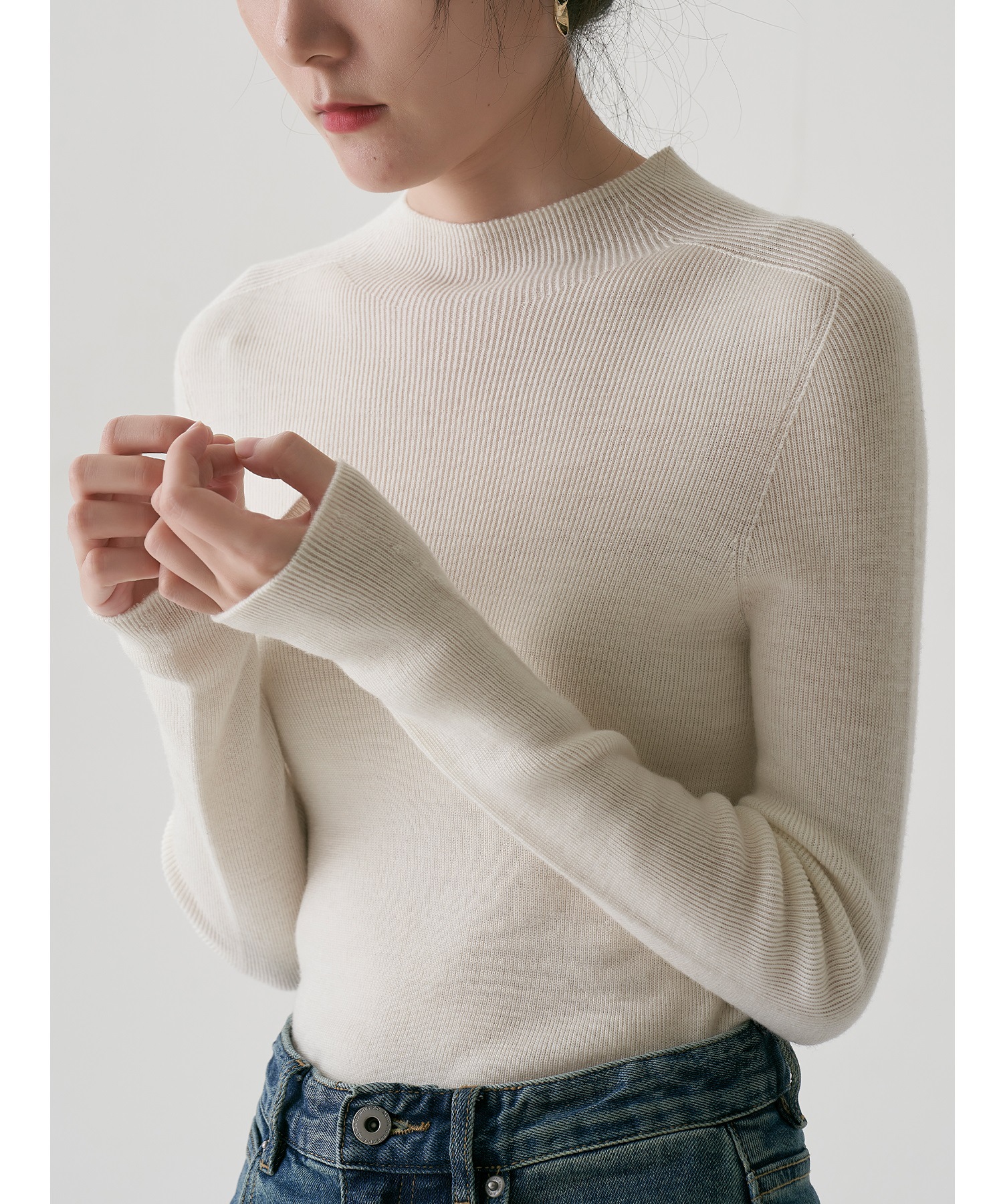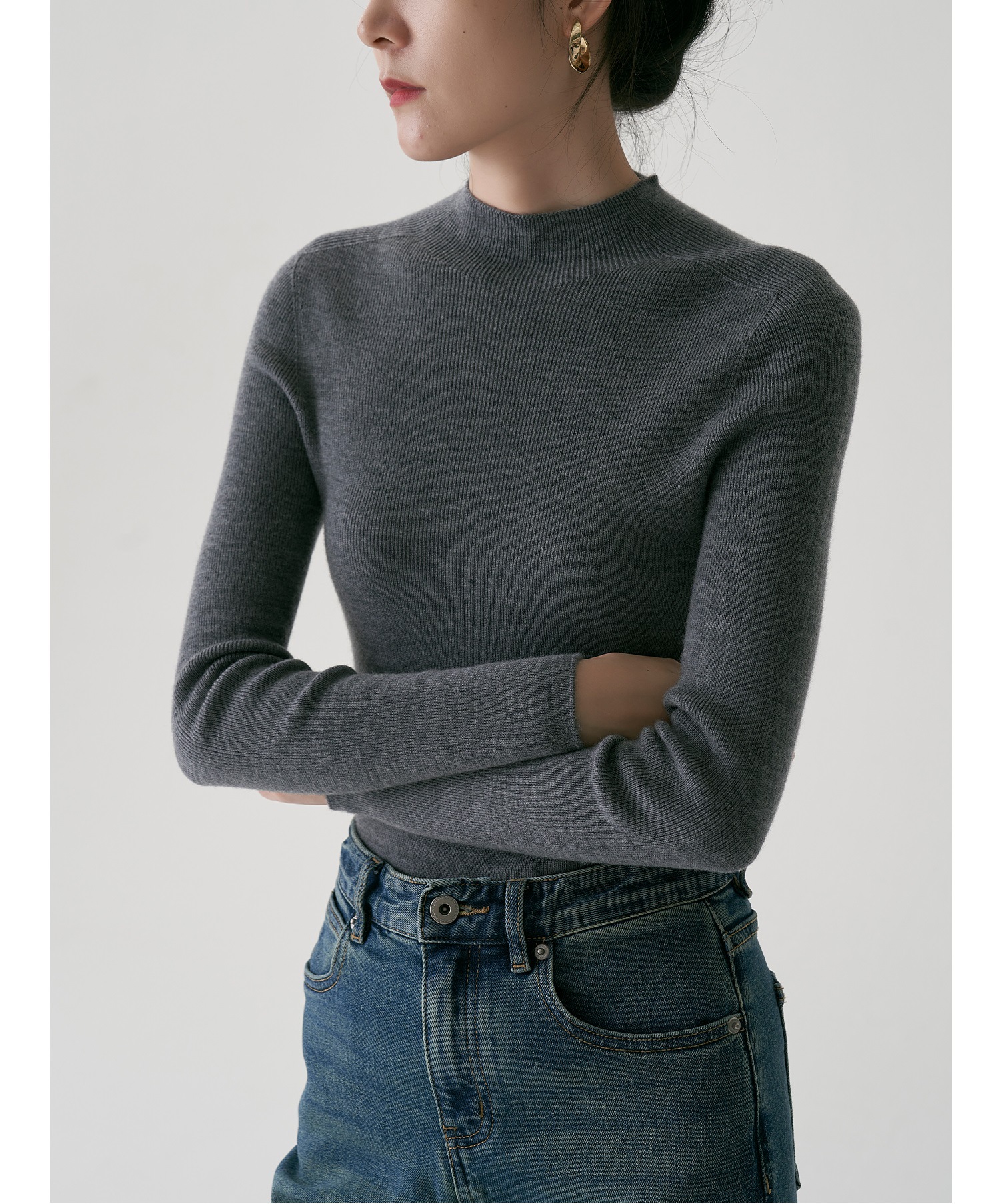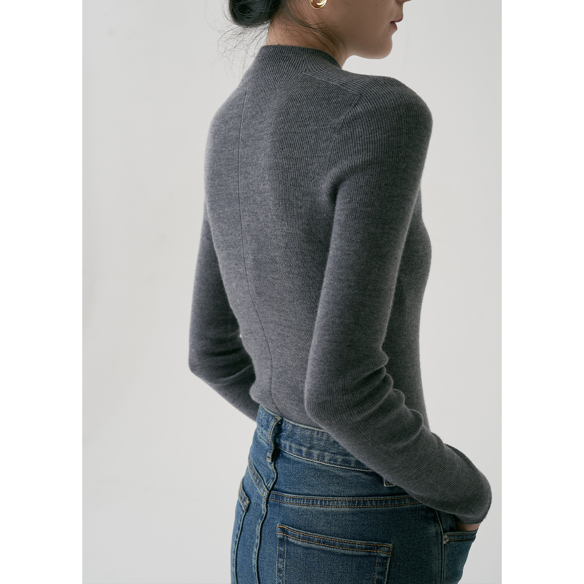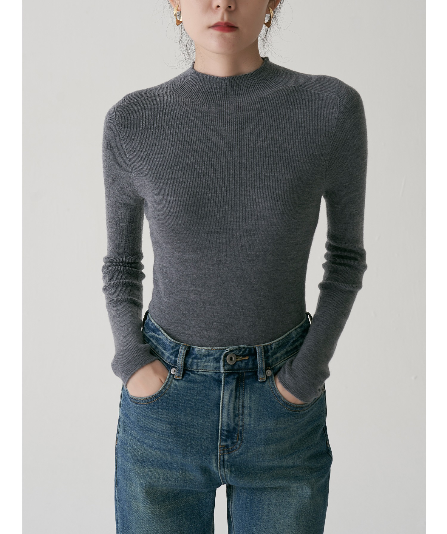 SS STUDIO 블록버스터 머신 워셔블 울 세미 하이 칼라 베이스 셔츠 여성 가을과 겨울 베이스 셔츠 탑