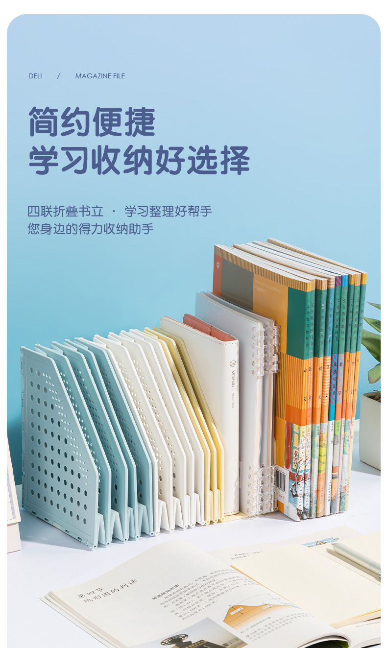 델리 TB506 쿼드 접이식 책 스탠드 학생 개폐식 책장 수축 프레임 테이블 접이식 파일 바스토어 가기