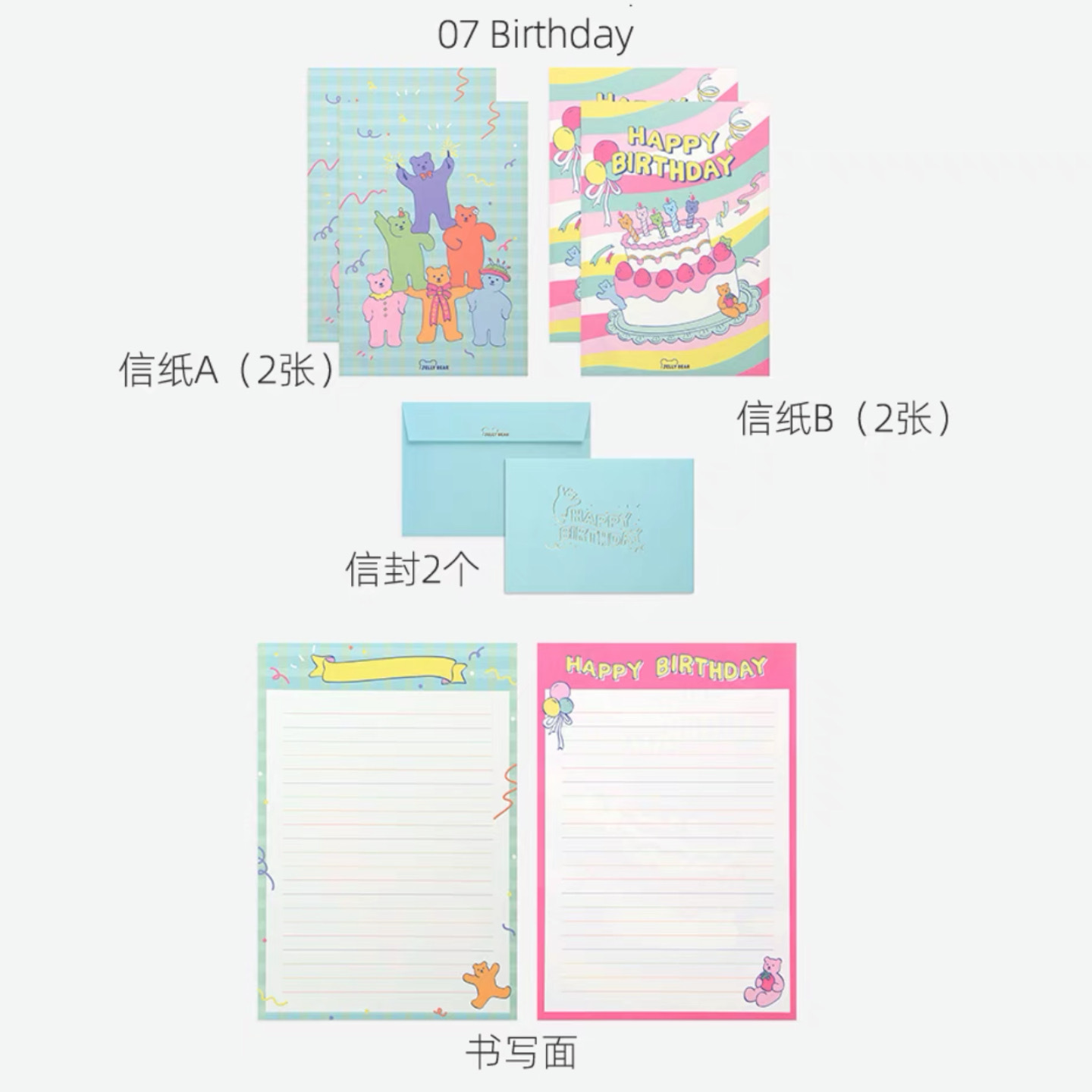 귀여운 한국 바람 편지 종이 봉투 세트 생일 만화 사랑 편지 인사말 카드