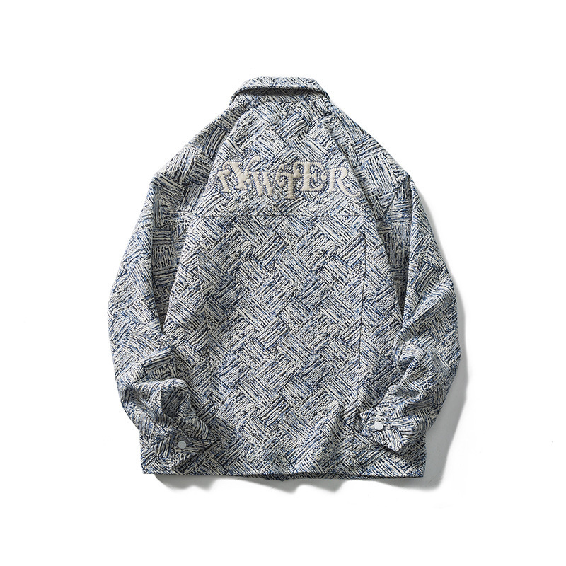 미국 조수 브랜드 가을 국가 조수 하이 스트리트 새로운 헤비 블루 및 화이트 능직 중공업 패딩 자수 재킷 남성용