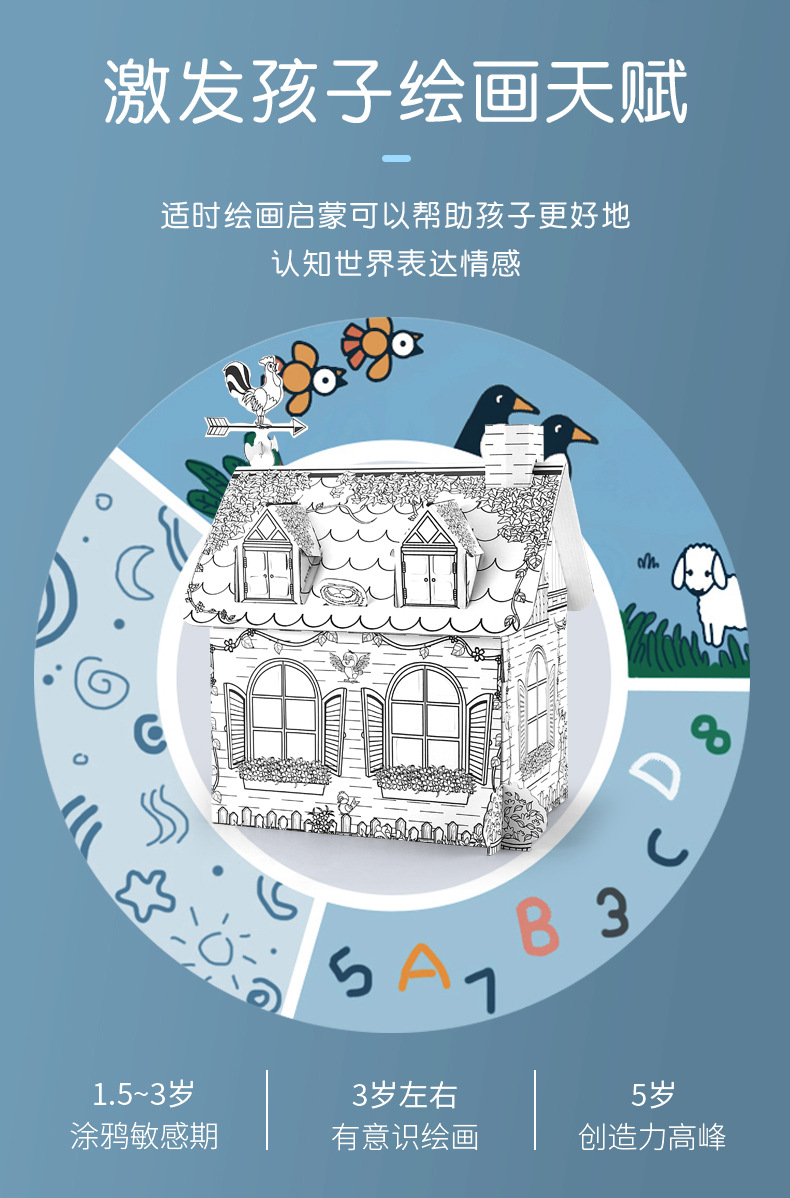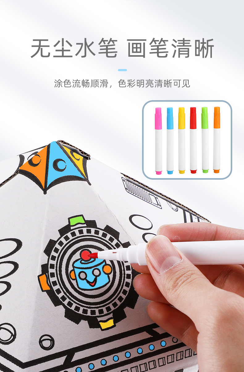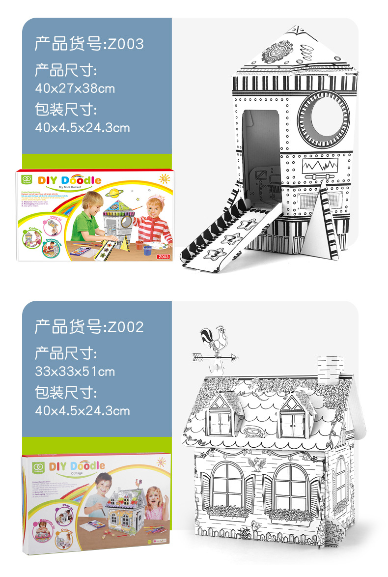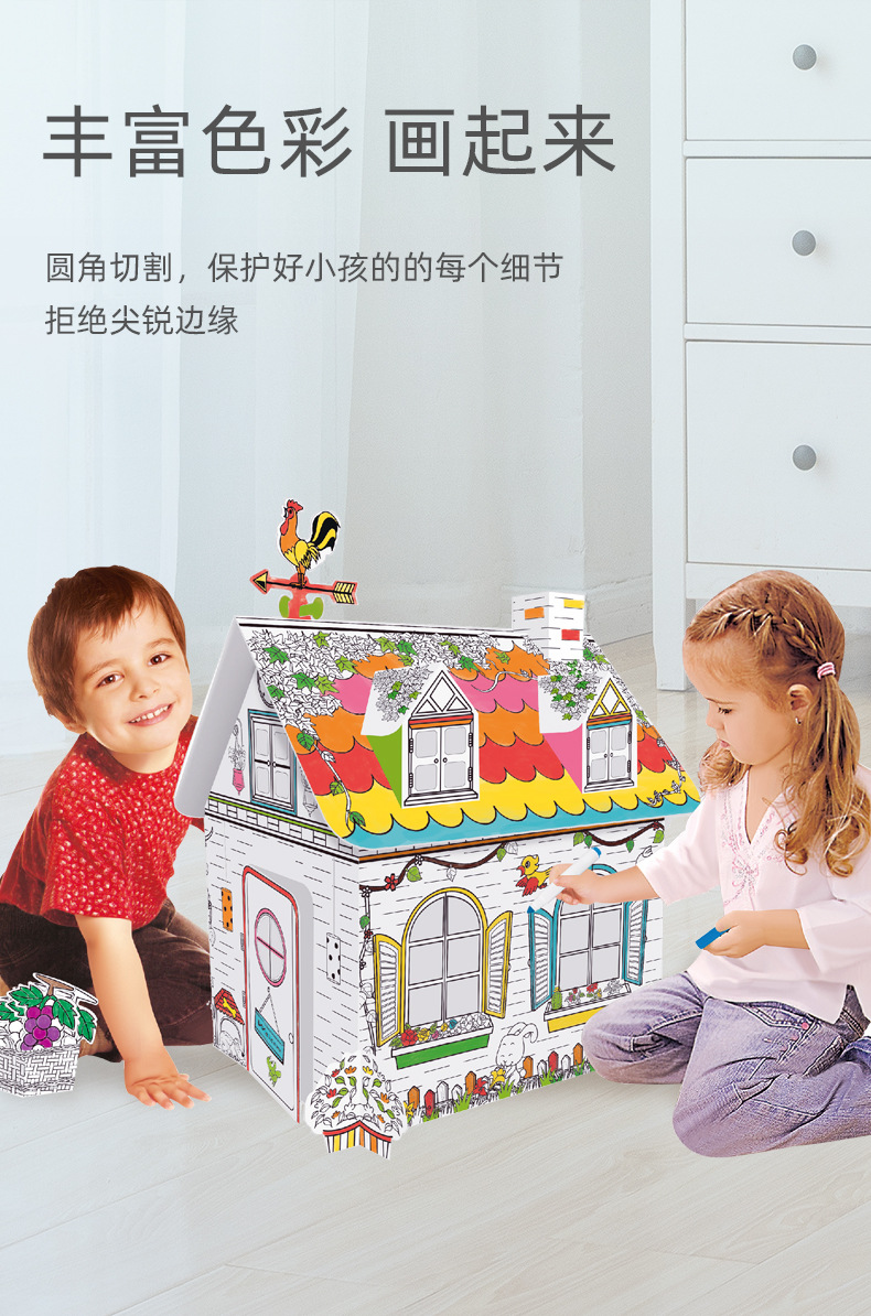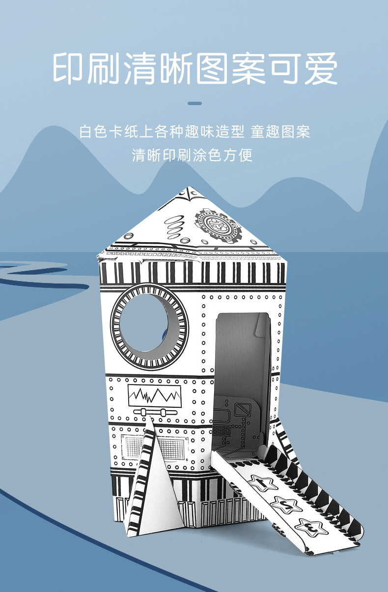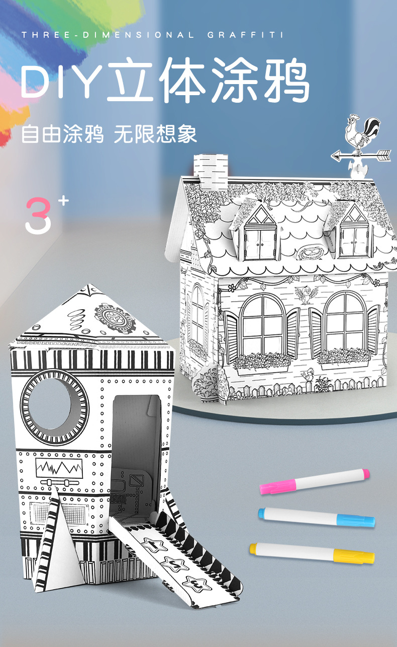 국경 간 맞춤 어린이 창조적 인 수제 낙서 장난감 3 차원 게임 하우스 색칠 종이 집 DIY 그림 로켓