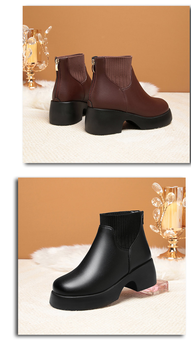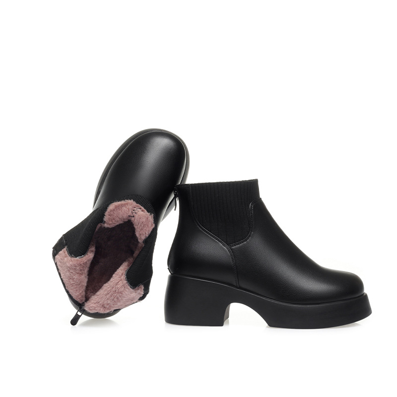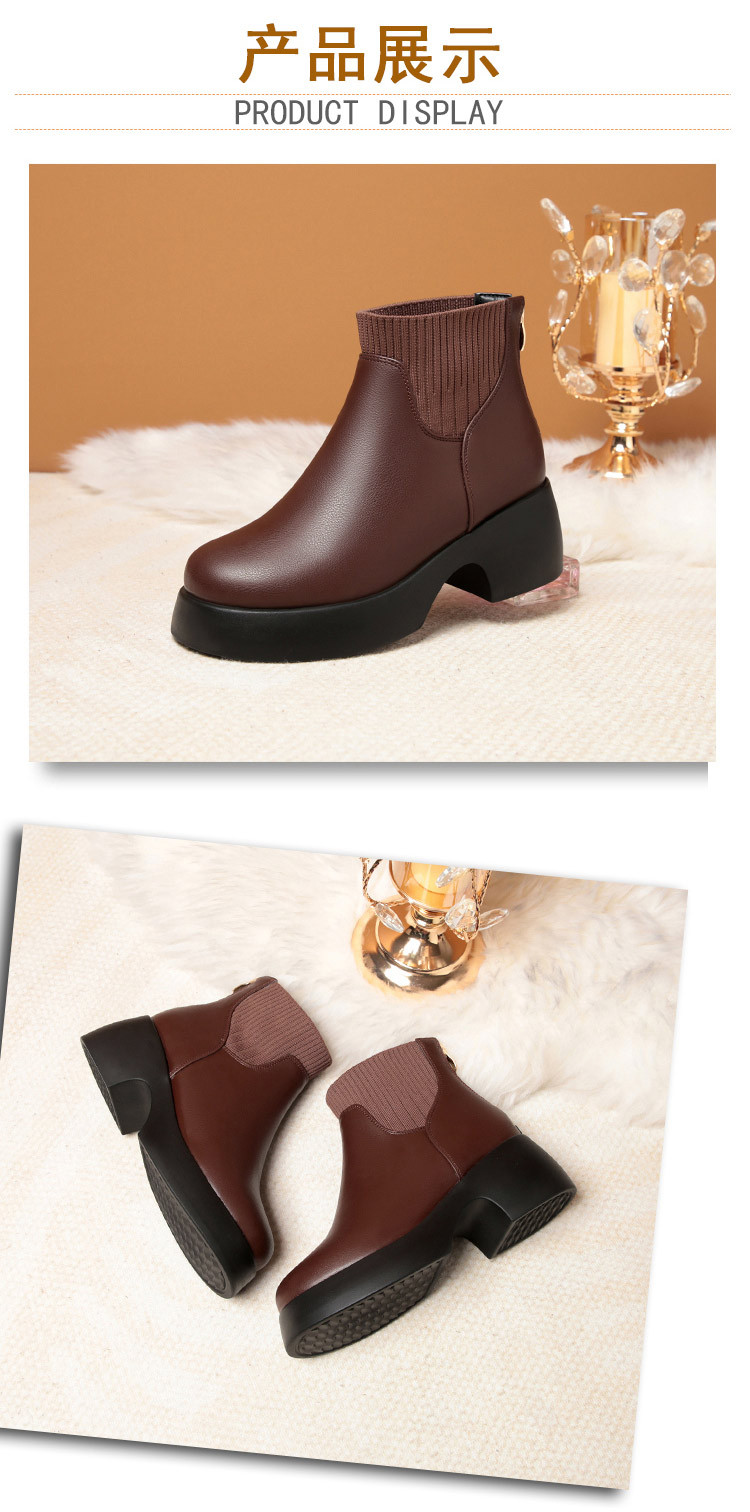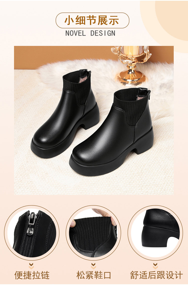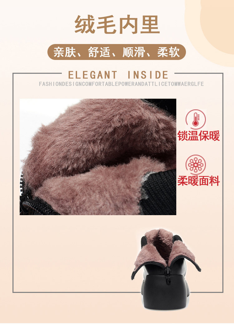 여자의 두꺼운 바닥 짧은 부츠 가을과 겨울 2023 새로운 패션 부츠 후면 지퍼 기모 여성 부츠 모든 일치 플랫폼 바닥 여성 신발