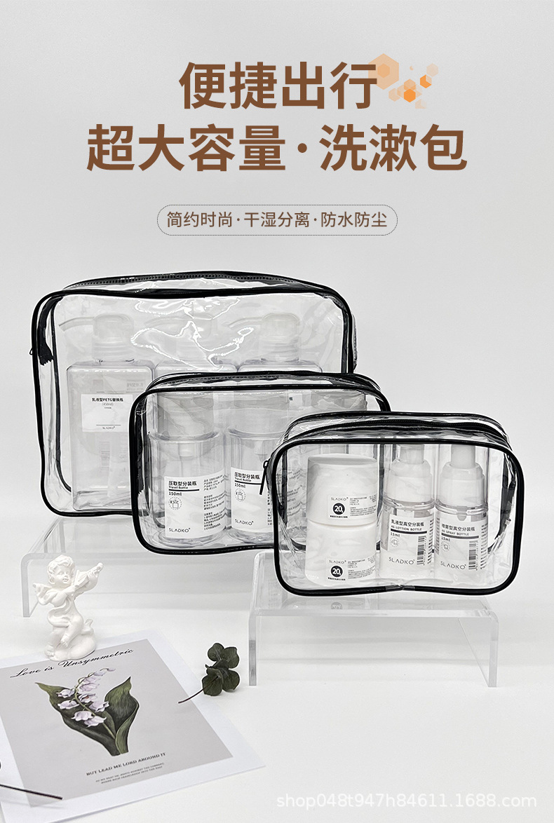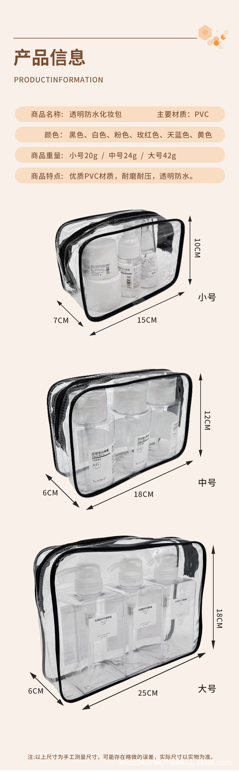 투명 pvc 화장품 가방 하이 컬러 가치 대용량 휴대용 여행 서브 백 인쇄 로고 다기능 보관 가방