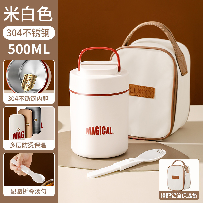 • [브렉퍼스트 컵] + PP 접이식 스푼 + 보온 가방 흰색과 빨간색