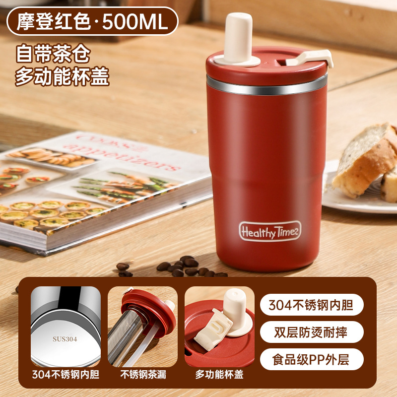 • [커피머그] + 접이식 스푼 + 스테인리스 차 배수구 모던 레드