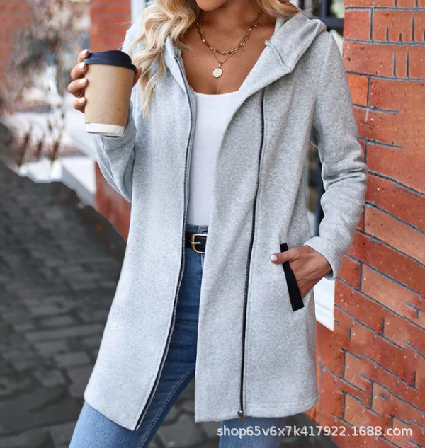 2023 아마존 AliExpress 유럽과 미국의 대외 무역 비스듬한 지퍼 기모 가을과 겨울 코트 후드 스웨터 캐주얼 코트스토어 가기