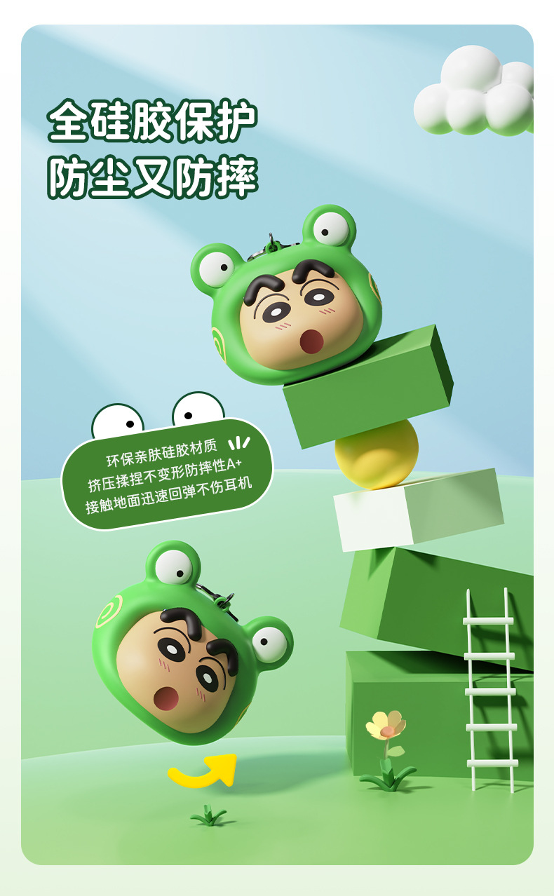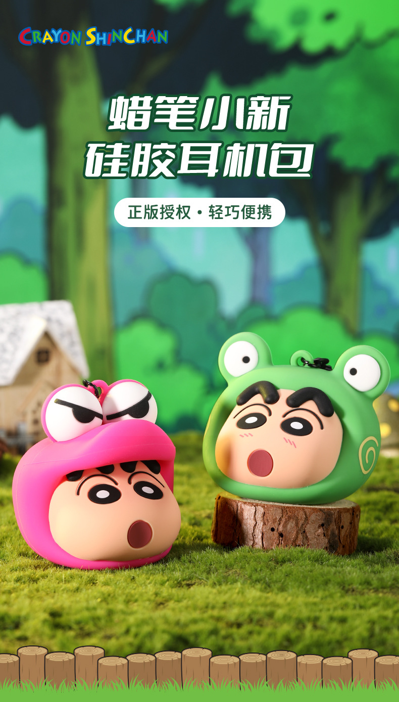 정품 공인 크레용신짱 실리콘 이어폰 가방, 이어폰 케이스, 범용 수납 가방, 오프라인 트렌디 장난감 체인점과 동일한 스타일