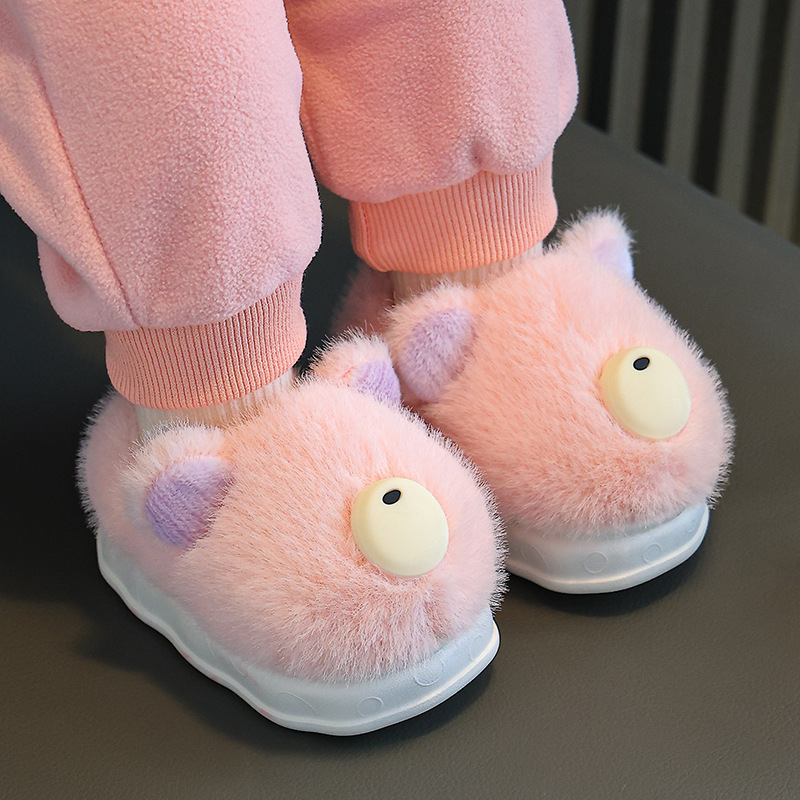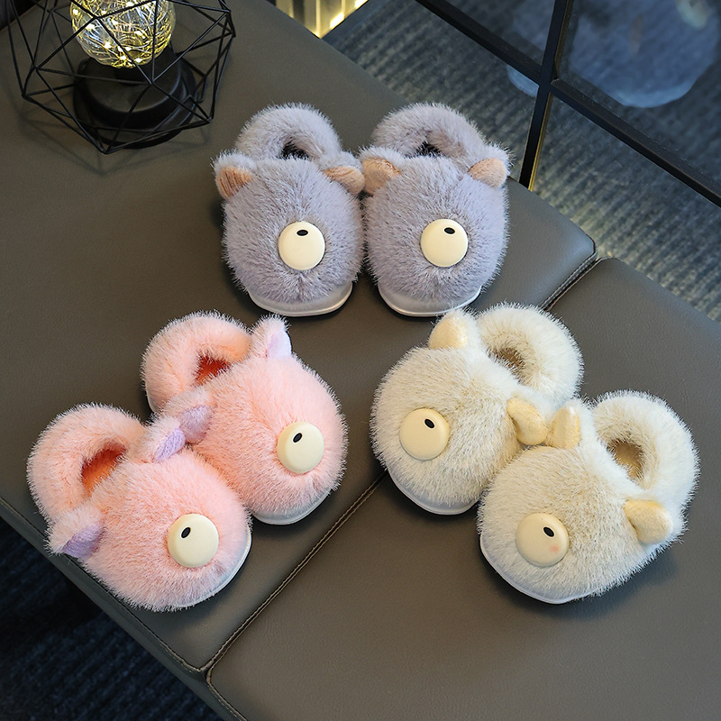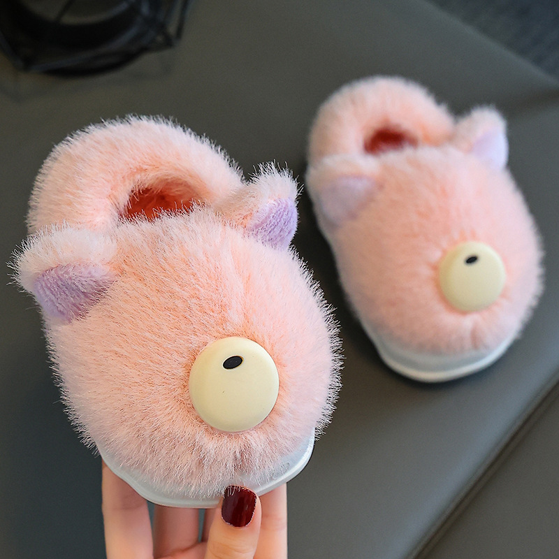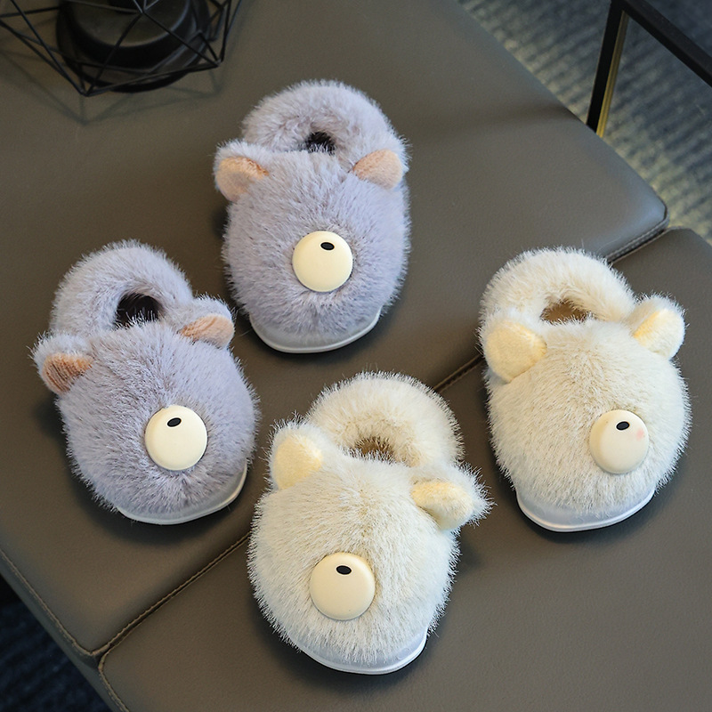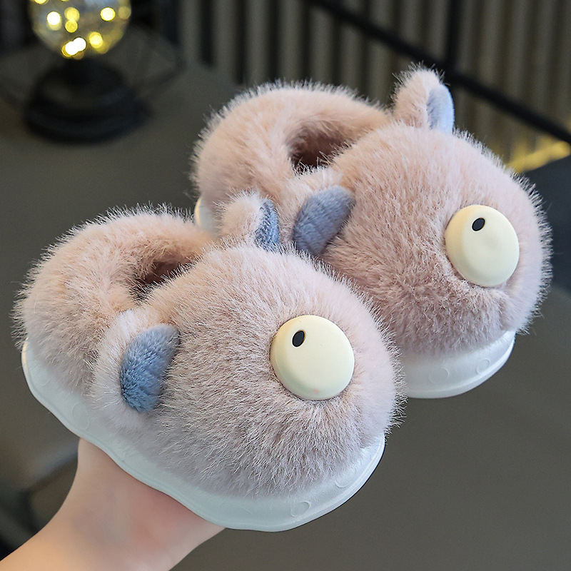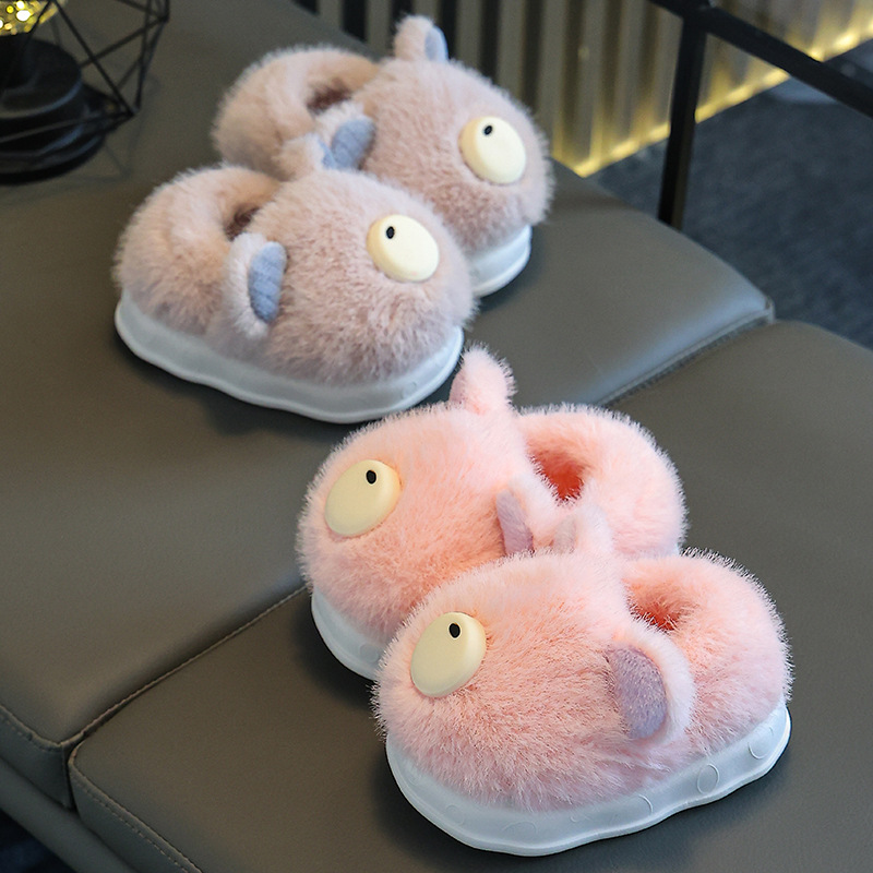 어린이 면화 슬리퍼 귀여운 만화 소년과 소녀 실내 따뜻한 가정 어린이 미끄럼 방지 아기 가방 면화 겨울스토어 가기