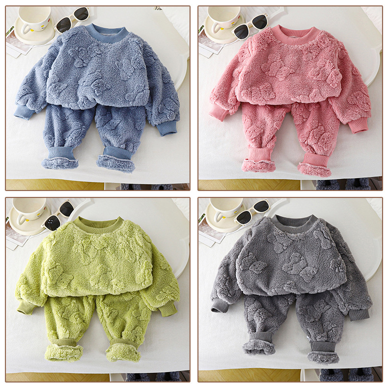 어린이 잠옷 세트 겨울 새 아기 기모 두꺼운 소년 집 옷 소녀 따뜻한 옷 어린이 의류