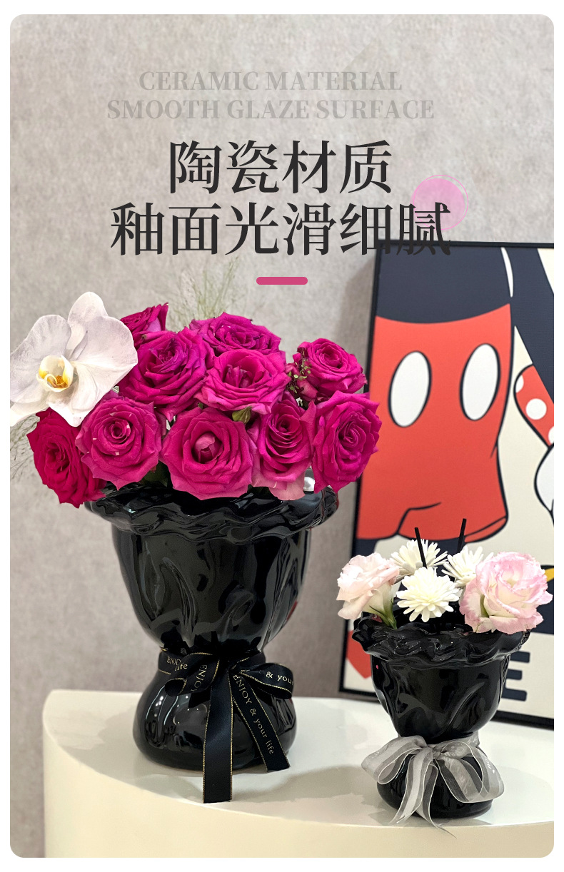 창조적 인 홀딩 꽃다발 모양의 세라믹 꽃병 가정 식탁 거실 꽃꽂이 장식 장식품 고급 꽃 감각