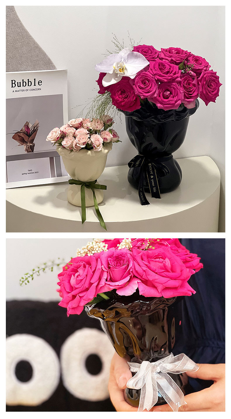 창조적 인 홀딩 꽃다발 모양의 세라믹 꽃병 가정 식탁 거실 꽃꽂이 장식 장식품 고급 꽃 감각스토어 가기