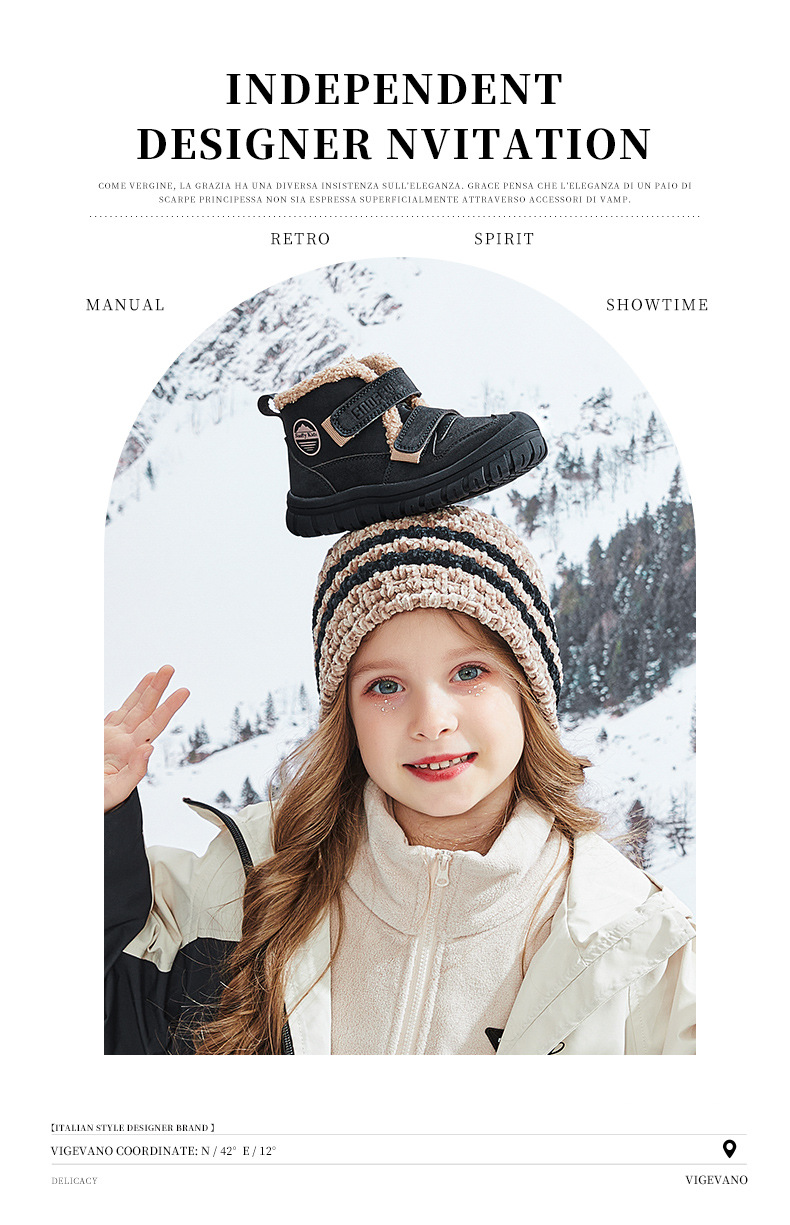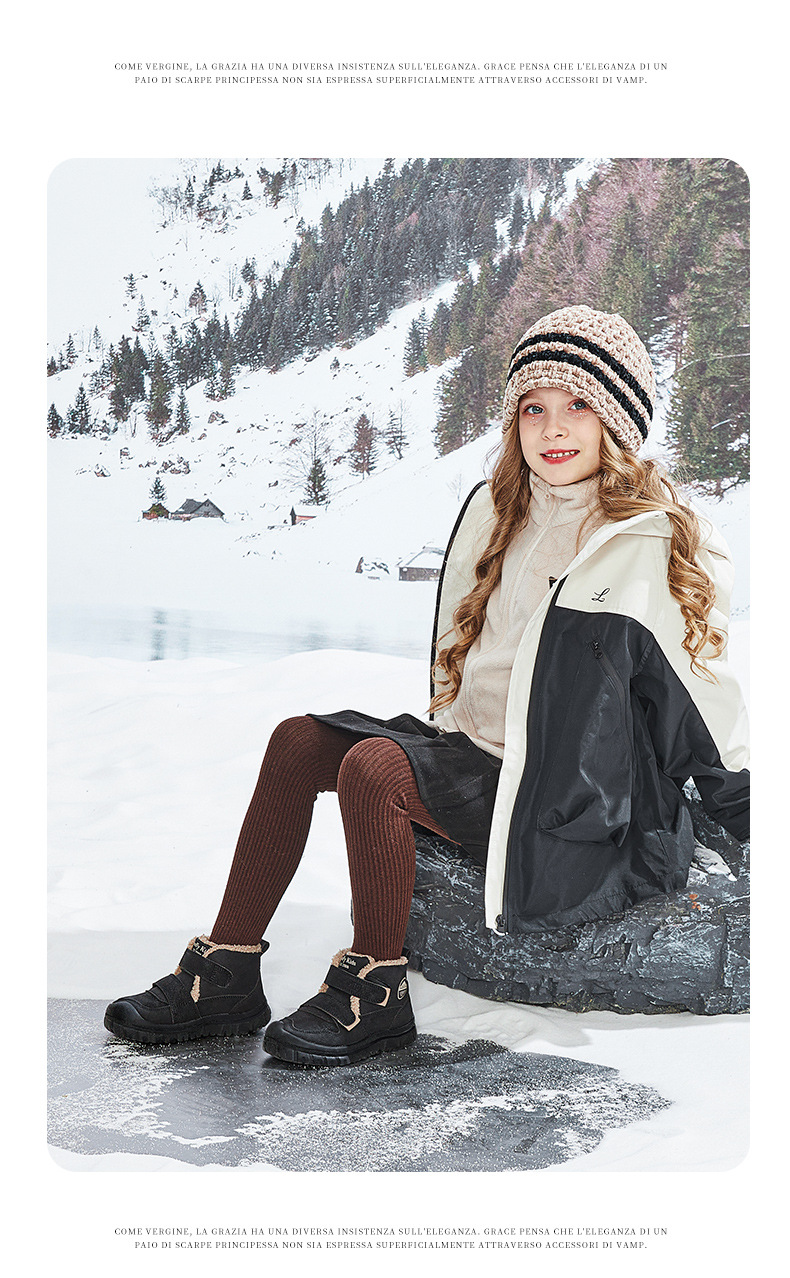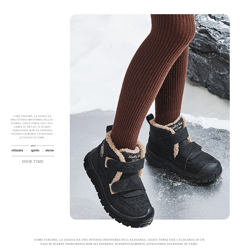 스나피 여아 운동화 2023 겨울 신상 아동용 하이탑 플러스 벨벳 면화 신발 부드러운 밑창 캐주얼 신발