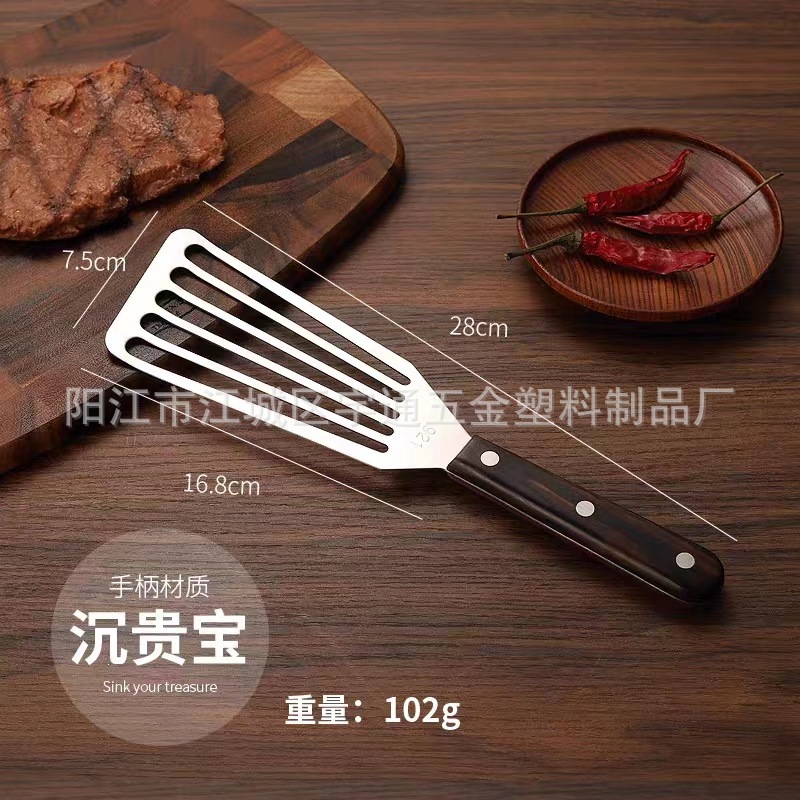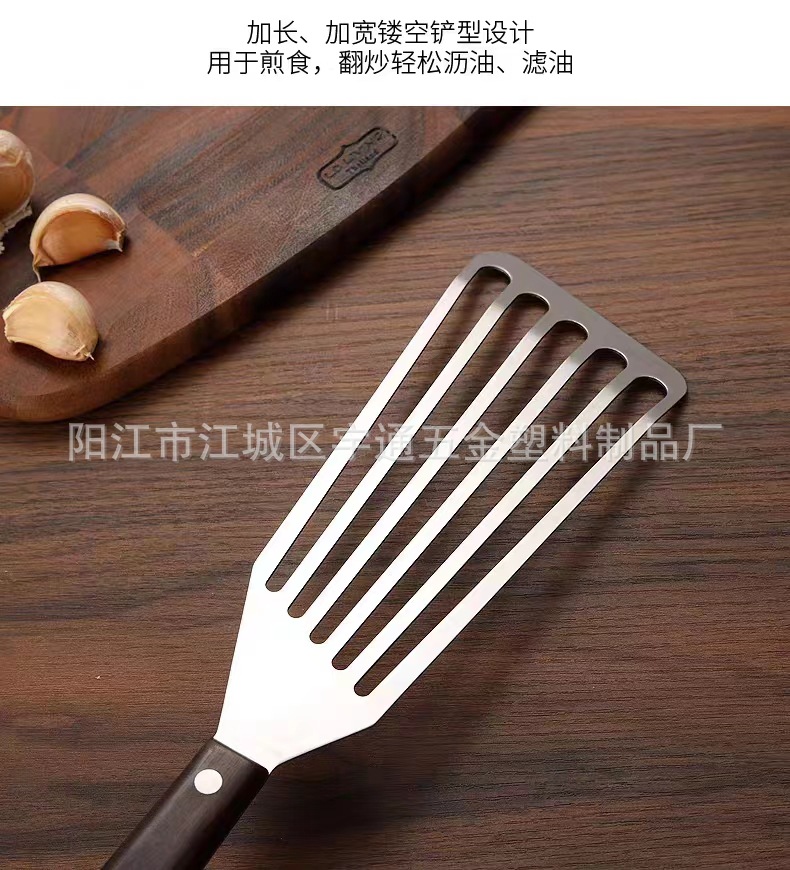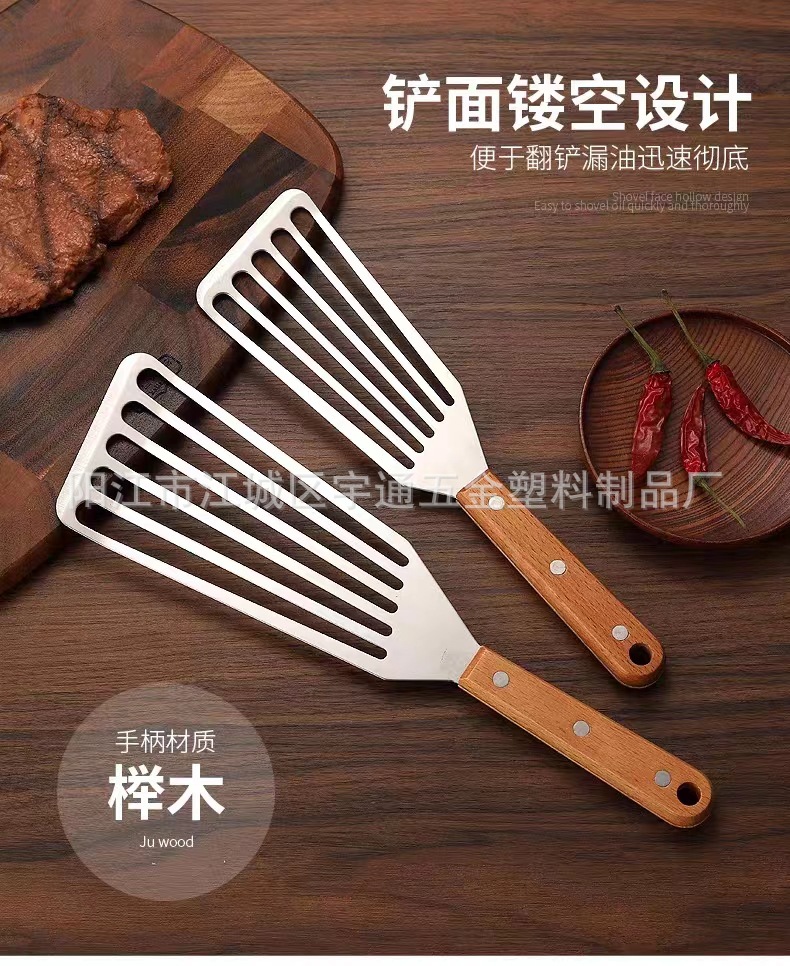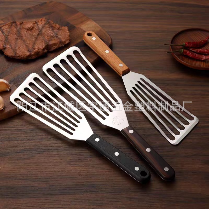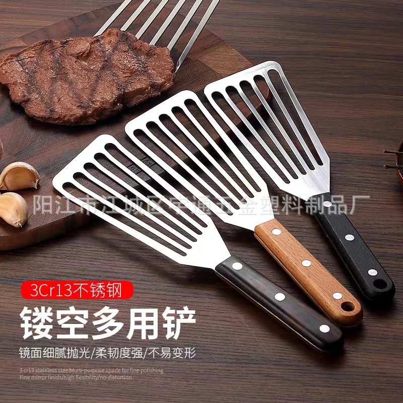 스테인레스 스틸 튀긴 생선 삽 스테이크 냄비 삽 가정용 튀김 흘린 삽 나무 손잡이 플라스틱 요리 삽 요리 삽 주방 도구스토어 가기