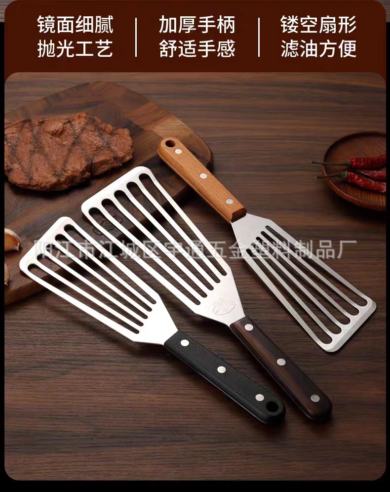 스테인레스 스틸 튀긴 생선 삽 스테이크 냄비 삽 가정용 튀김 흘린 삽 나무 손잡이 플라스틱 요리 삽 요리 삽 주방 도구