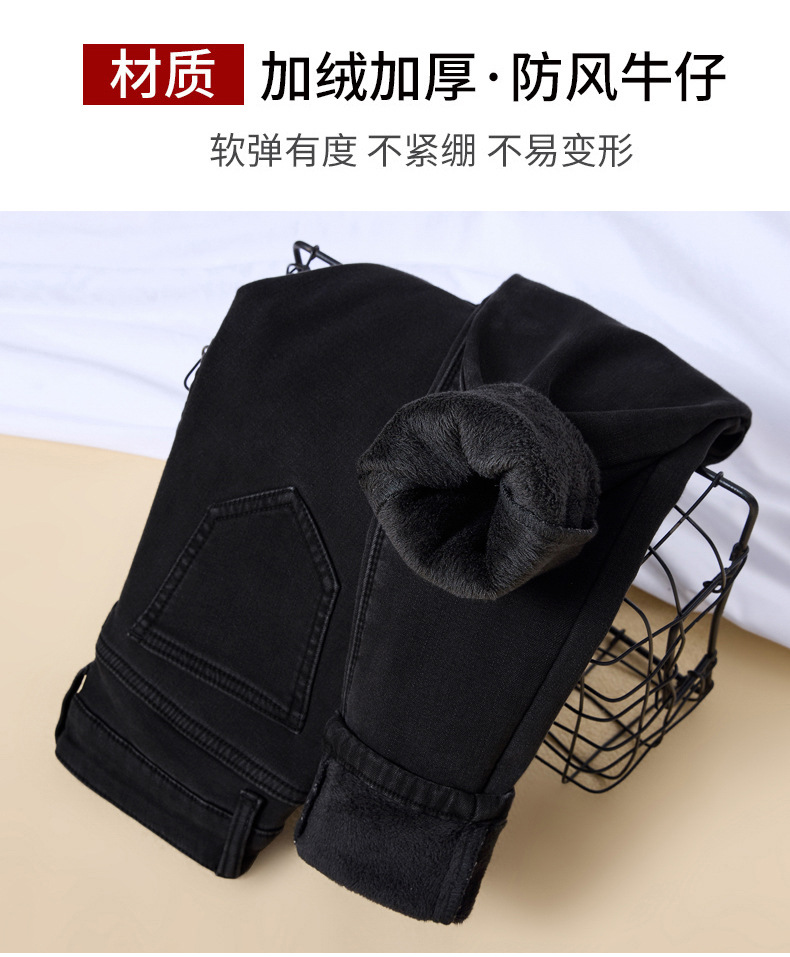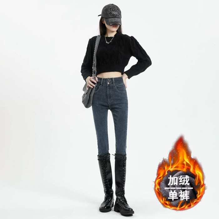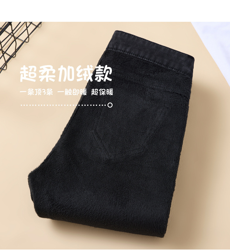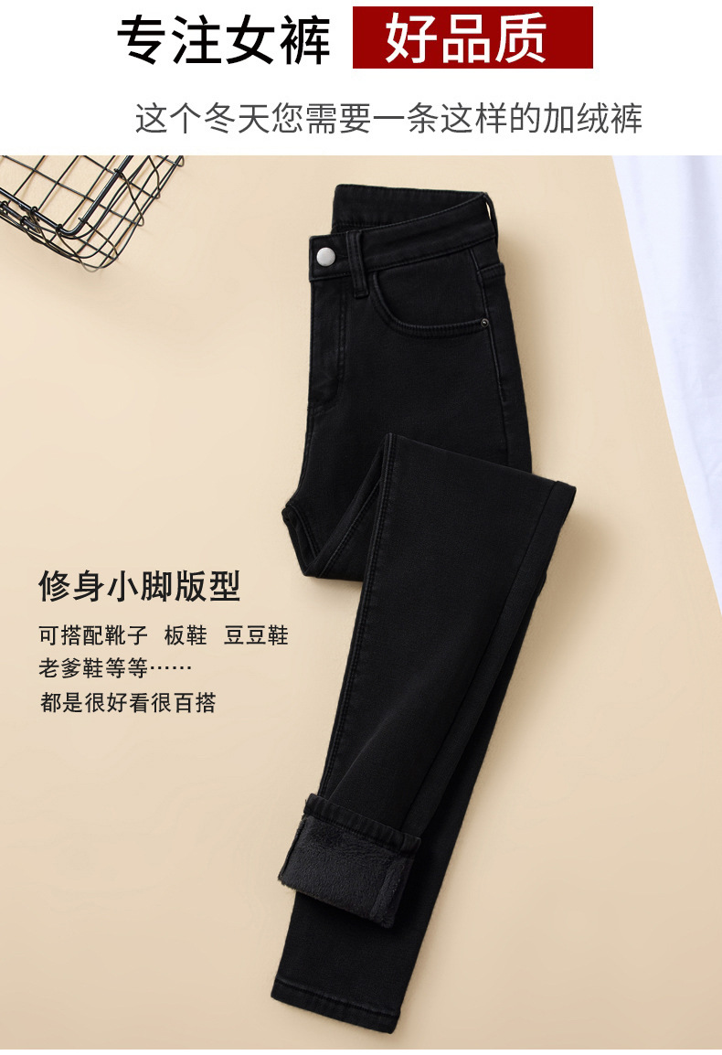 벨벳 데님 팬츠 여성용 신축성 높은 허리 슬림핏 스키니 팬츠 겨울 2026년 신상 두꺼운 보온 타이트 팬츠스토어 가기