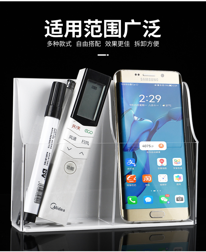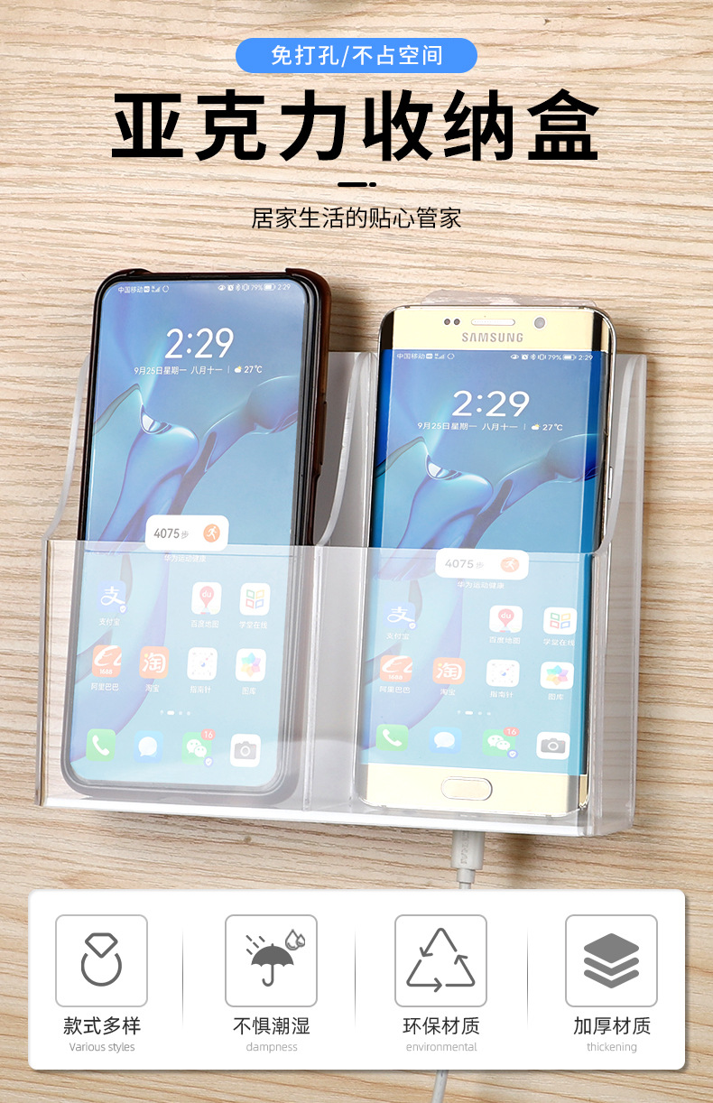 에어컨 TV 리모컨 보관함 아크릴 벽 상자 침대 옆 휴대 전화 충전 벽 상자 벽 랙