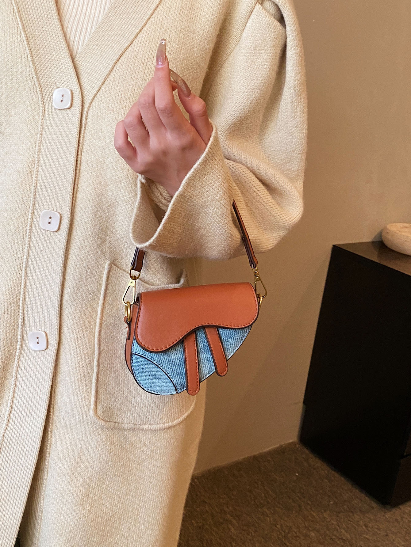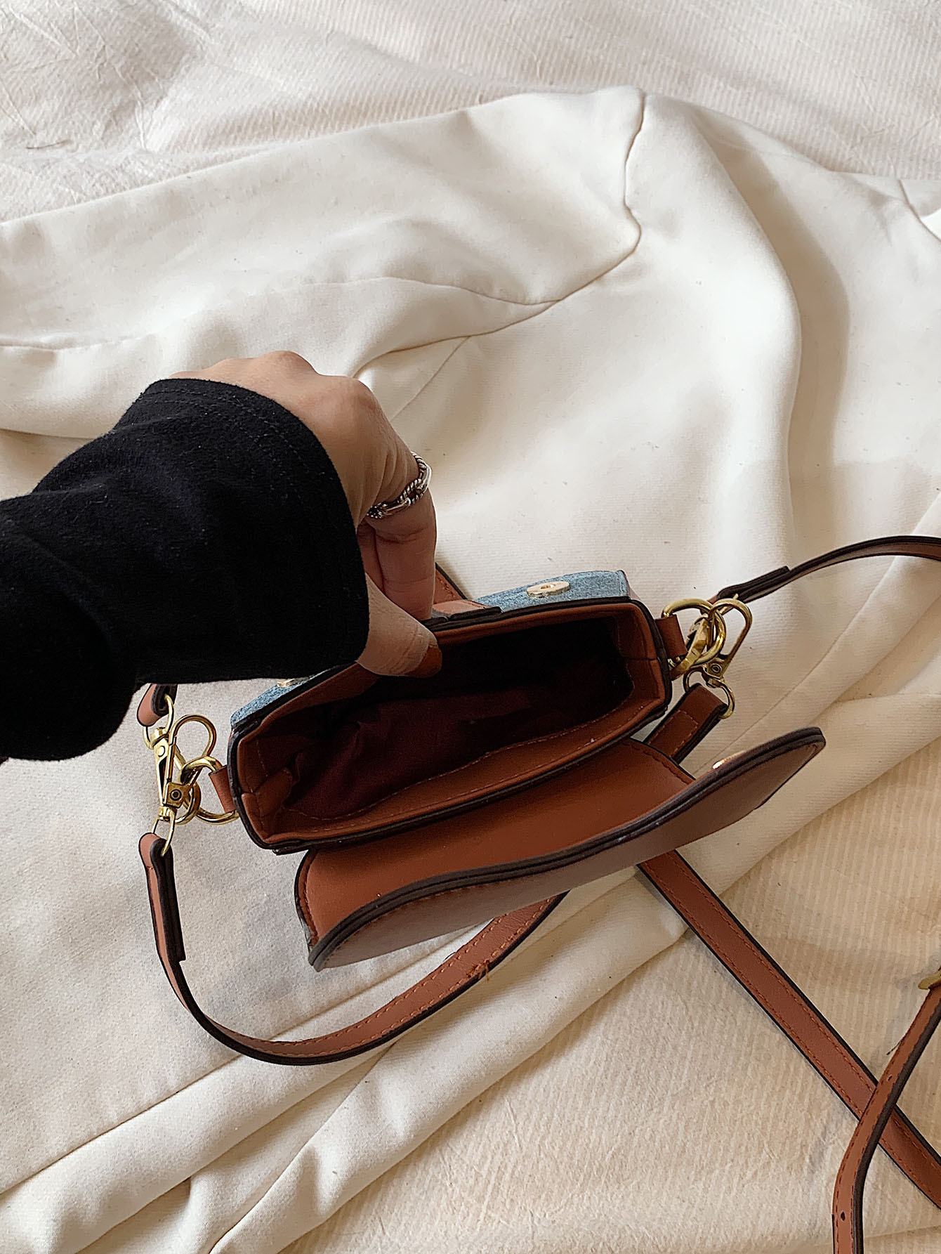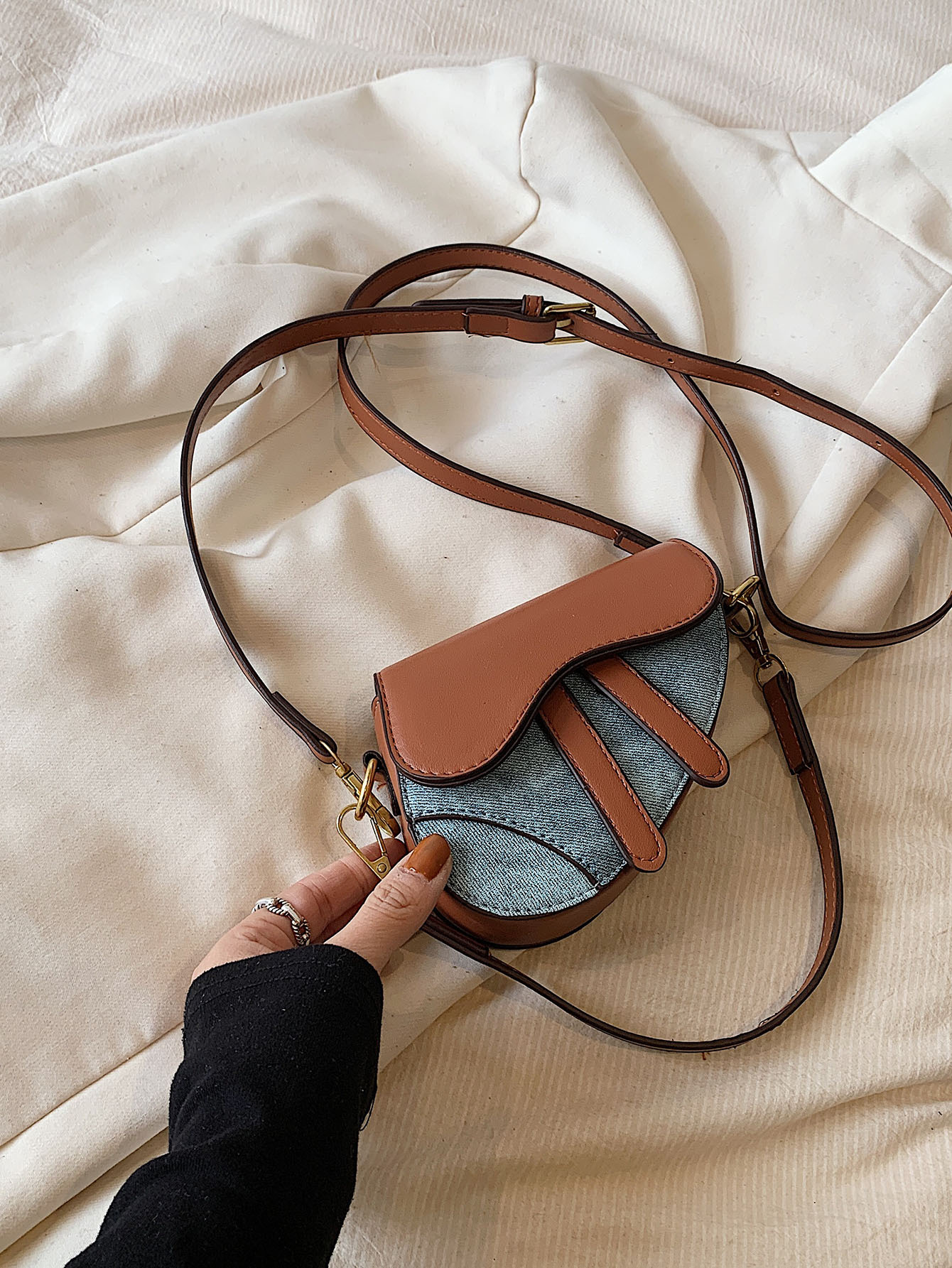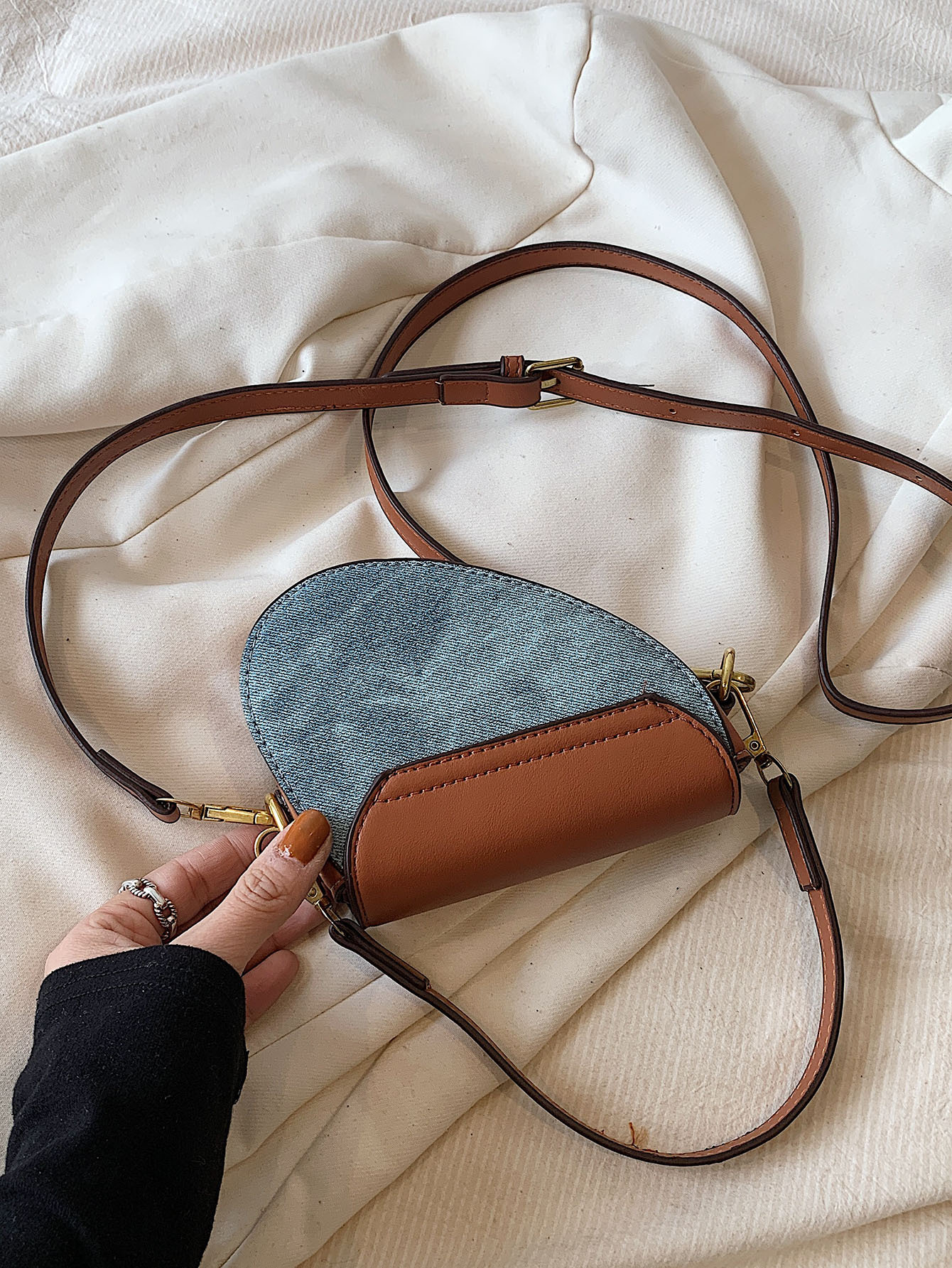 • 데님 함께 다크 브라운