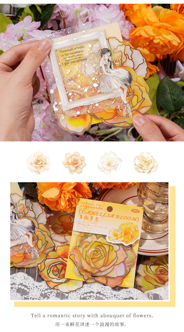 동백 오픈 핸드 계정 pvc 방수 종이 가방 레트로 입체 브론징 꽃 스티커 귀여운 손 계정 Goo 카드 스티커