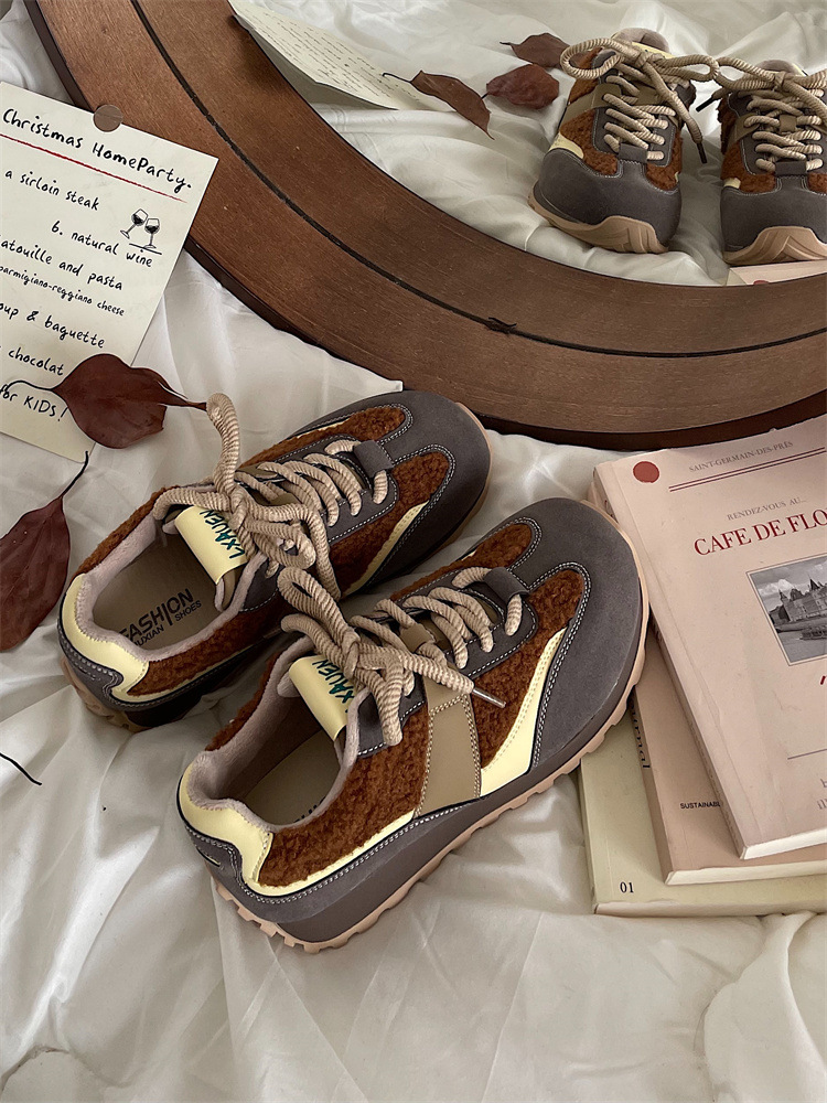 Jin Mi 2023 가을과 겨울 빈티지 기모 모든 매치 편안한 부드러운 밑창 캐주얼 포레스트 검프 슈즈 여성용 메일라드 트레이닝 슈즈 여성