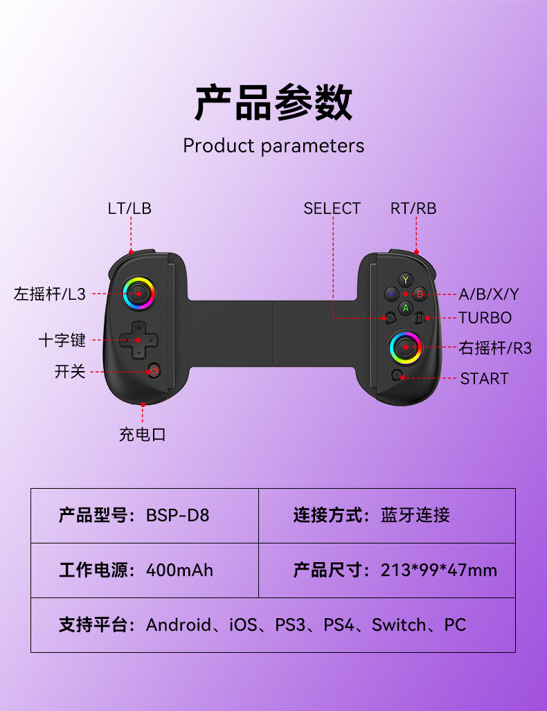 휴대 전화 태블릿 스트레치 블루투스 무선 게임 핸들 스위치 PC 컴퓨터 안드로이드 ISO PS XBOX 호스트