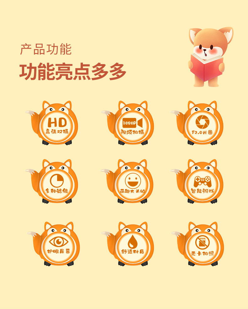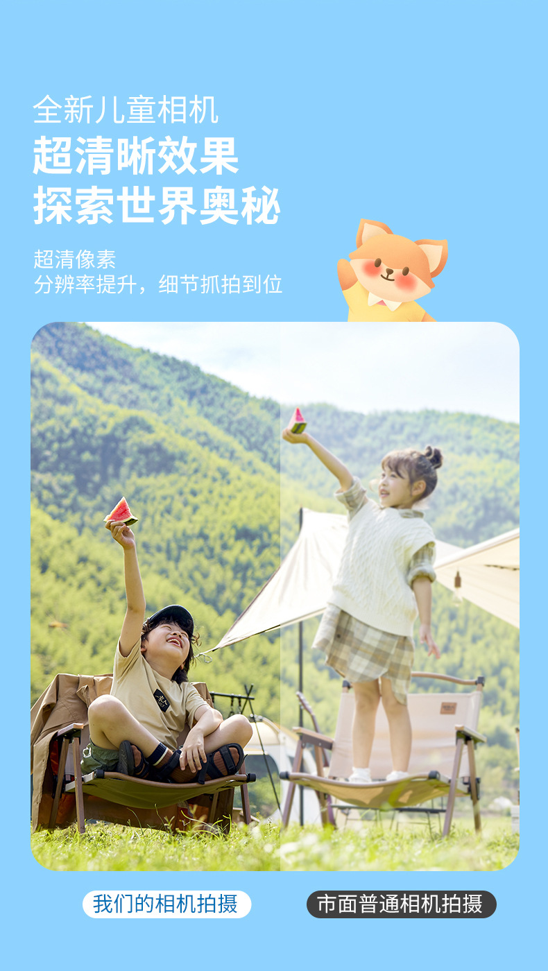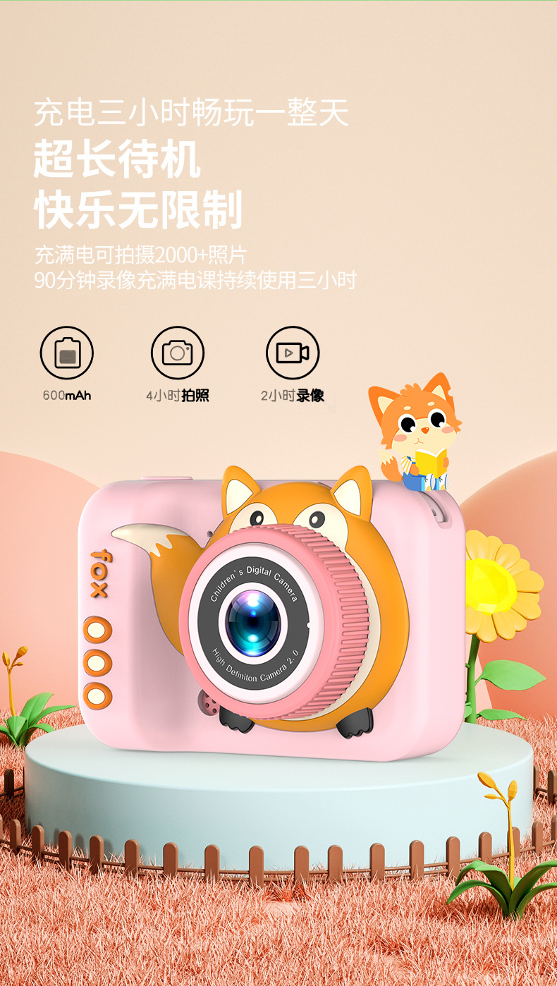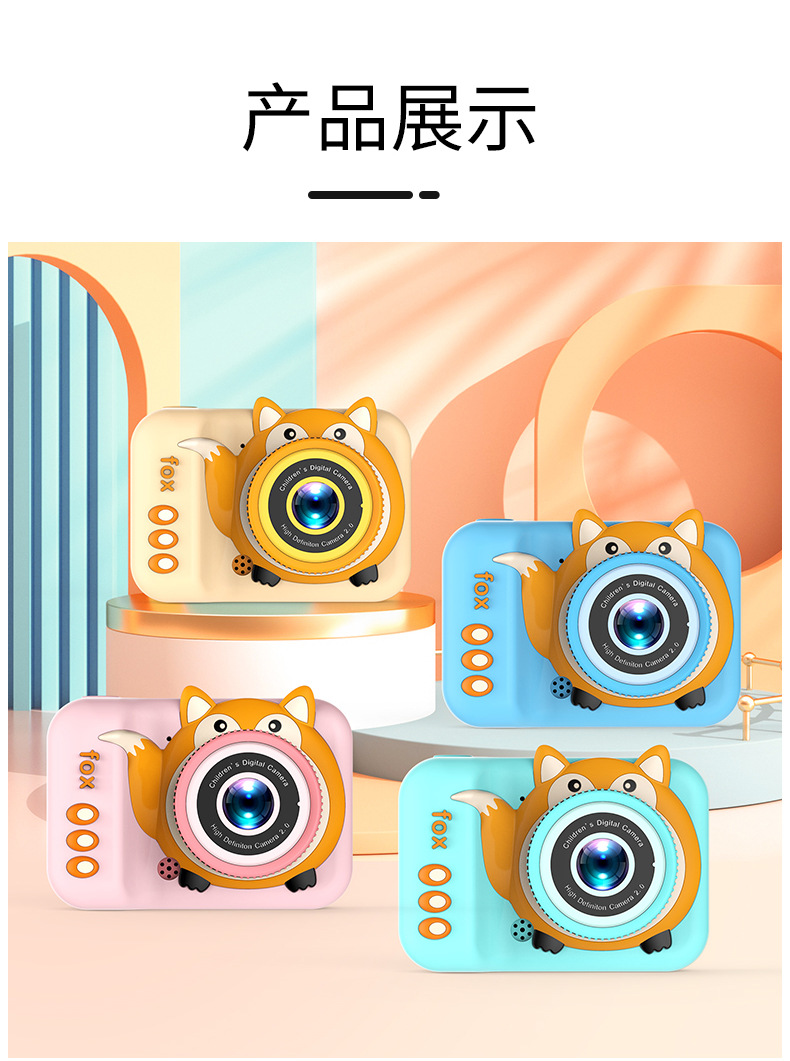 국경을 넘는 어린이용 카메라 고화질 사진 및 비디오 촬영 듀얼 렌즈 디지털 미니 만화 여우 장난감 듀얼 카메라스토어 가기