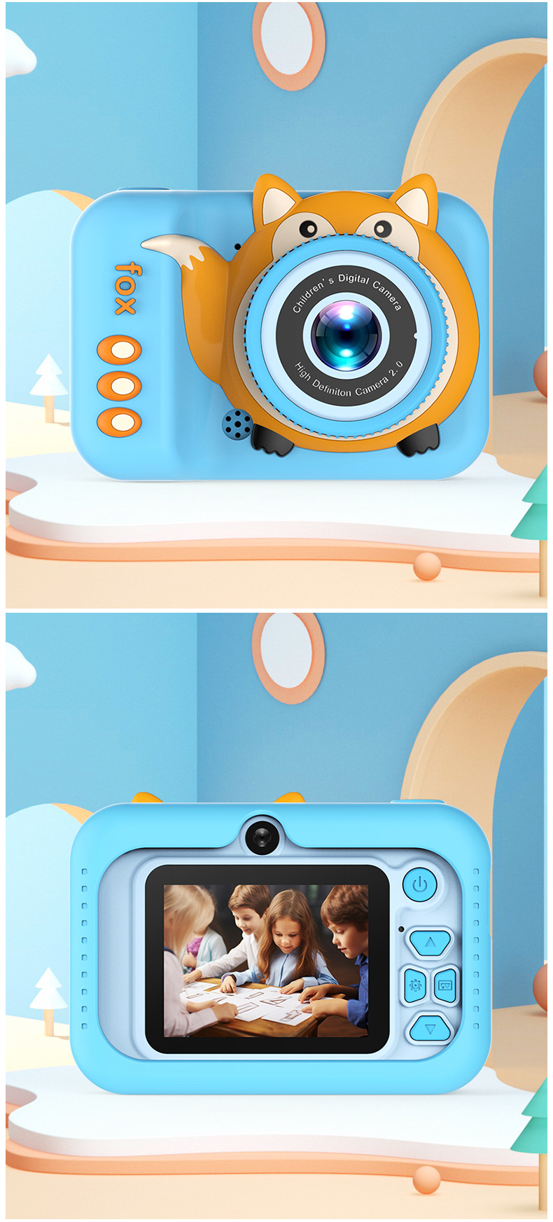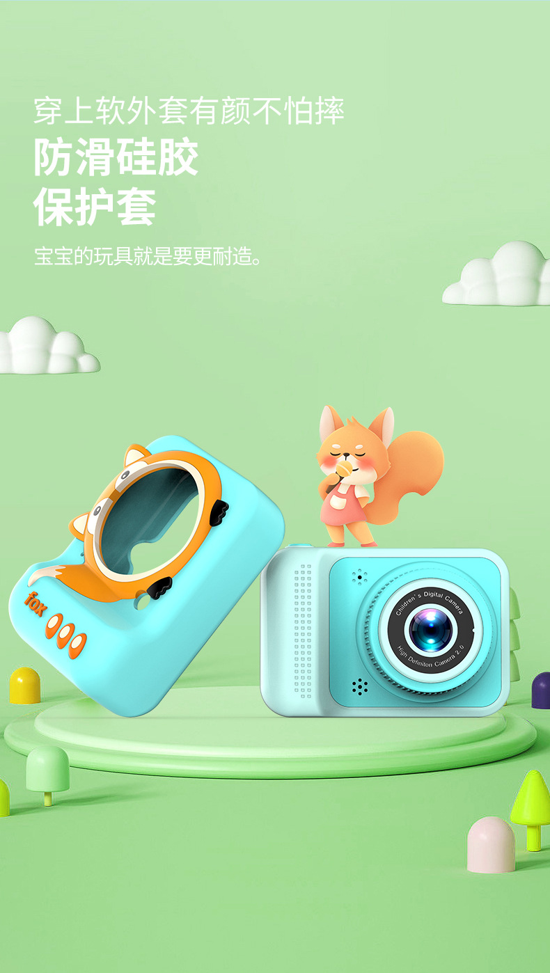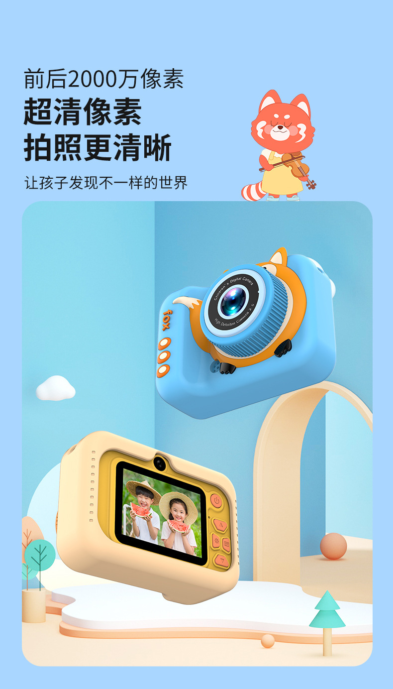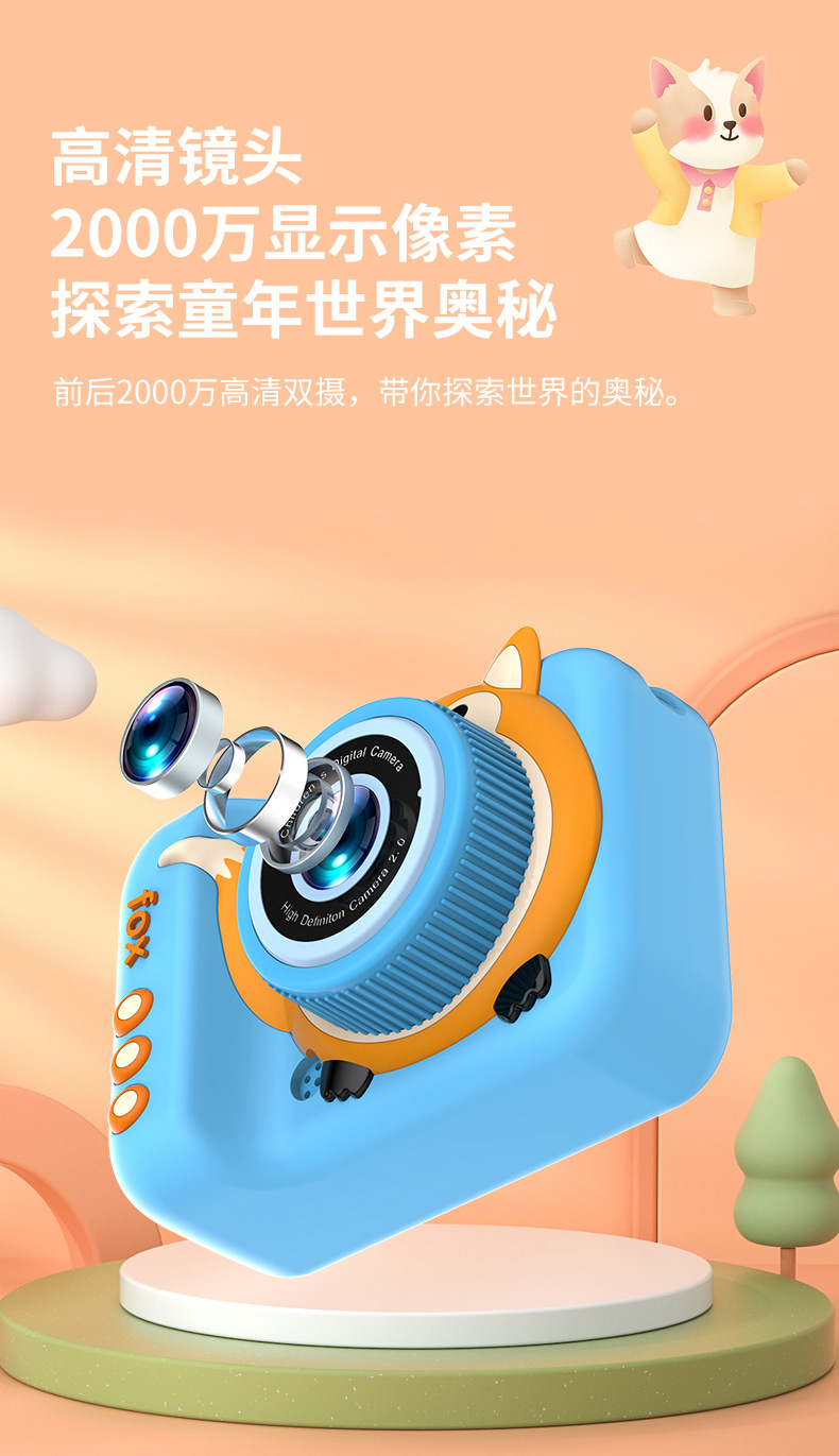 국경을 넘는 어린이용 카메라 고화질 사진 및 비디오 촬영 듀얼 렌즈 디지털 미니 만화 여우 장난감 듀얼 카메라