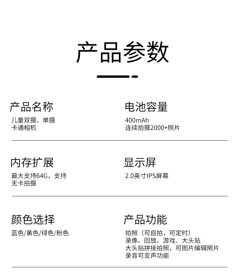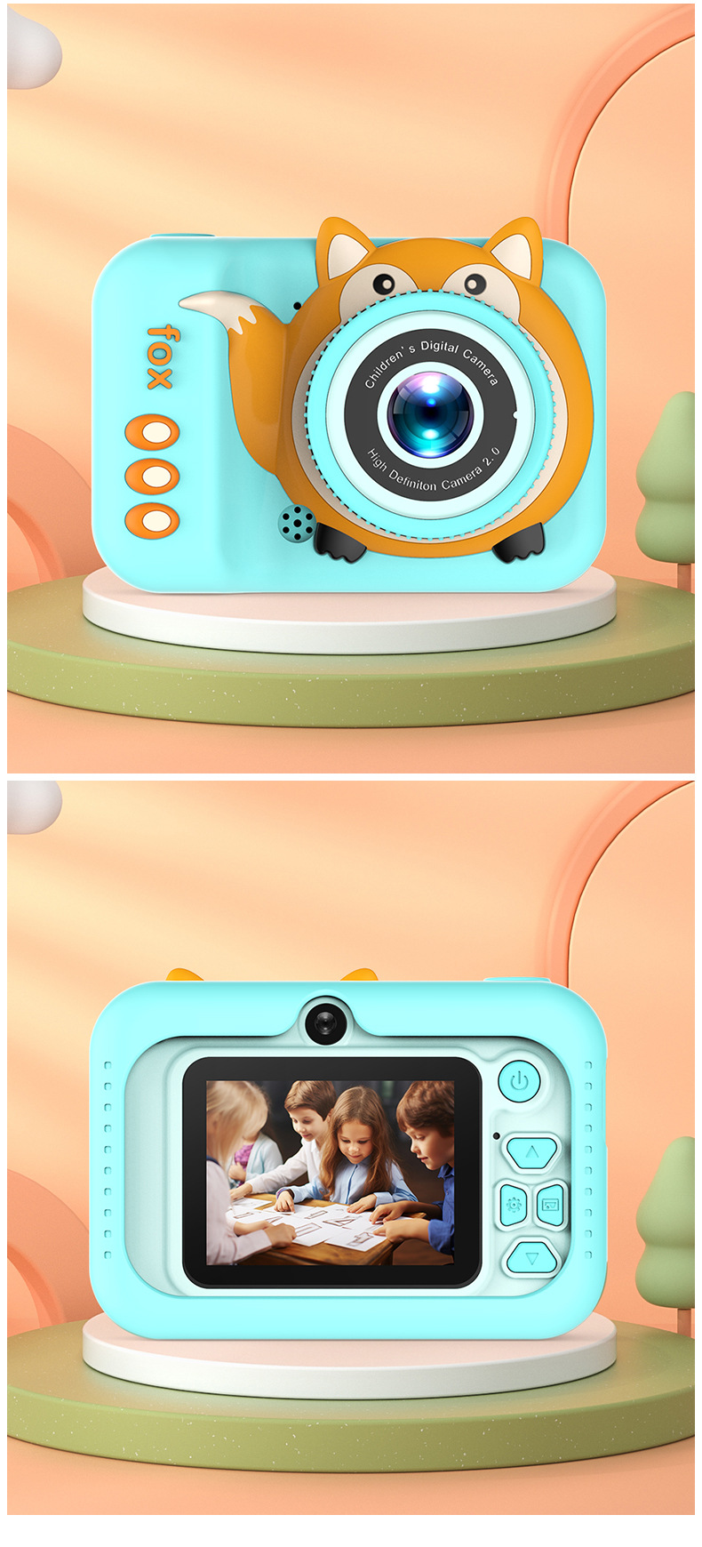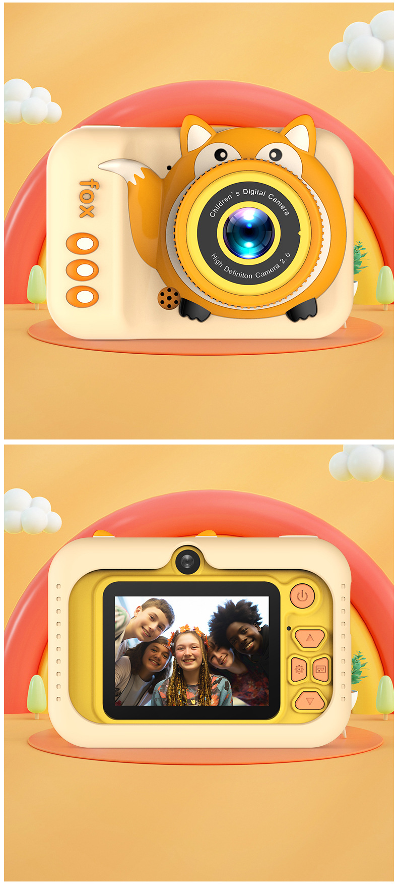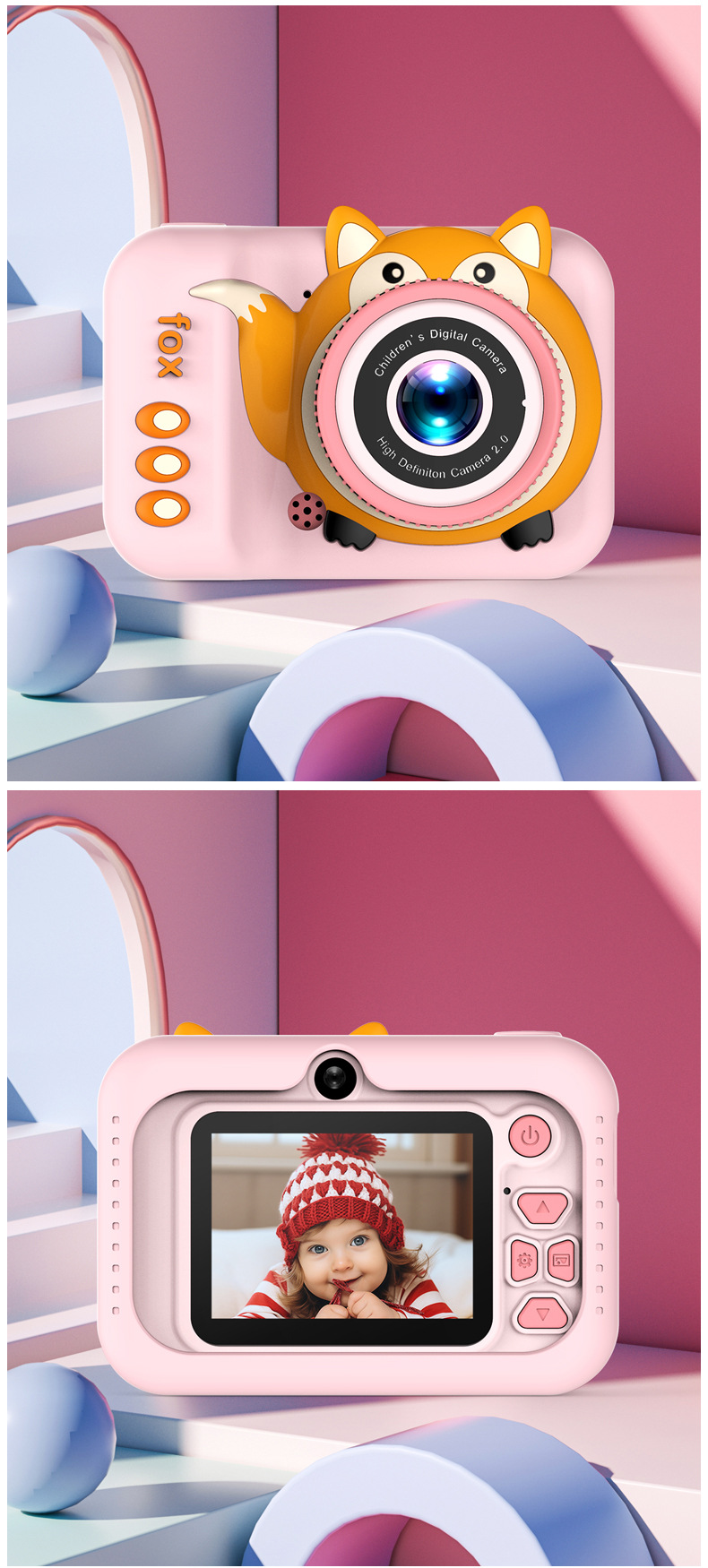 국경을 넘는 어린이용 카메라 고화질 사진 및 비디오 촬영 듀얼 렌즈 디지털 미니 만화 여우 장난감 듀얼 카메라