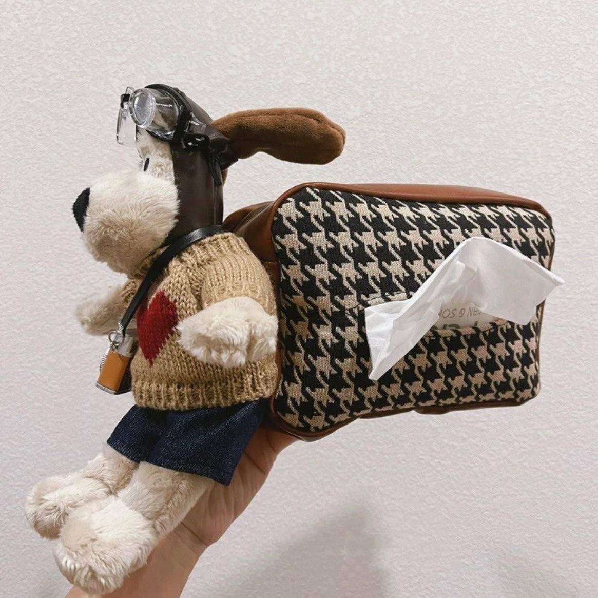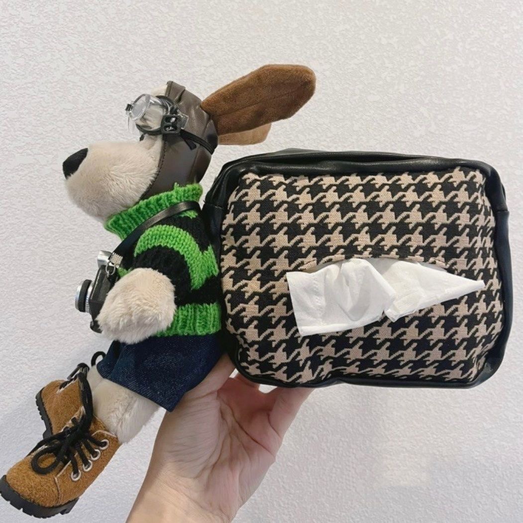 자동차 티슈 박스 고급 교수형 플라잉 개 만화 자동차 인테리어 장식 용품 Houndstooth 자동차 시트 추출 상자